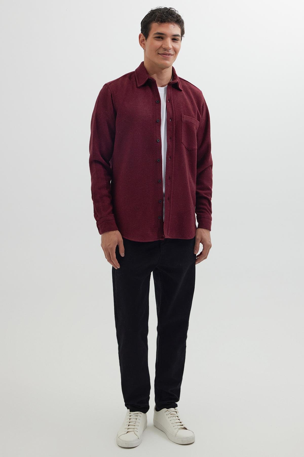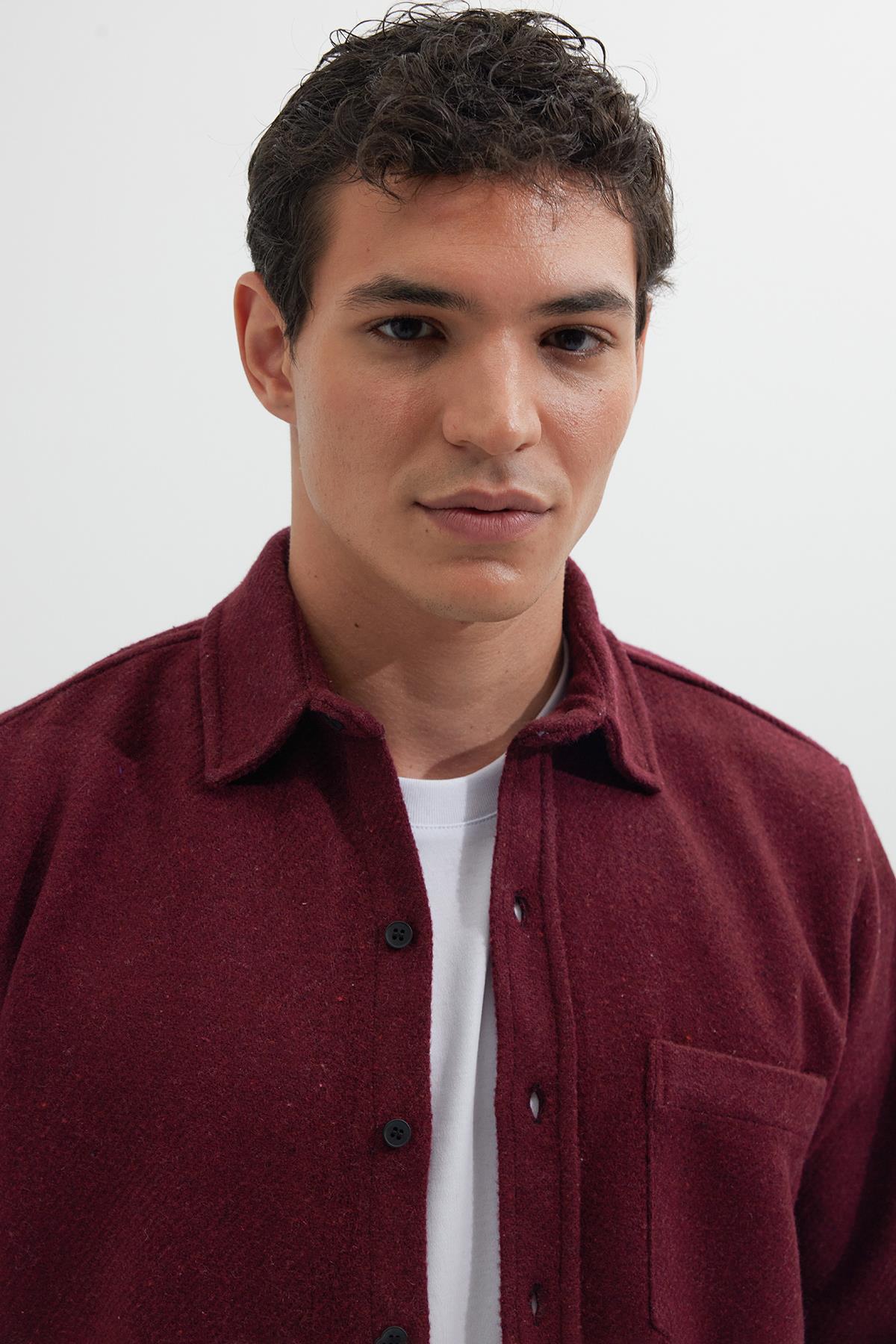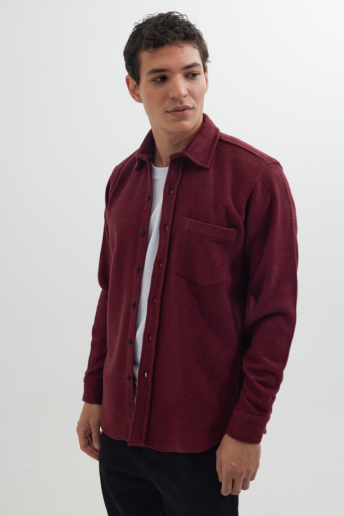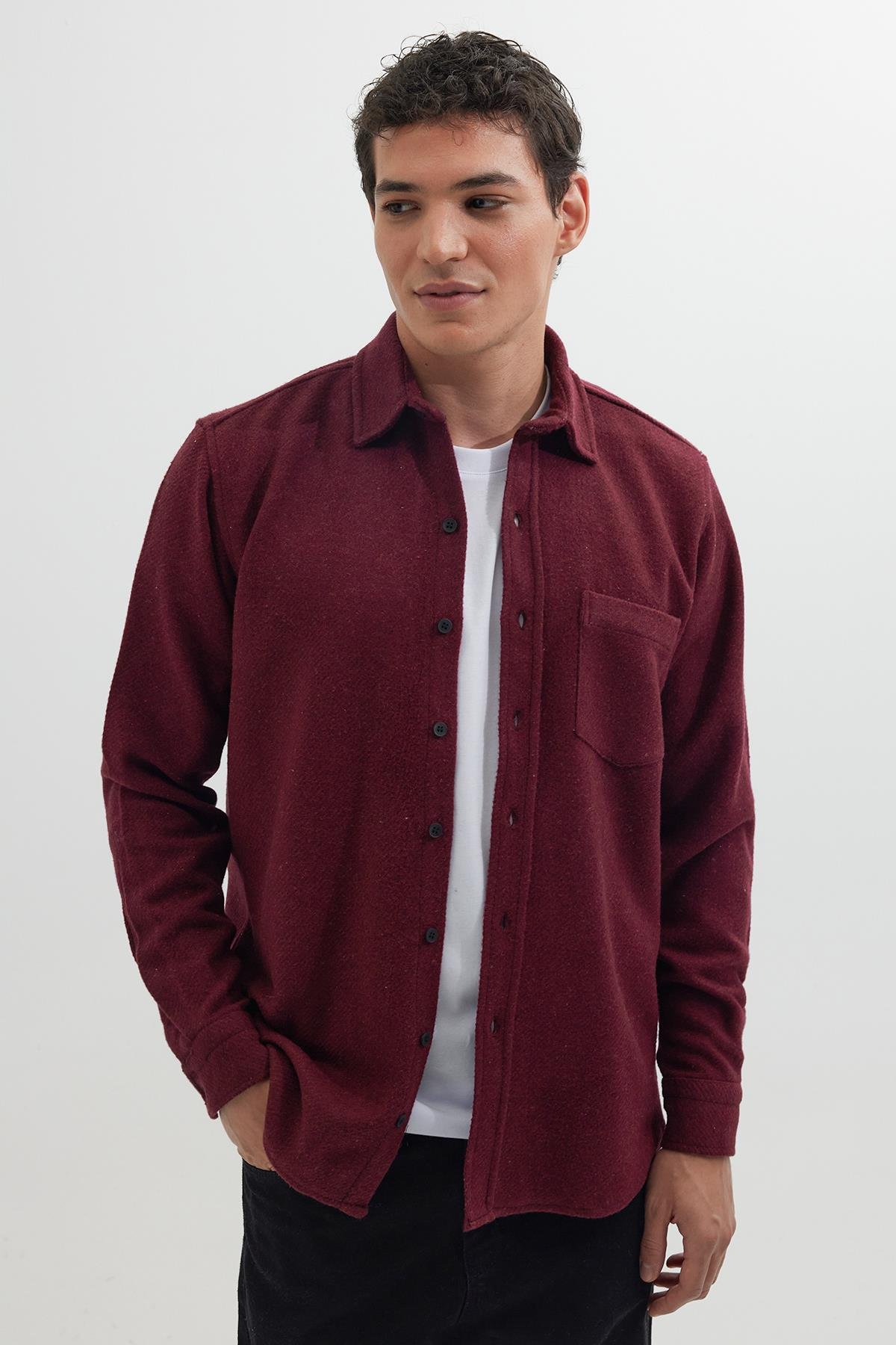 Erkek Regular Fit Klasik Kesim Düz Cepli Koyu Bordo Oduncu Gömlek (KL250019-1020)