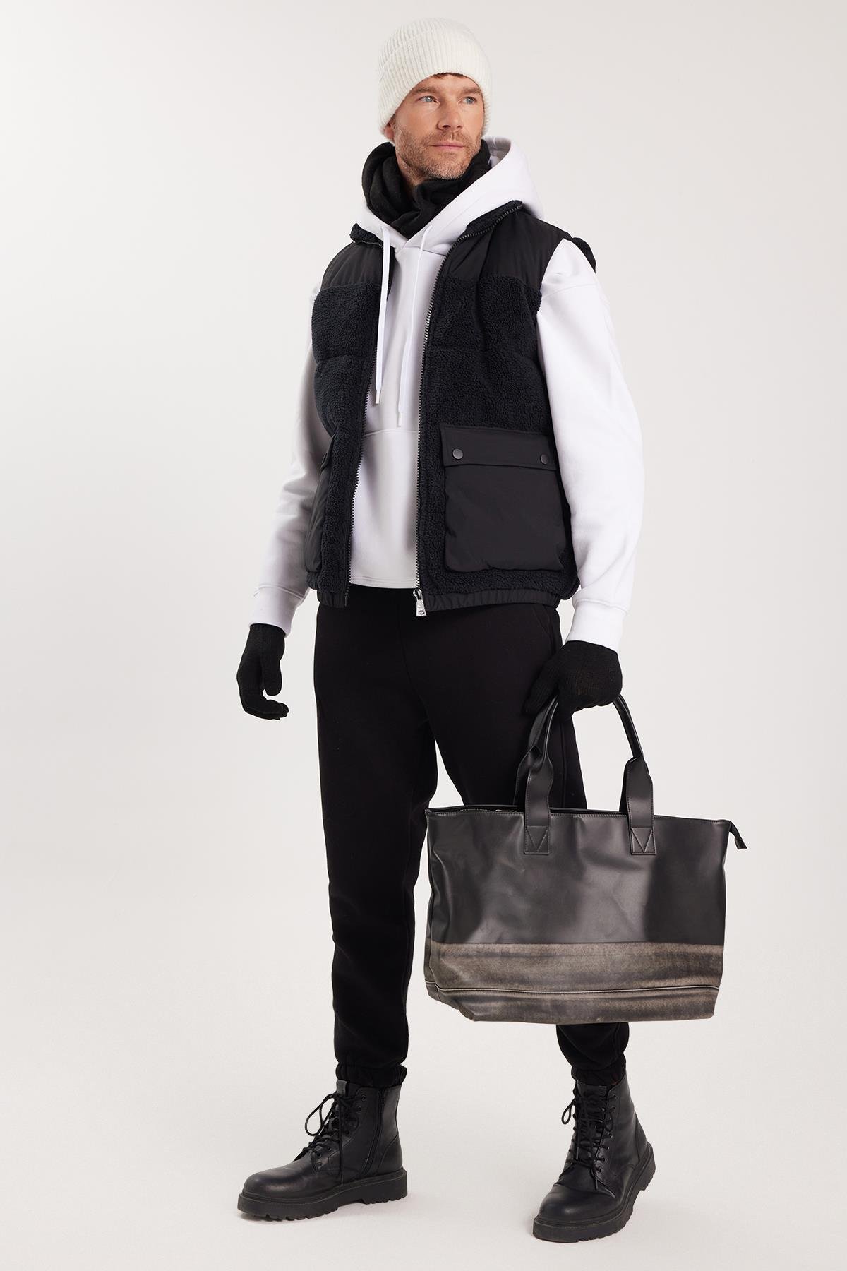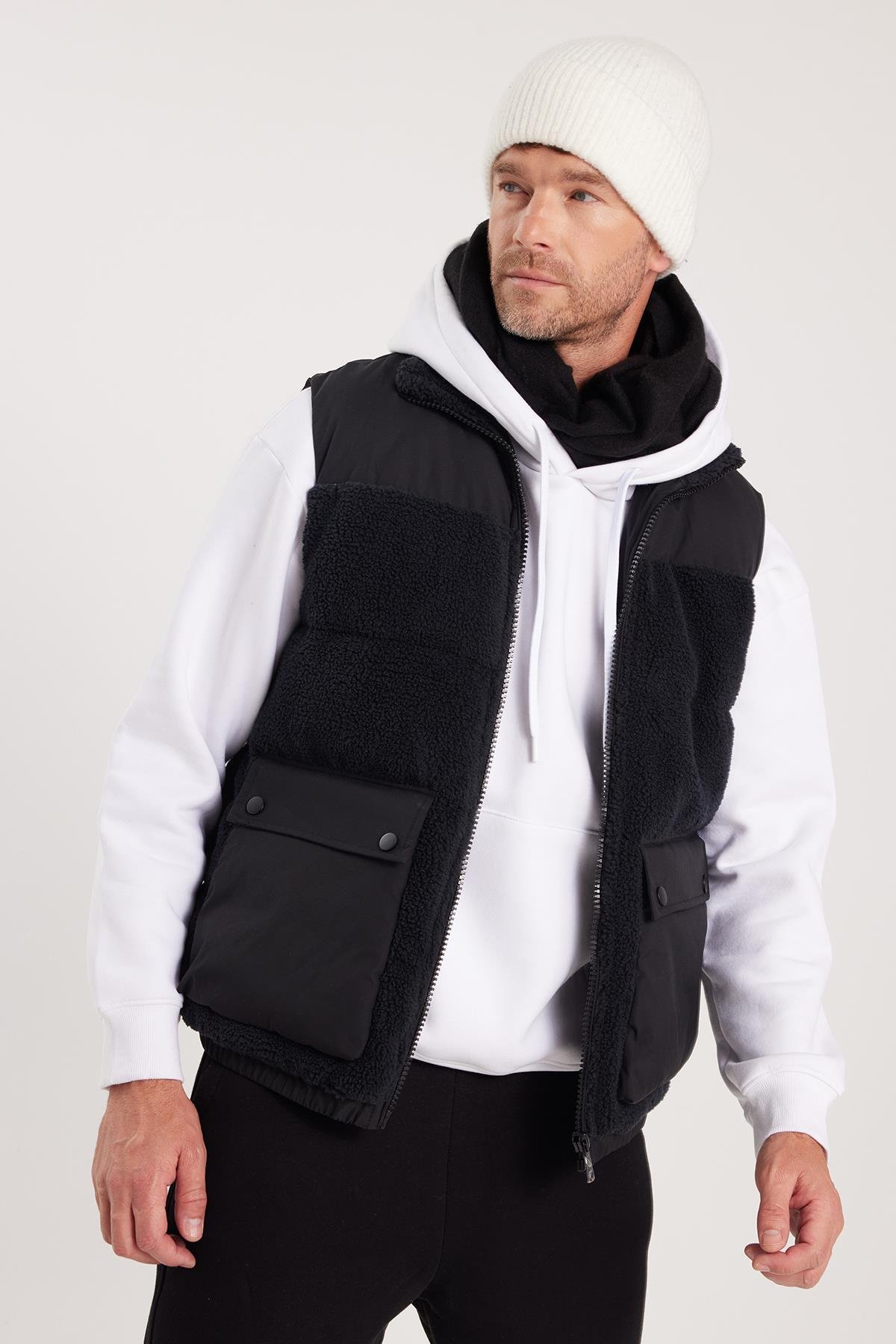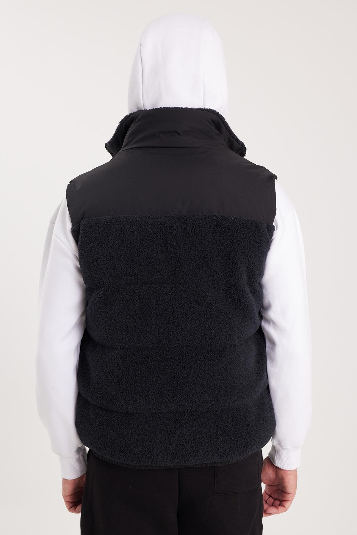 Erkek Regular Fit Klasik Kesim Kürk Detaylı Dik Yaka Çift Cepli Siyah Yelek (YL250009-02)