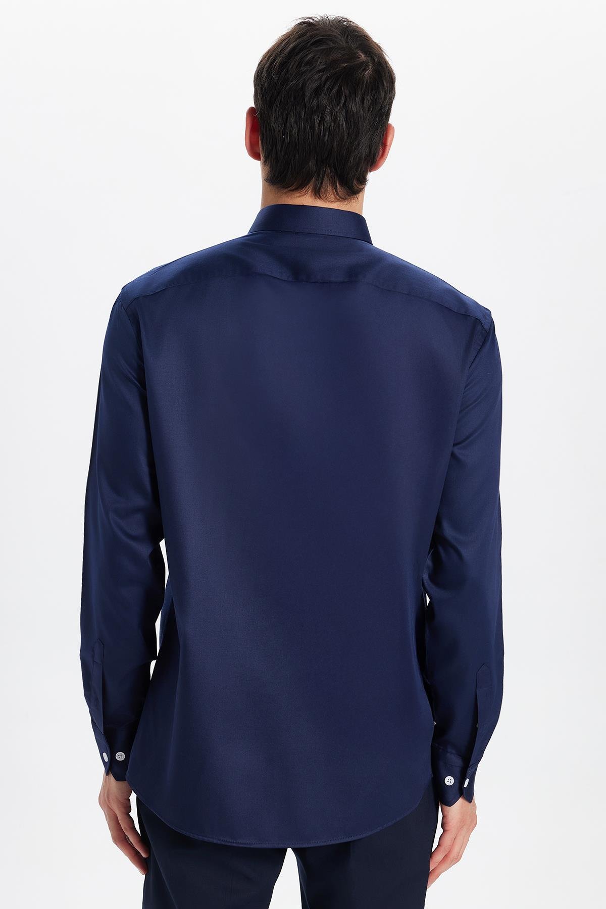 Erkek Regular Fit Klasik Kesim Lacivert Non-Iron Pamuklu Doğa Dostu Belgeli Ütü Gerektirmez Gömlek (KL250008-47)