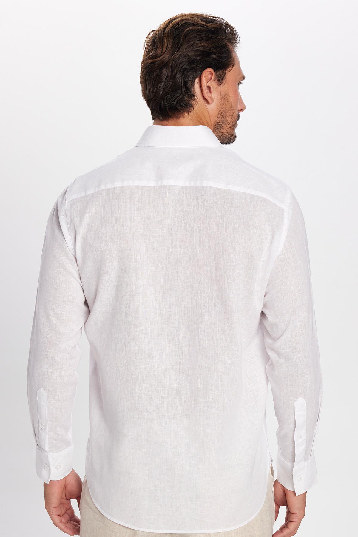 Erkek Regular Fit Klasik Kesim Pamuklu Keten Doku Düğmeli Yaka Beyaz Gömlek (RG250002-4030)
