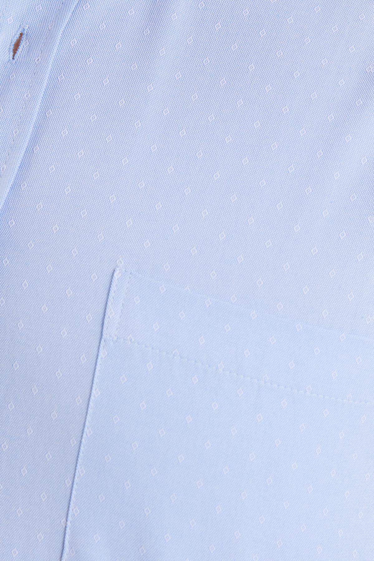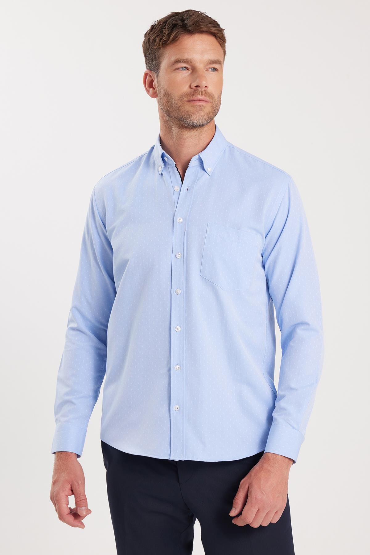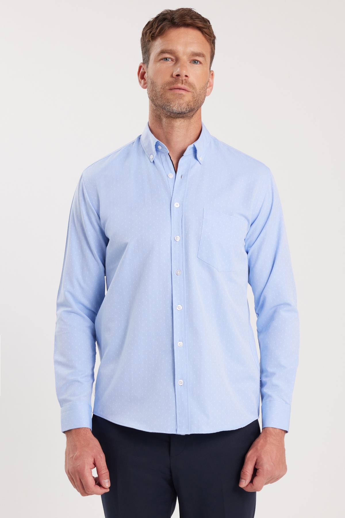 Erkek Regular Fit Klasik Kesim Pamuklu Kolay Ütü Armürlü Mavi Düğmeli Yaka Gömlek