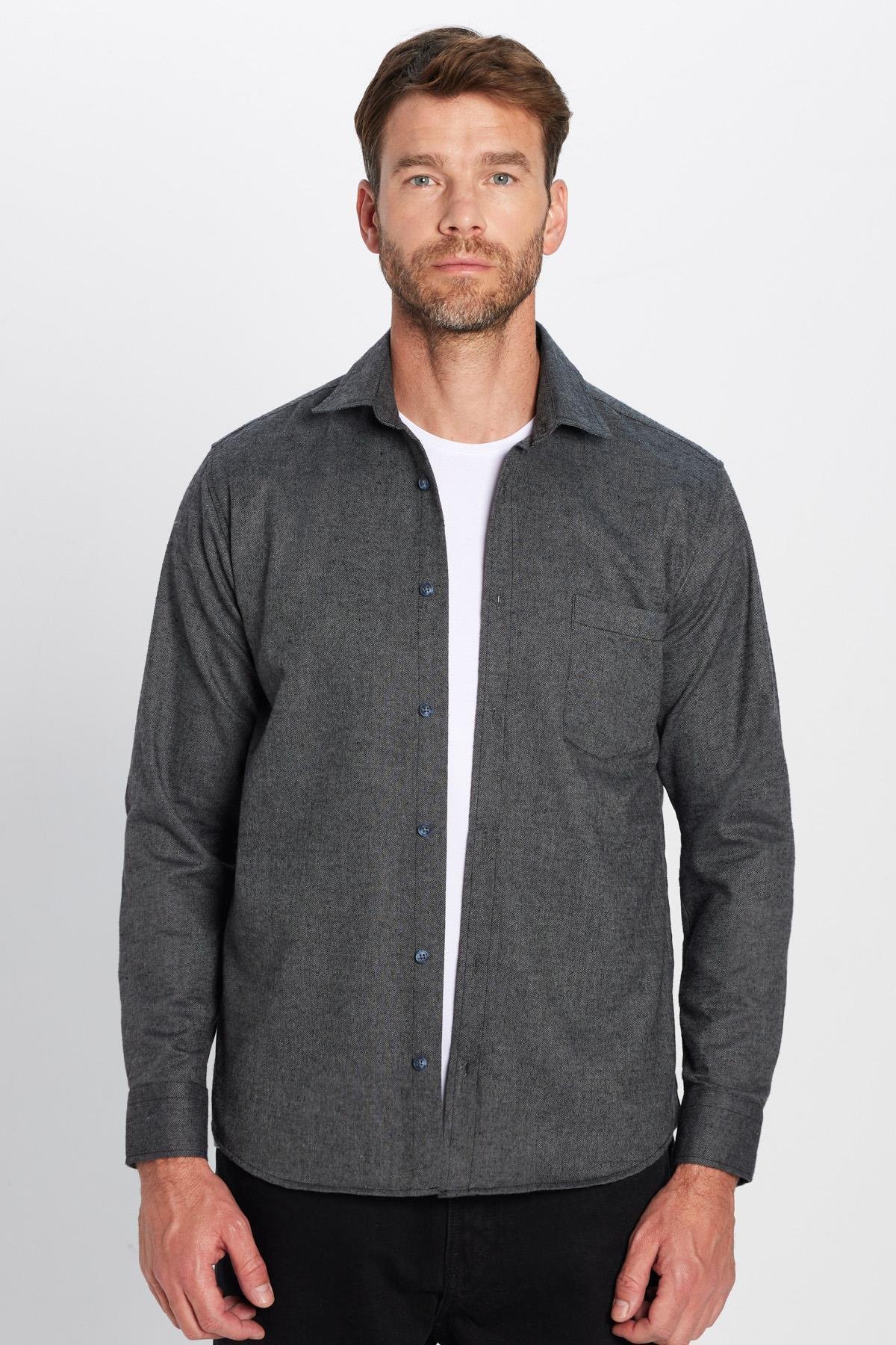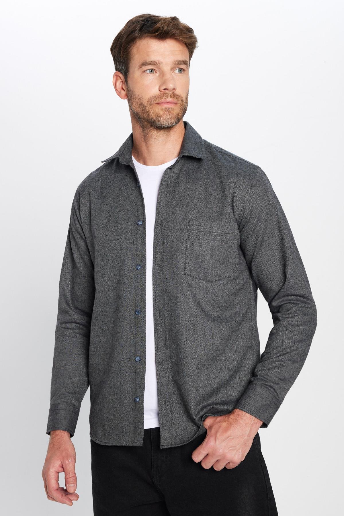 Erkek Regular Fit Klasik Kesim Pamuklu Tek Cepli Armürlü Kışlık Oduncu Gri Gömlek (KL240003-1551)