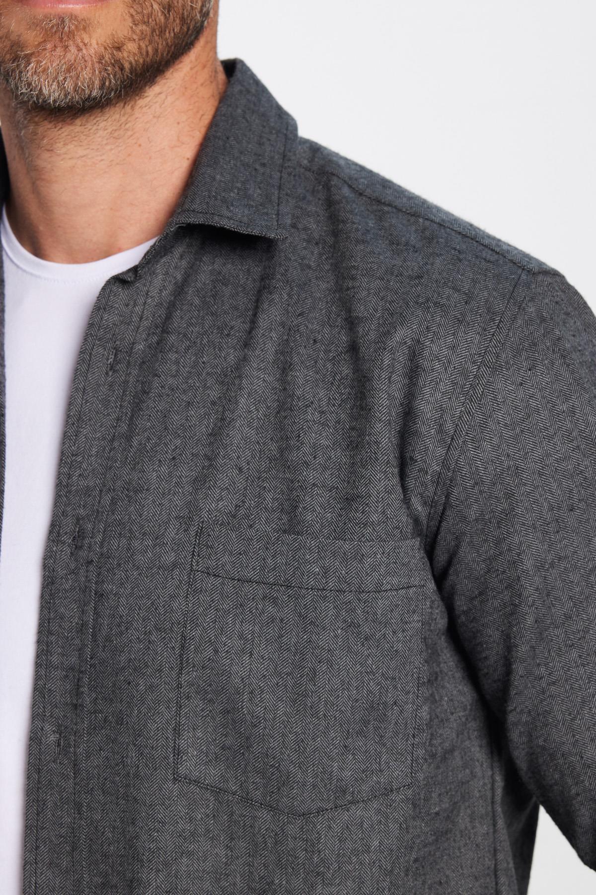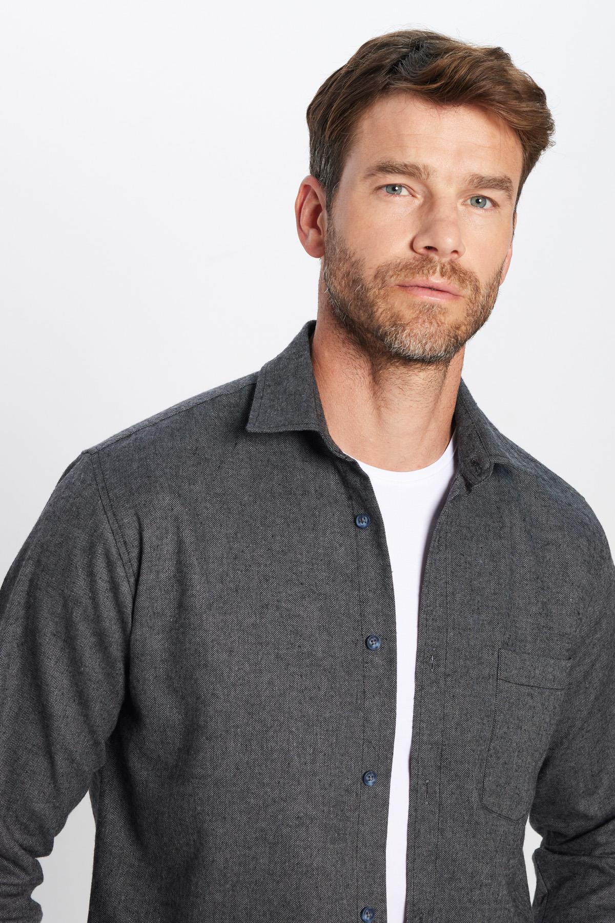 Erkek Regular Fit Klasik Kesim Pamuklu Tek Cepli Armürlü Kışlık Oduncu Gri Gömlek