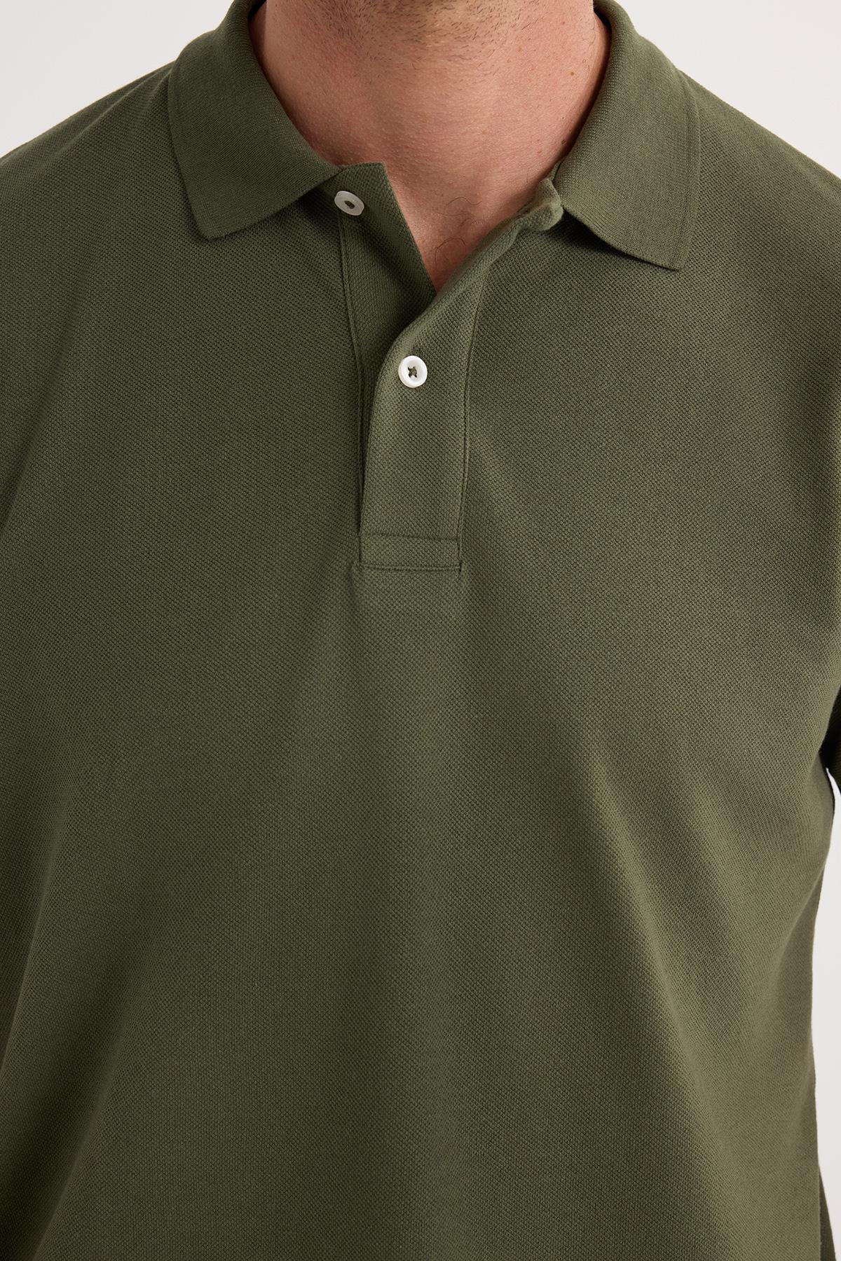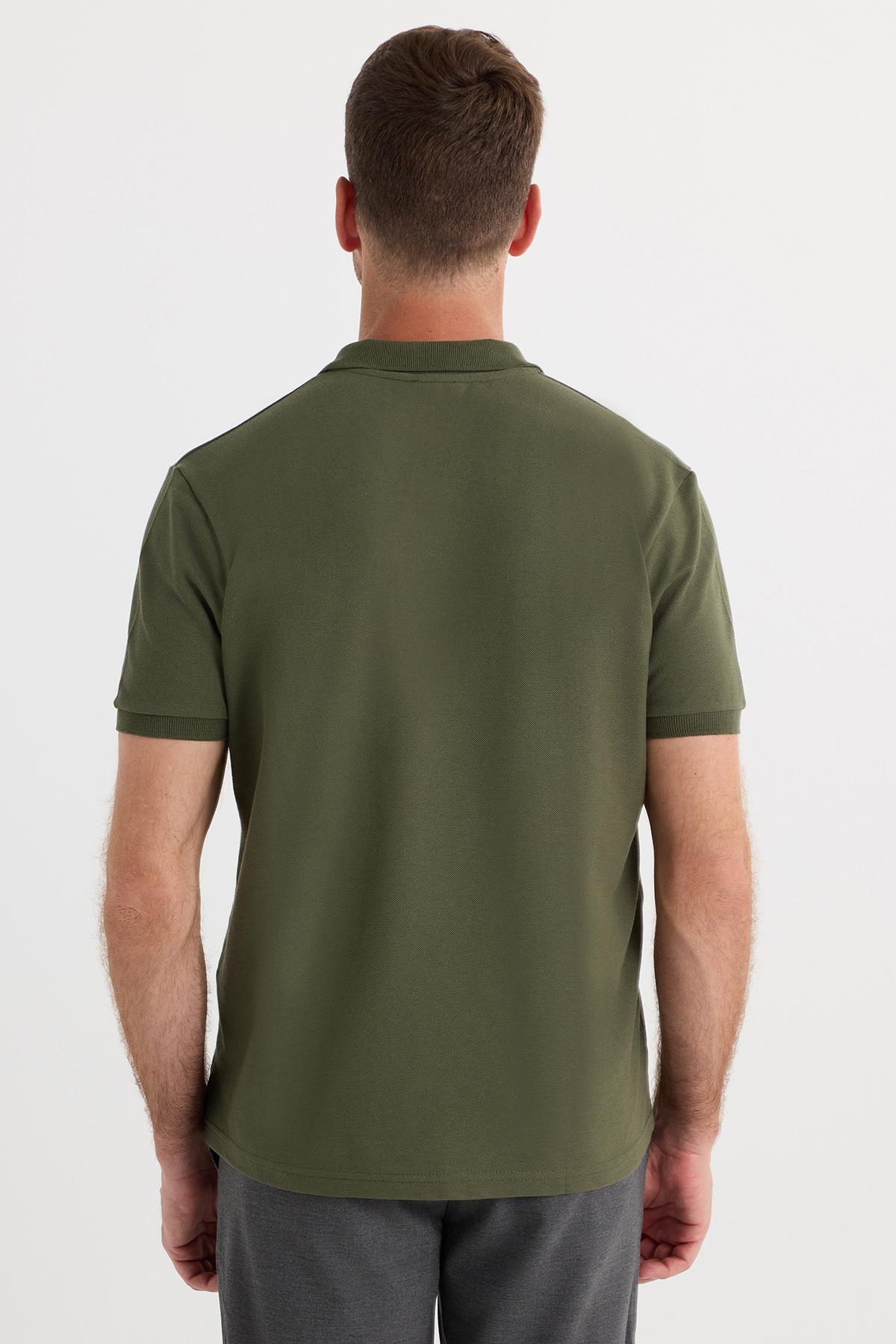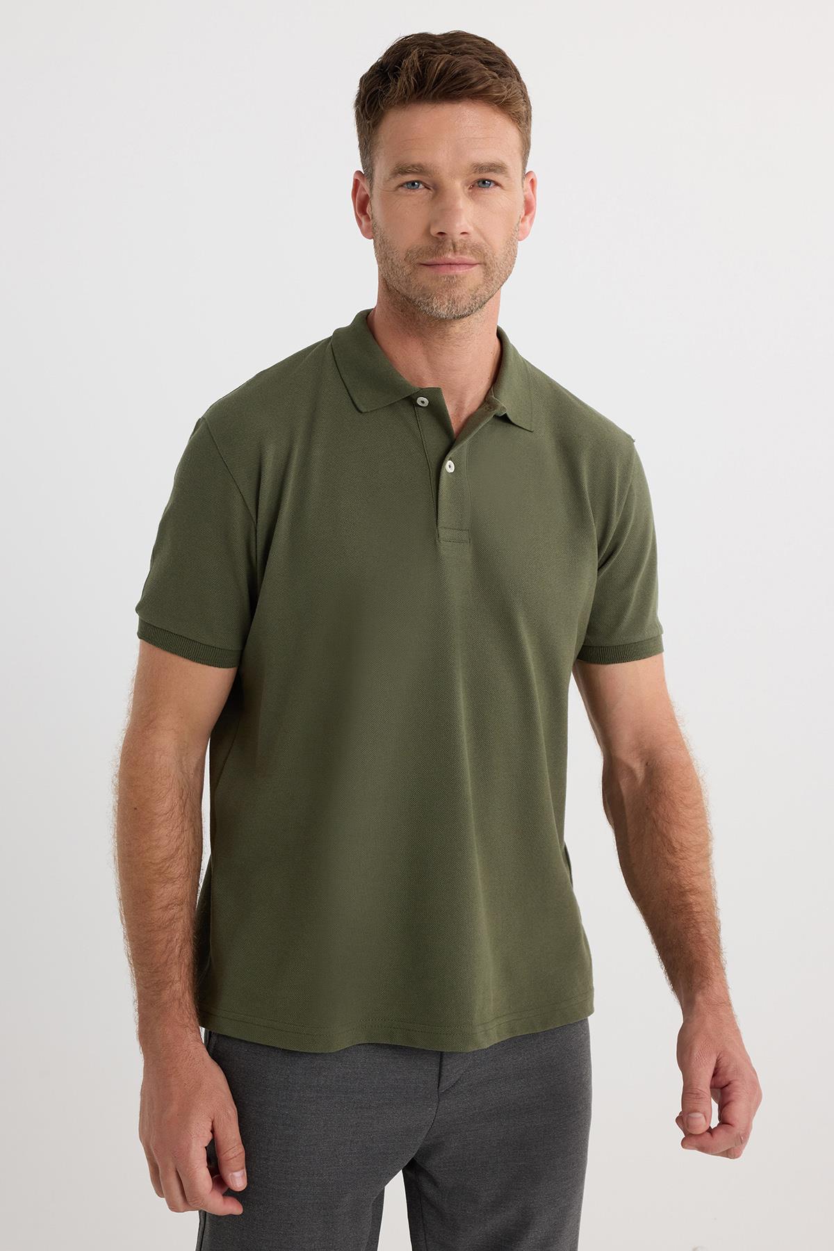 Erkek Regular Fit Klasik Kesim Pamuklu Yumuşak Dokulu Serin Tutan Kumaş Düz Pike Haki Polo Yaka Tişört