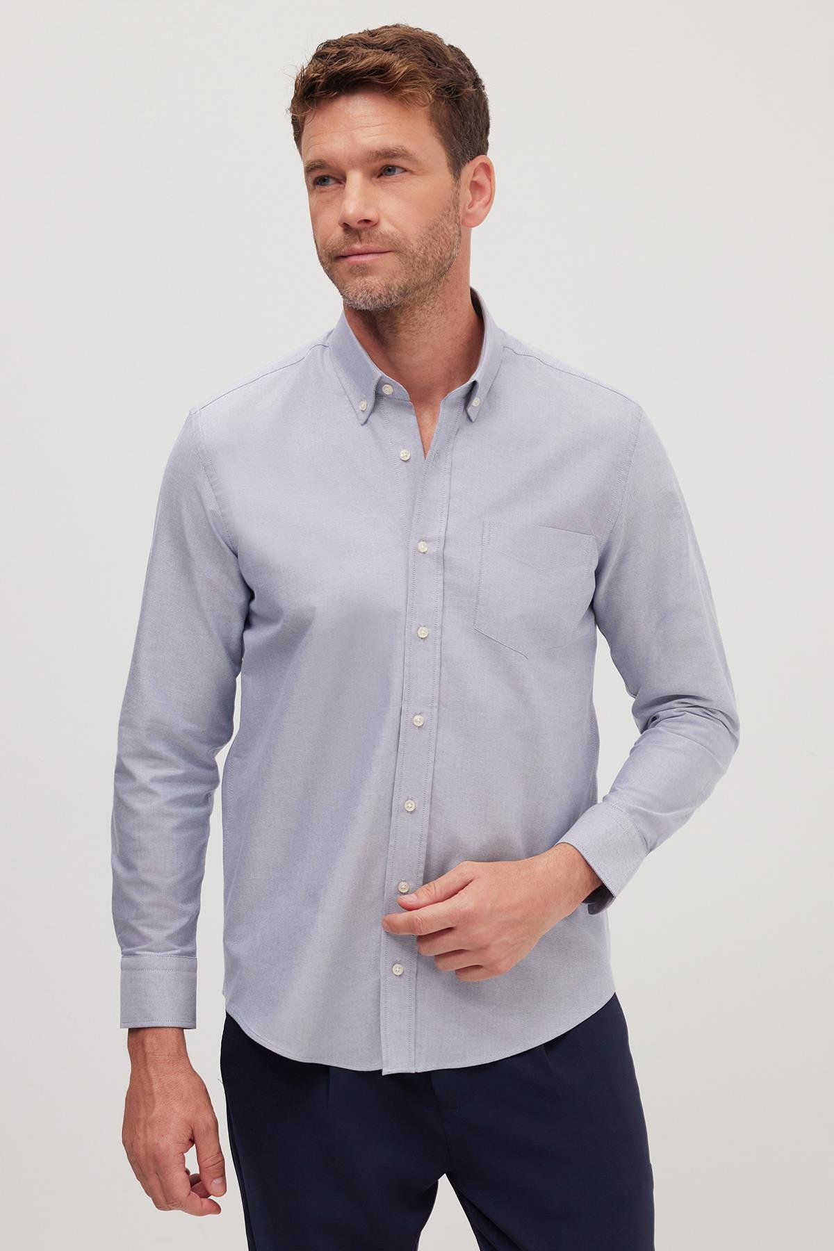Erkek Regular Fit Klasik Kesim Premium Oxford %100 Pamuk Lacivert Gömlek