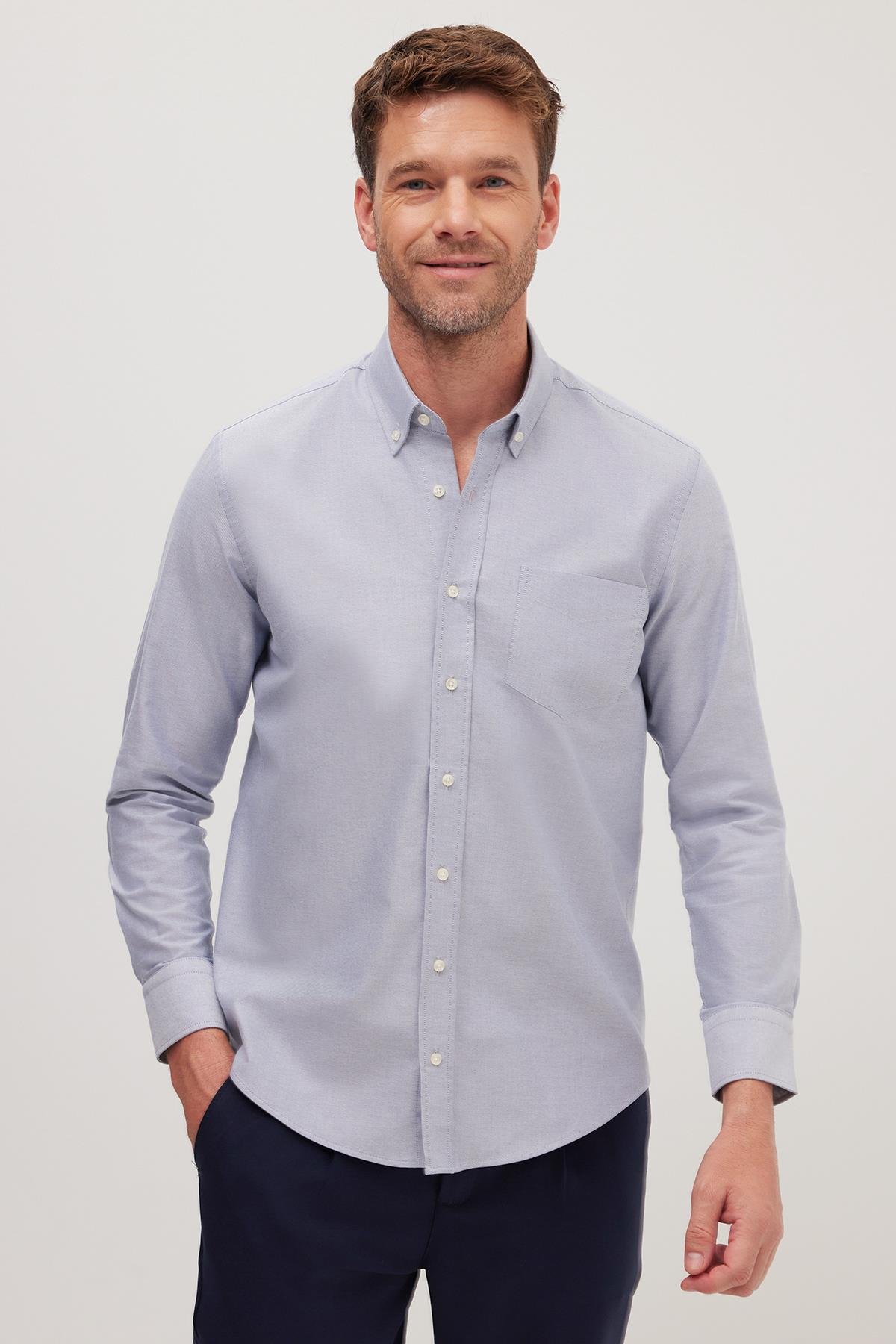 Erkek Regular Fit Klasik Kesim Premium Oxford %100 Pamuk Lacivert Gömlek (RG250014-1501)