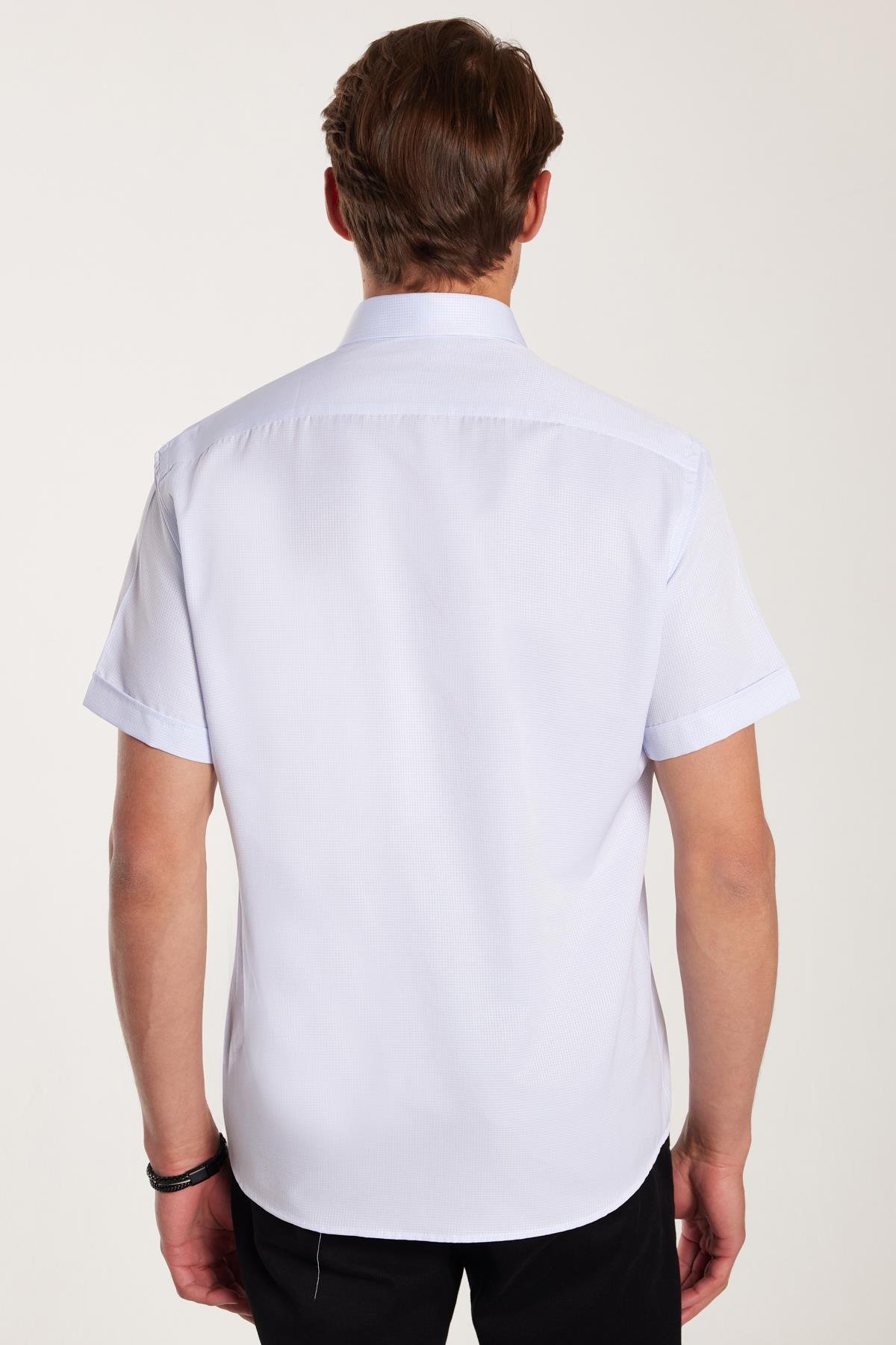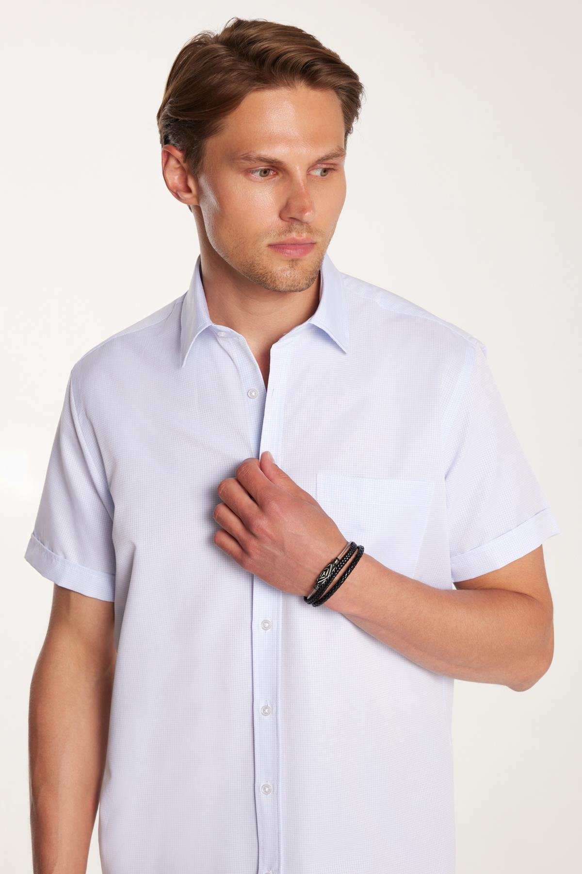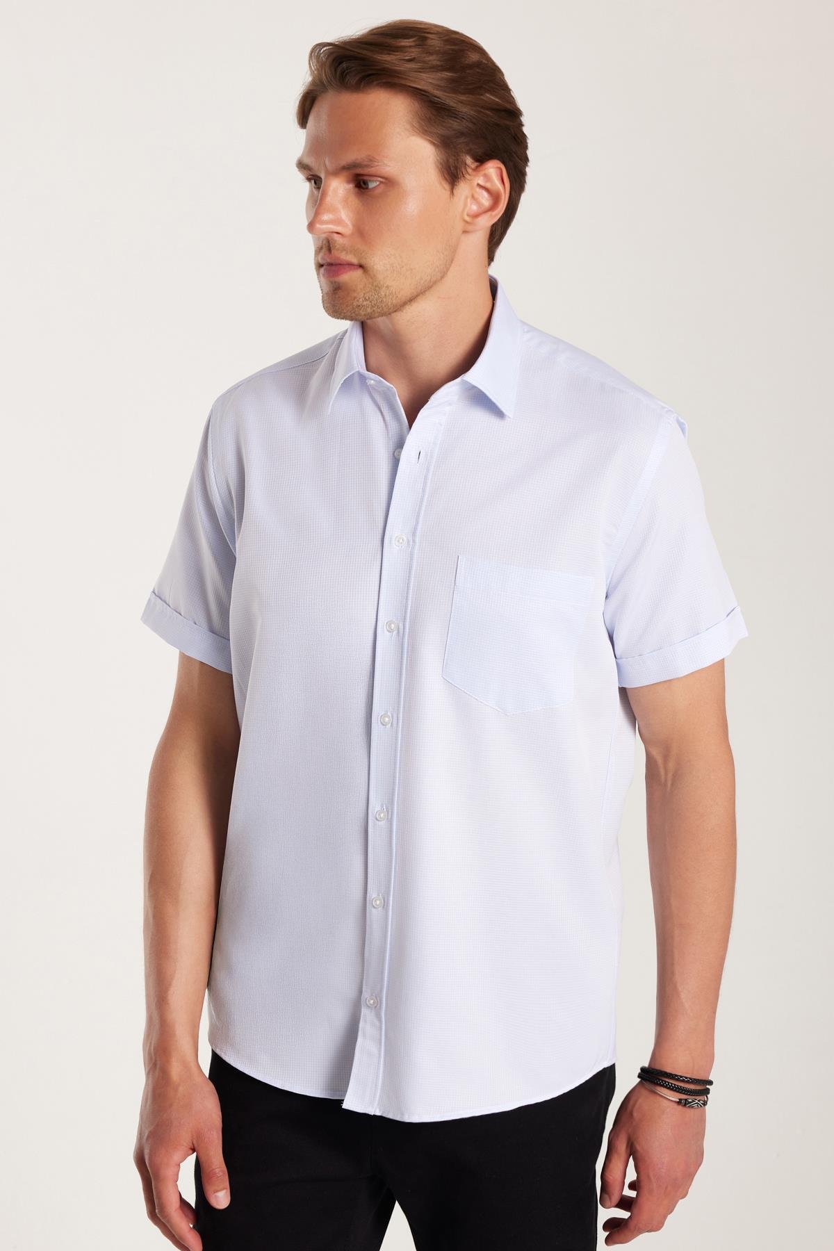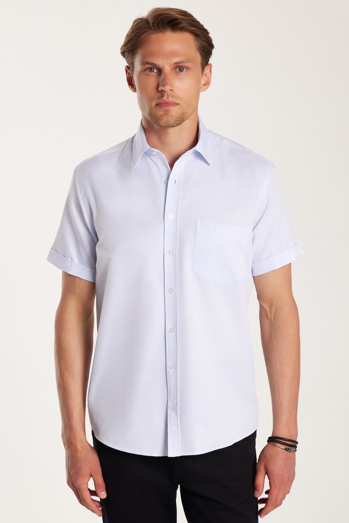 Erkek Regular Fit Klasik Kesim Kısa Kollu Pamuklu Tek Cepli Armürlü Açık Mavi Gömlek (KL250007-974)