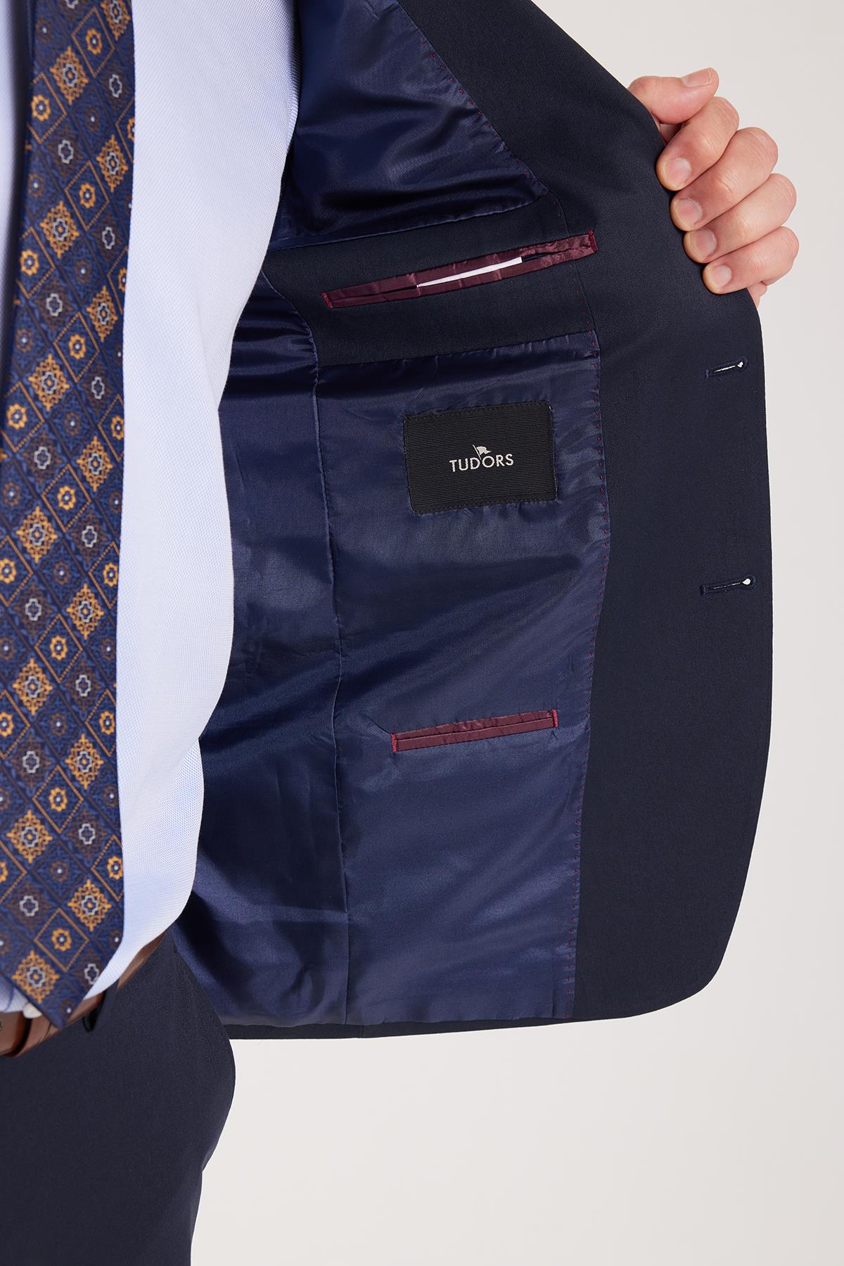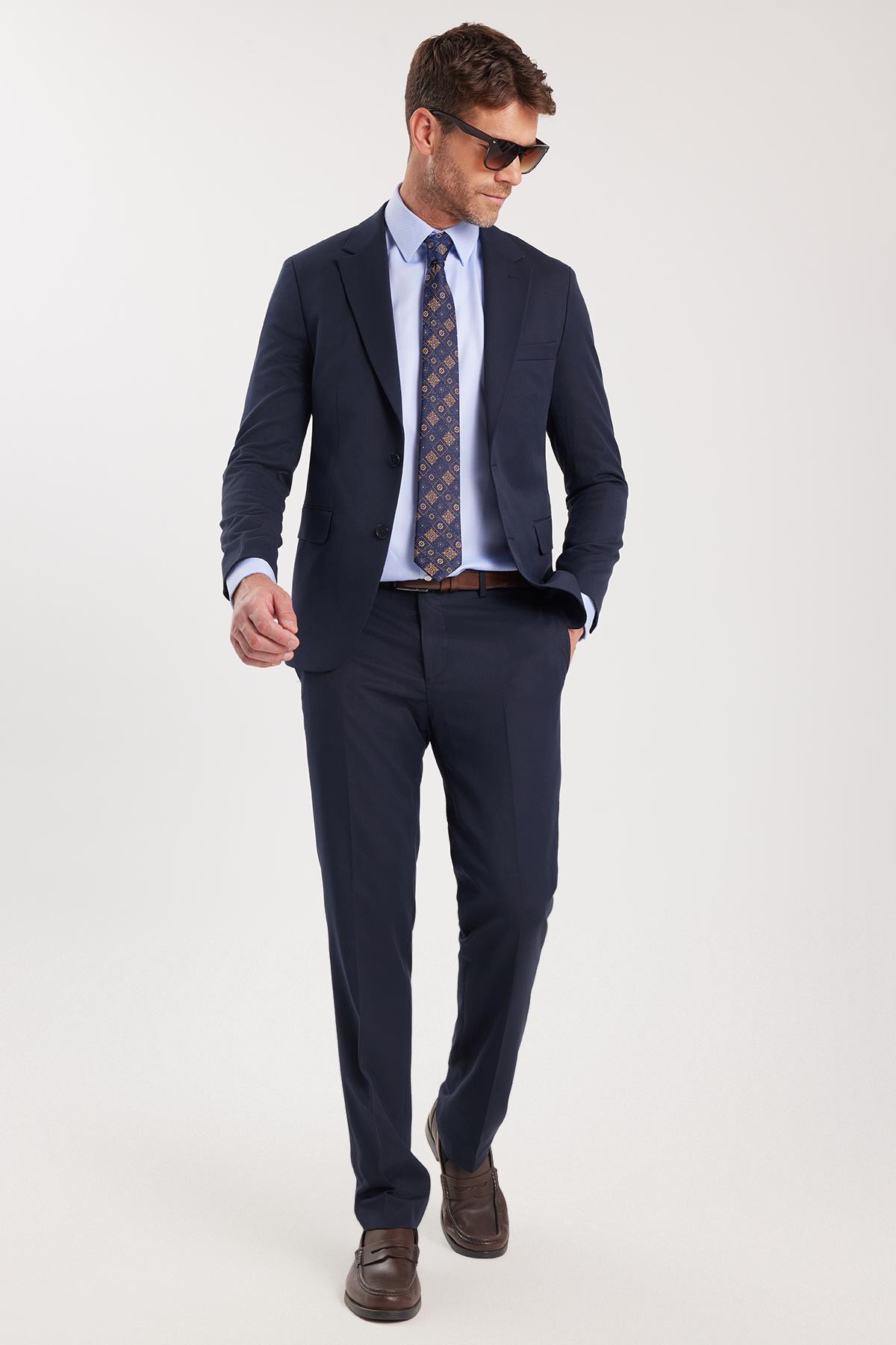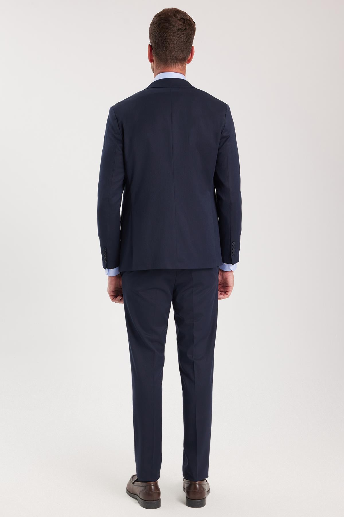 Erkek Regular Fit Lacivert Esnek Likralı Kumaş Mono Yaka Kapaklı Cepli Takım Elbise