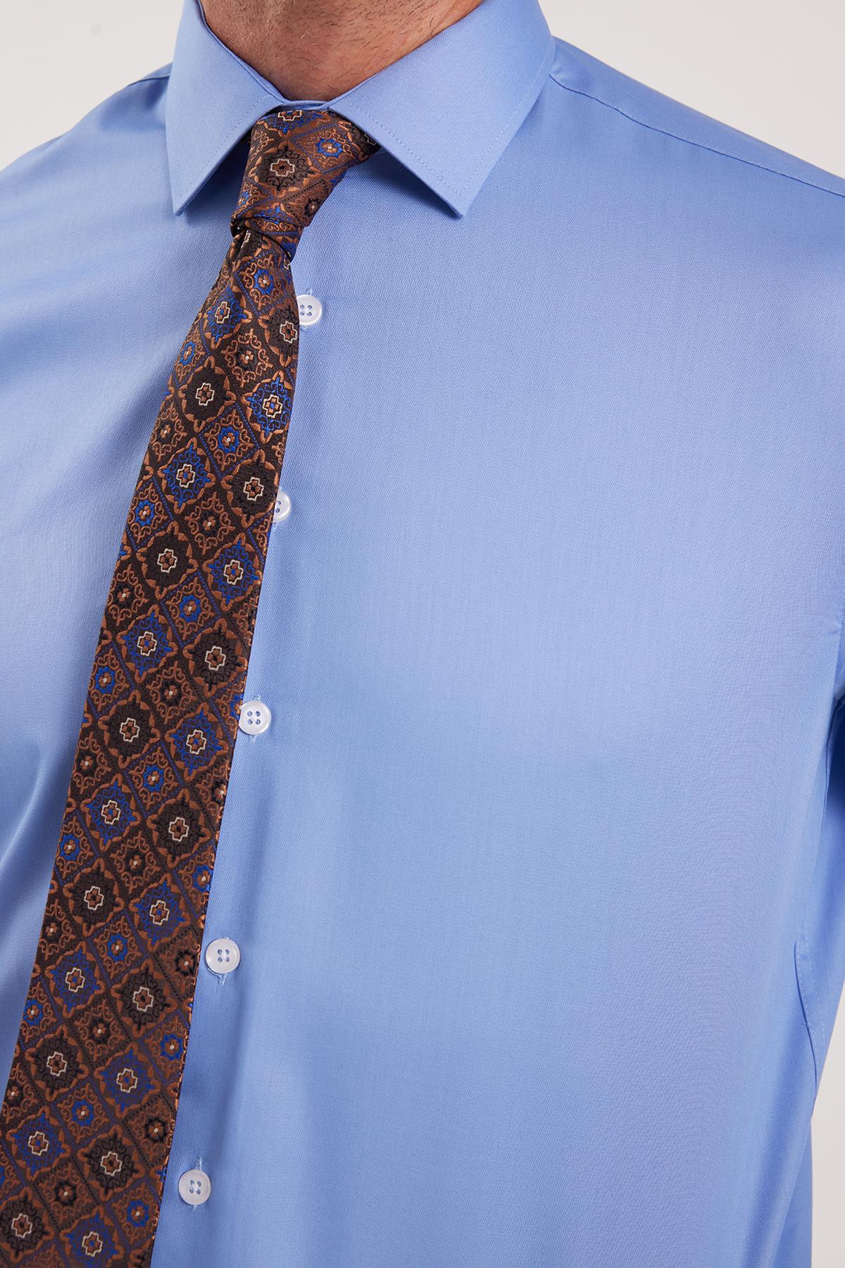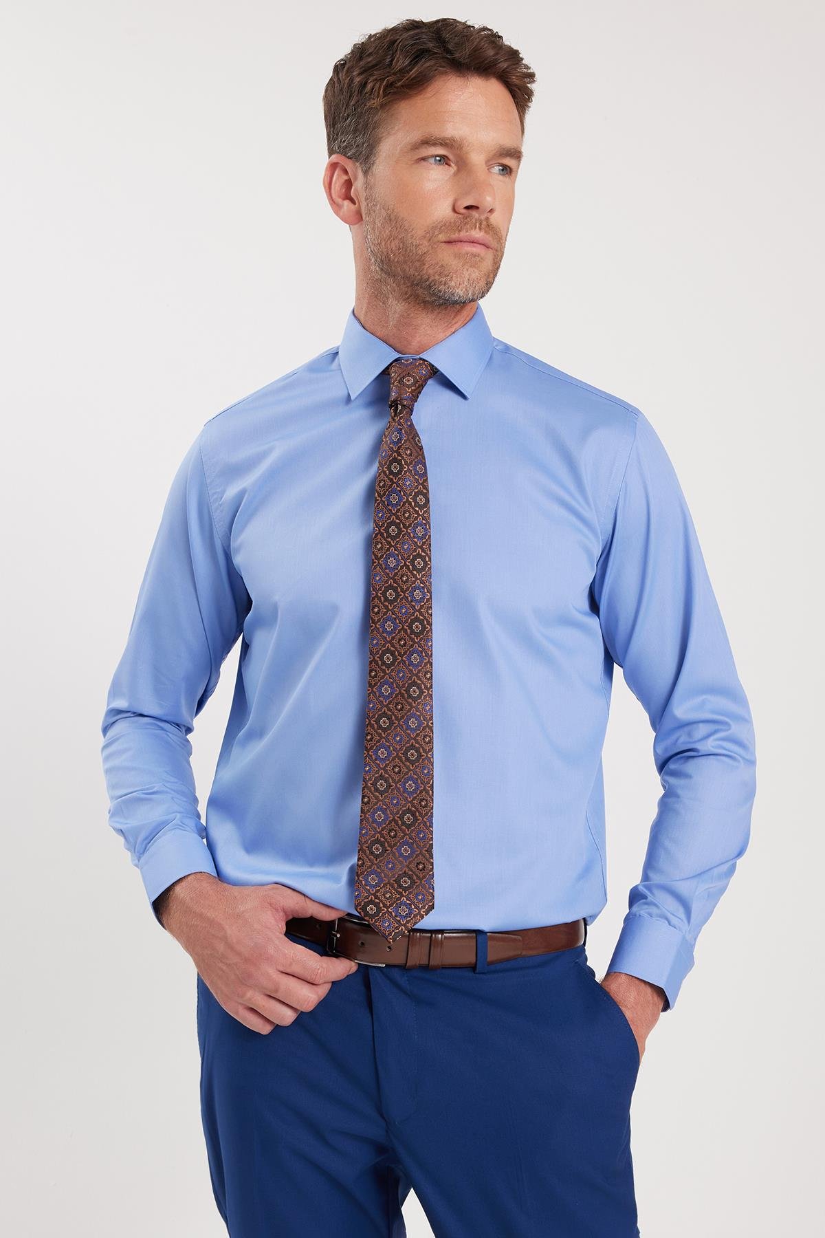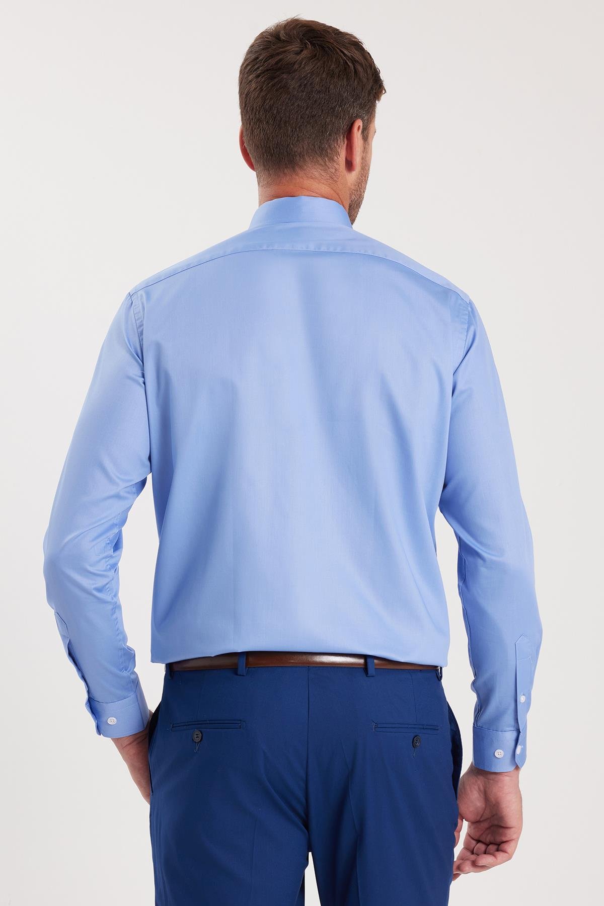 Erkek Regular Fit Mavi Non-Iron Pamuklu Doğa Dostu Ekoteks Belgeli Ütü Gerektirmez Gömlek