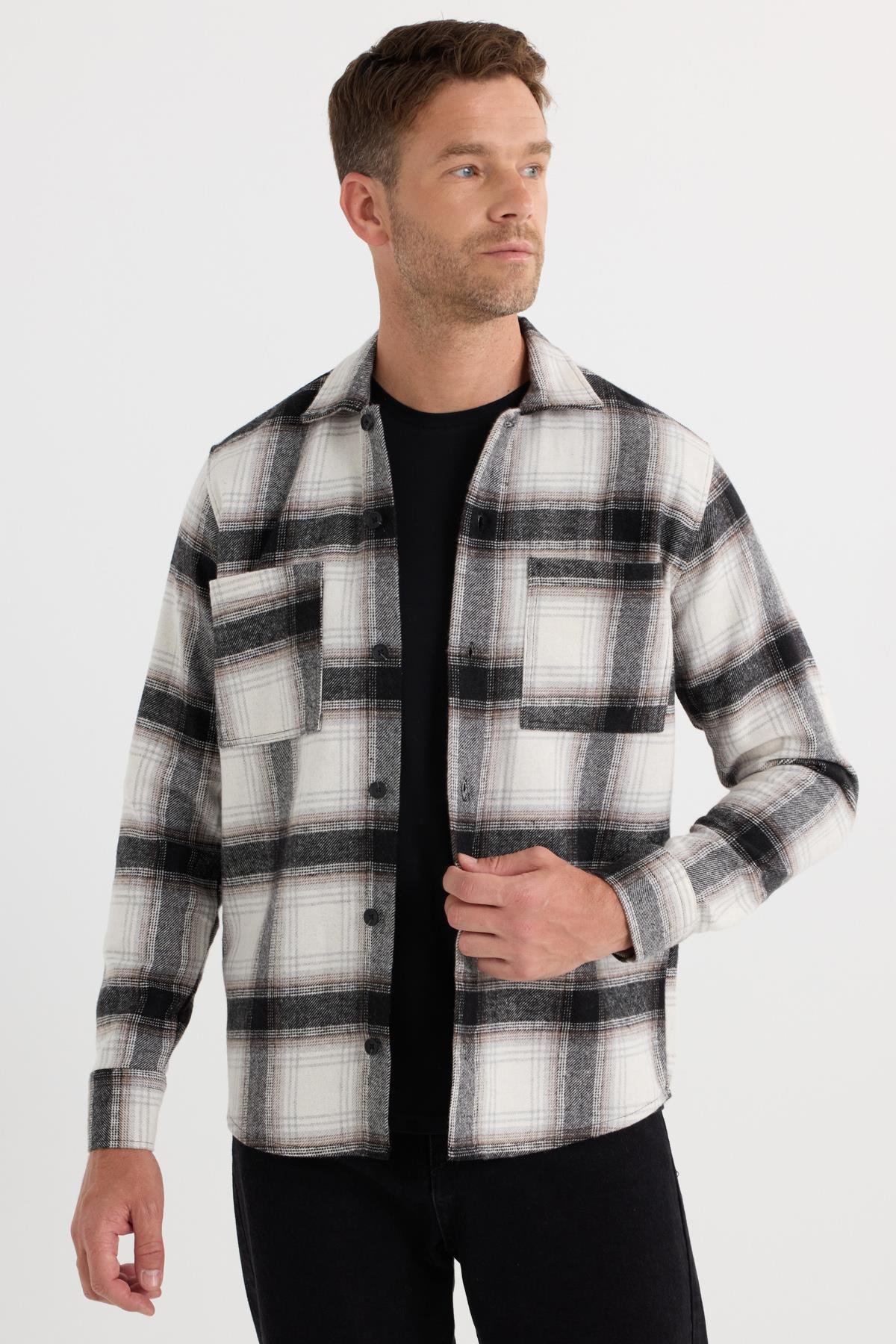 Erkek Regular Fit Normal Kesim Çift Cepli Kışlık Oduncu Kareli Gömlek (KL250014-1169)