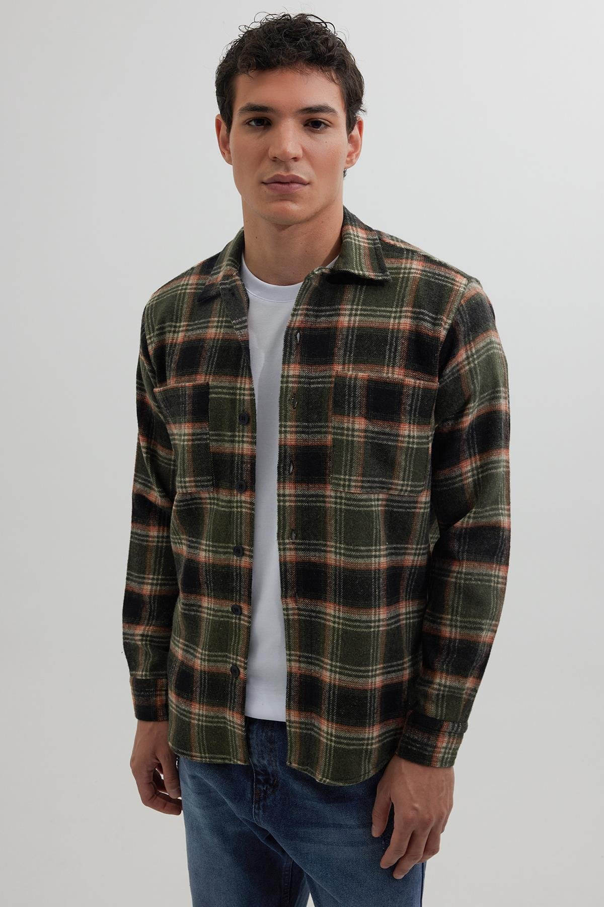 Erkek Regular Fit Normal Kesim Çift Cepli Kışlık Oduncu Kareli Gömlek (KL250014-1172)
