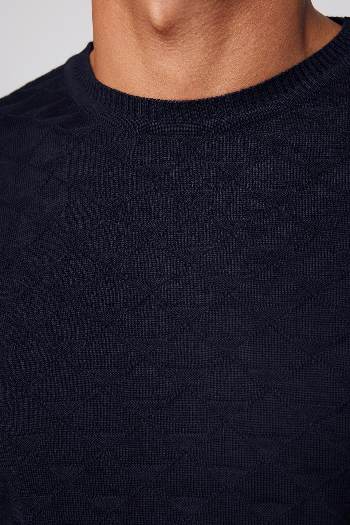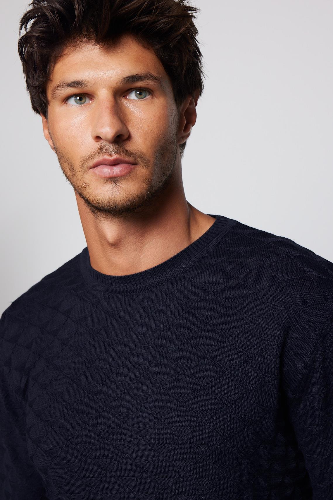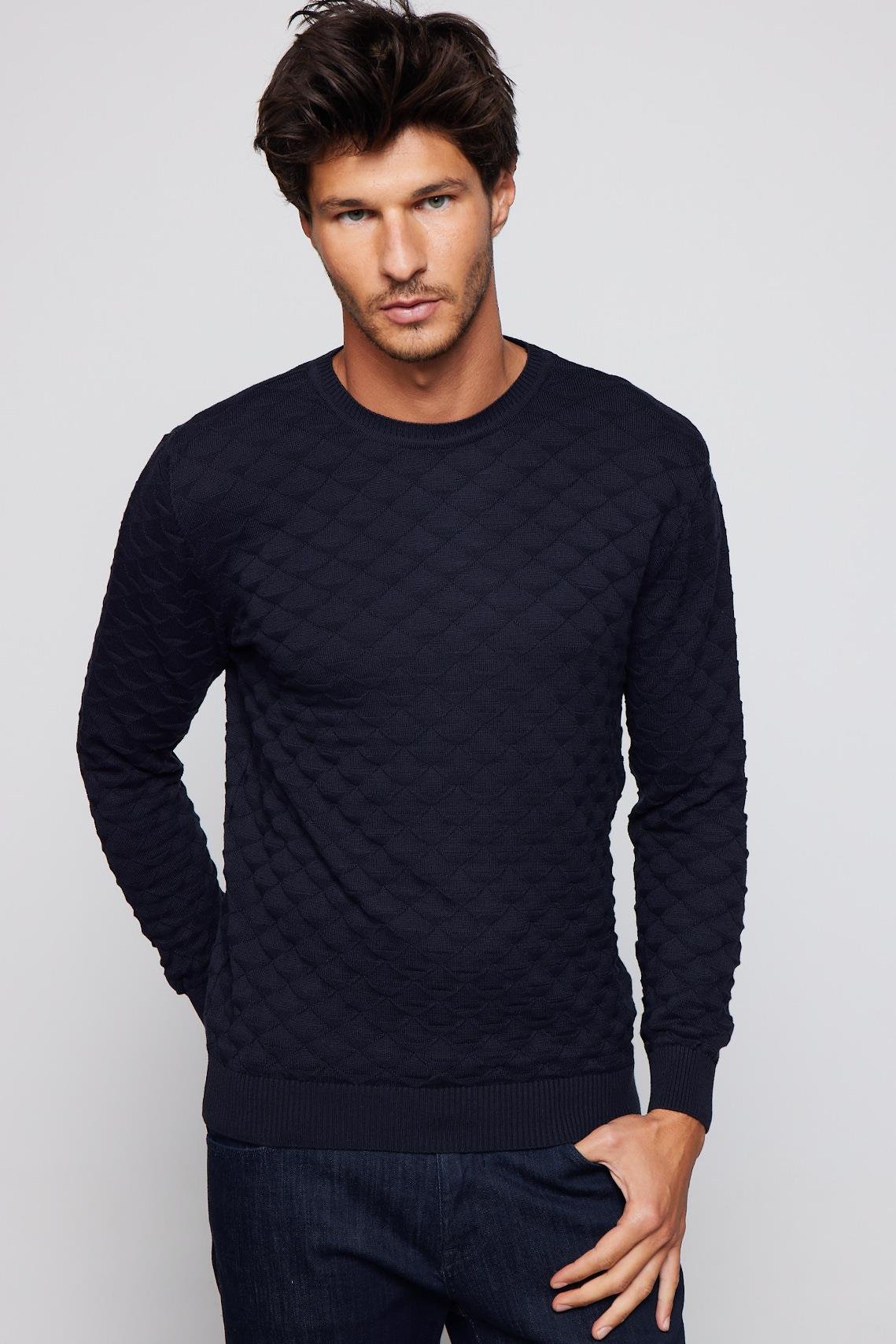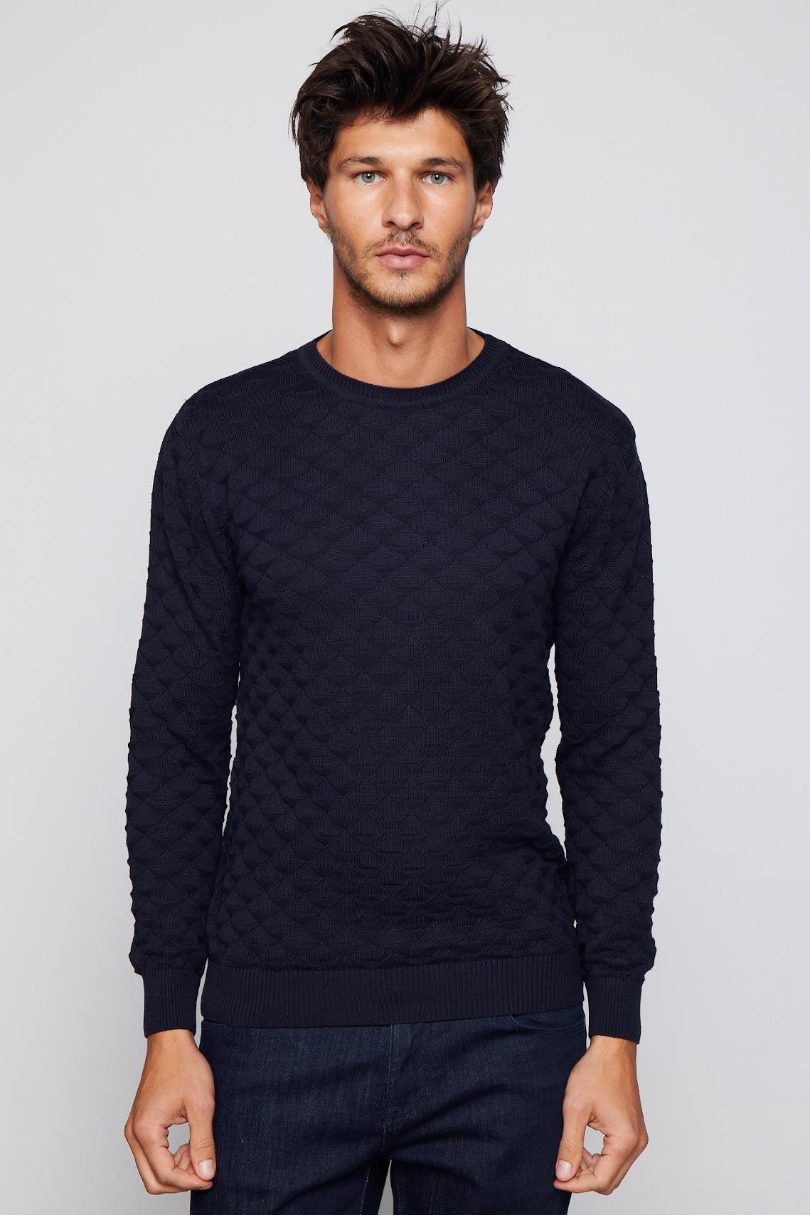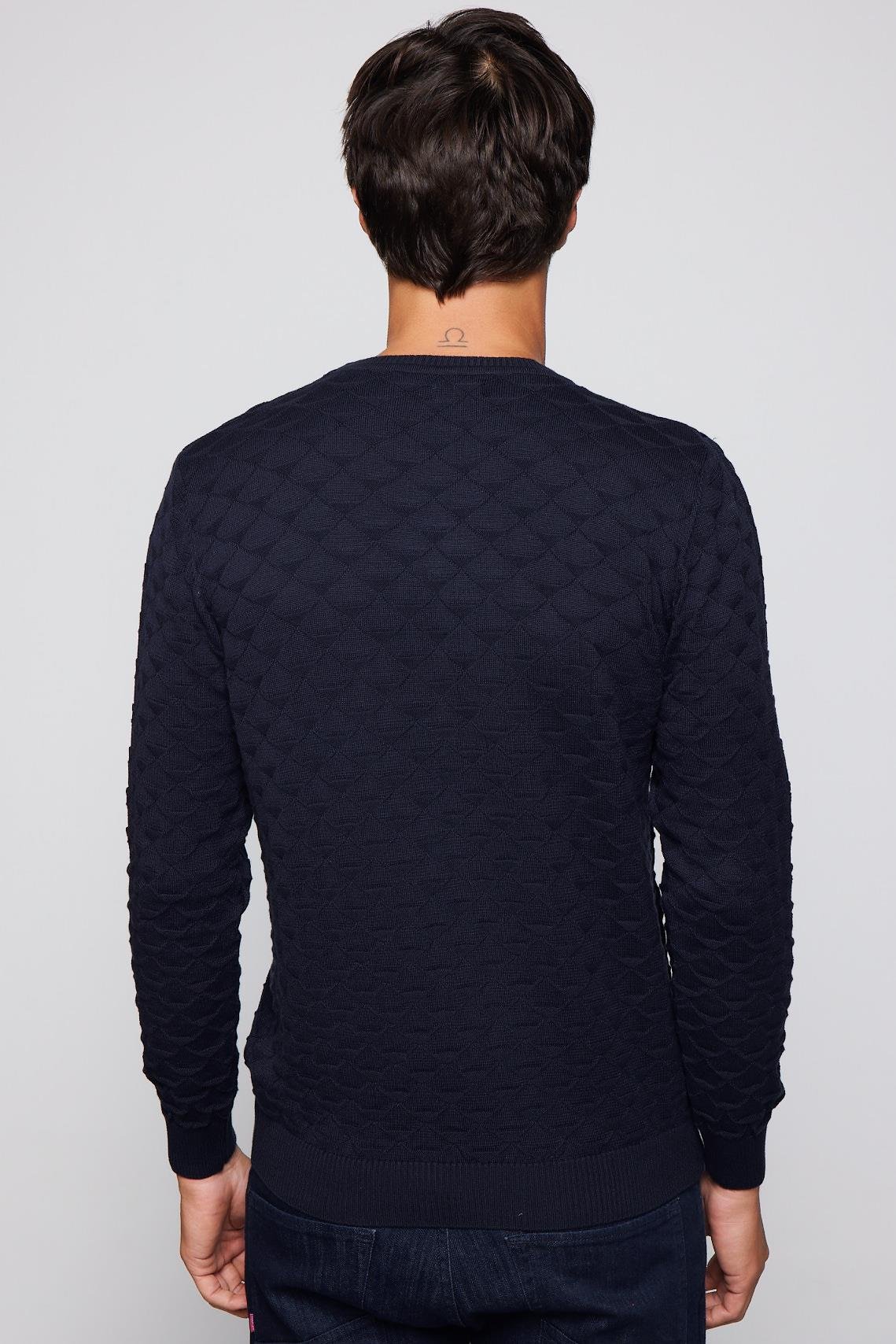 Erkek Regular Fit Rahat Kesim Bisiklet Yaka Desenli Lacivert Triko Kazak