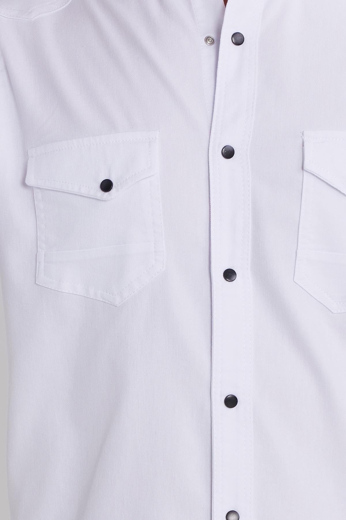 Erkek Regular Fit Rahat Kesim Çift Cepli Spor Yaka Denim Kırık Beyaz Gömlek (RG250012-7770)