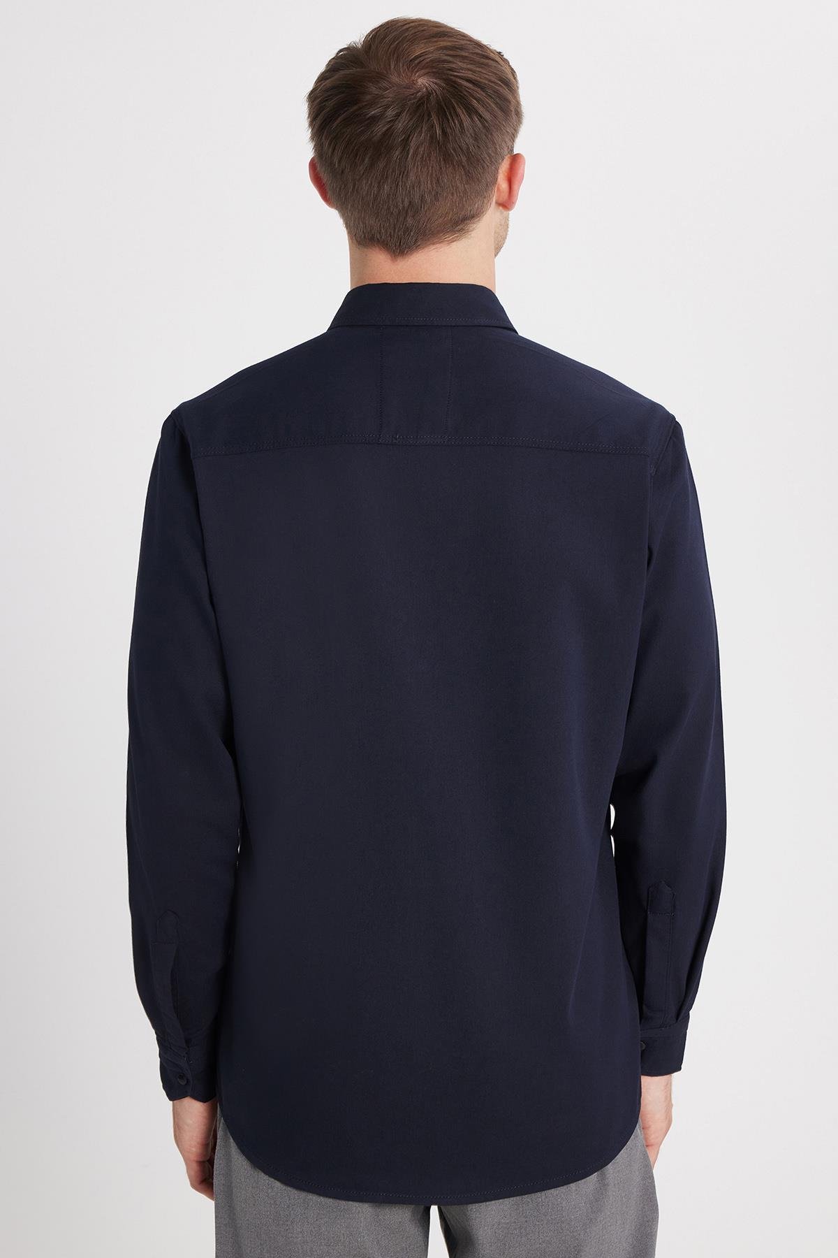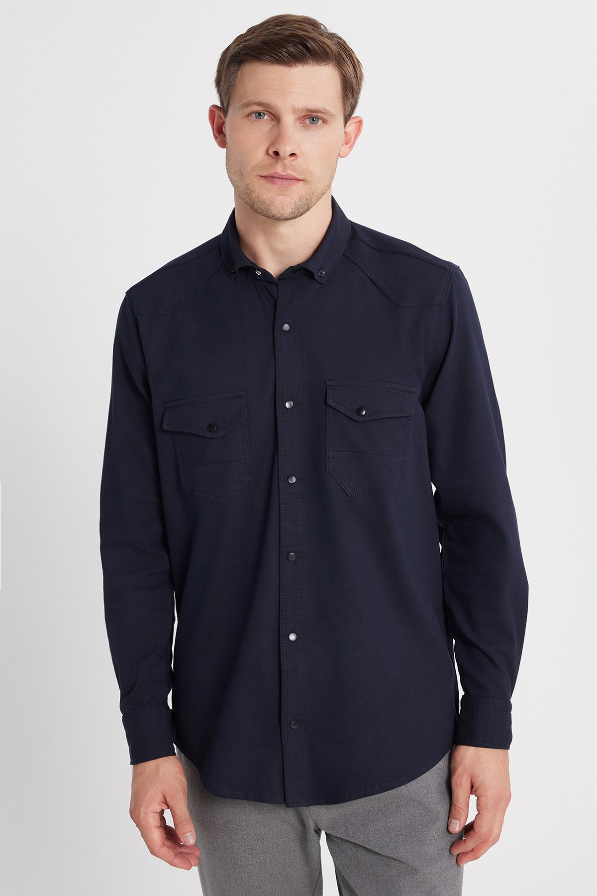 Erkek Regular Fit Rahat Kesim Çift Cepli Spor Yaka Denim Lacivert Gömlek