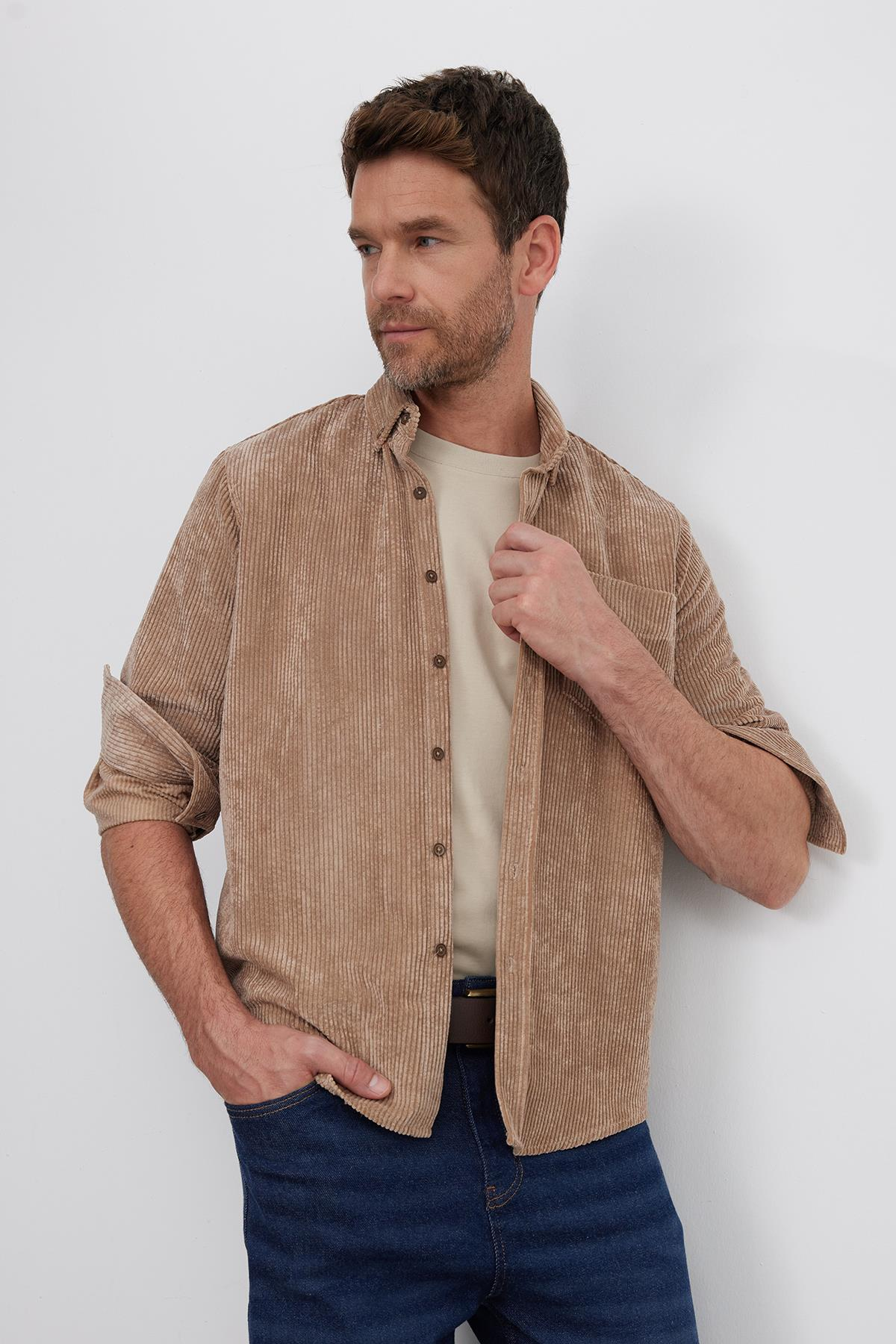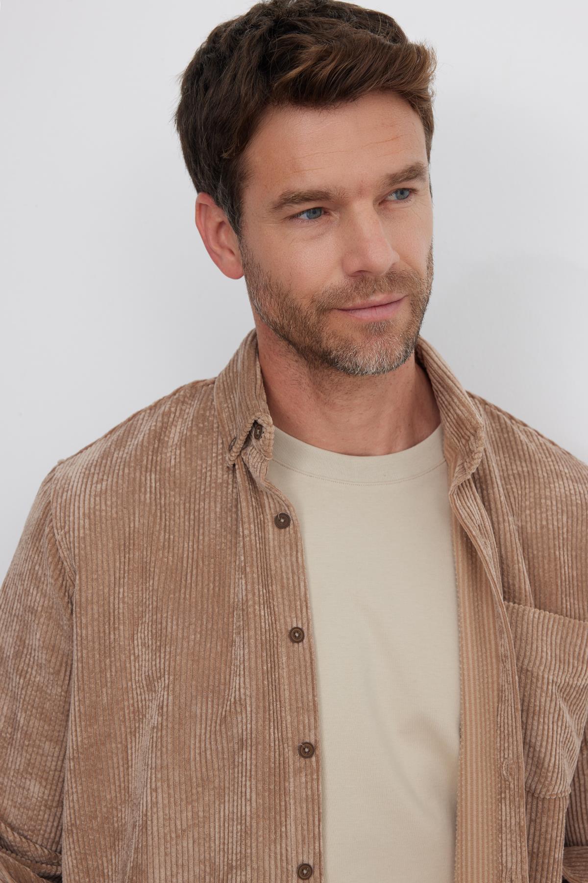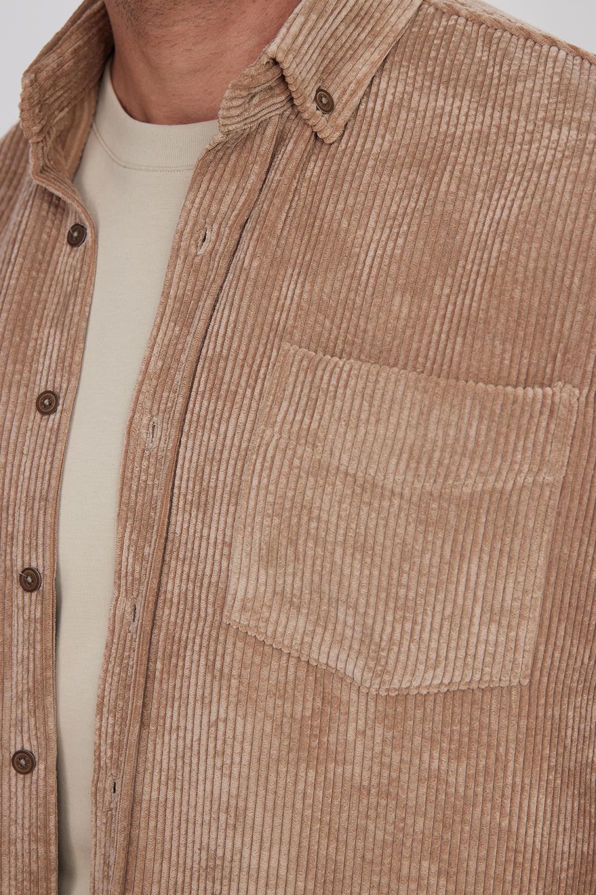 Erkek Regular Fit Rahat Kesim Fitilli Kadife Görünüm Düğmeli Yaka Açık Kahve Ceket Gömlek (RG250016-L39)