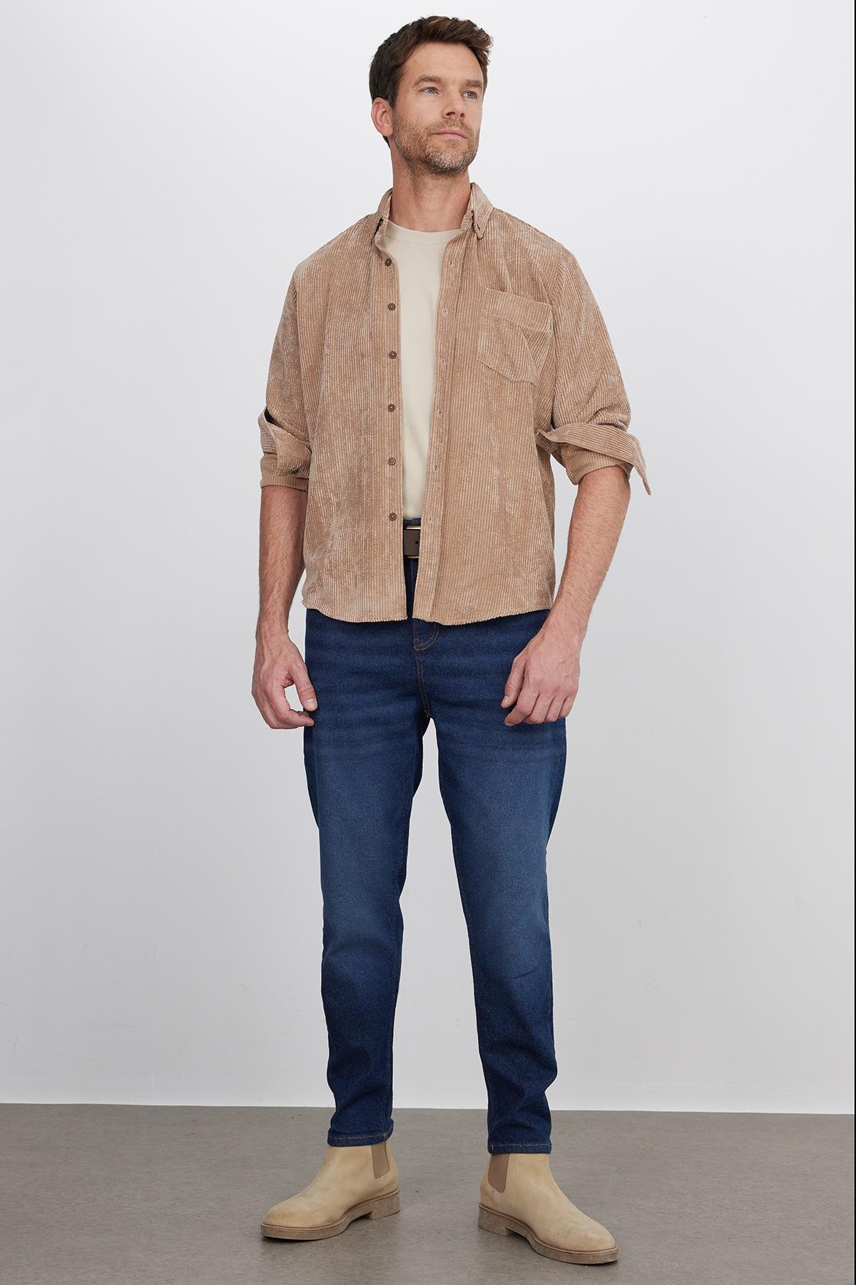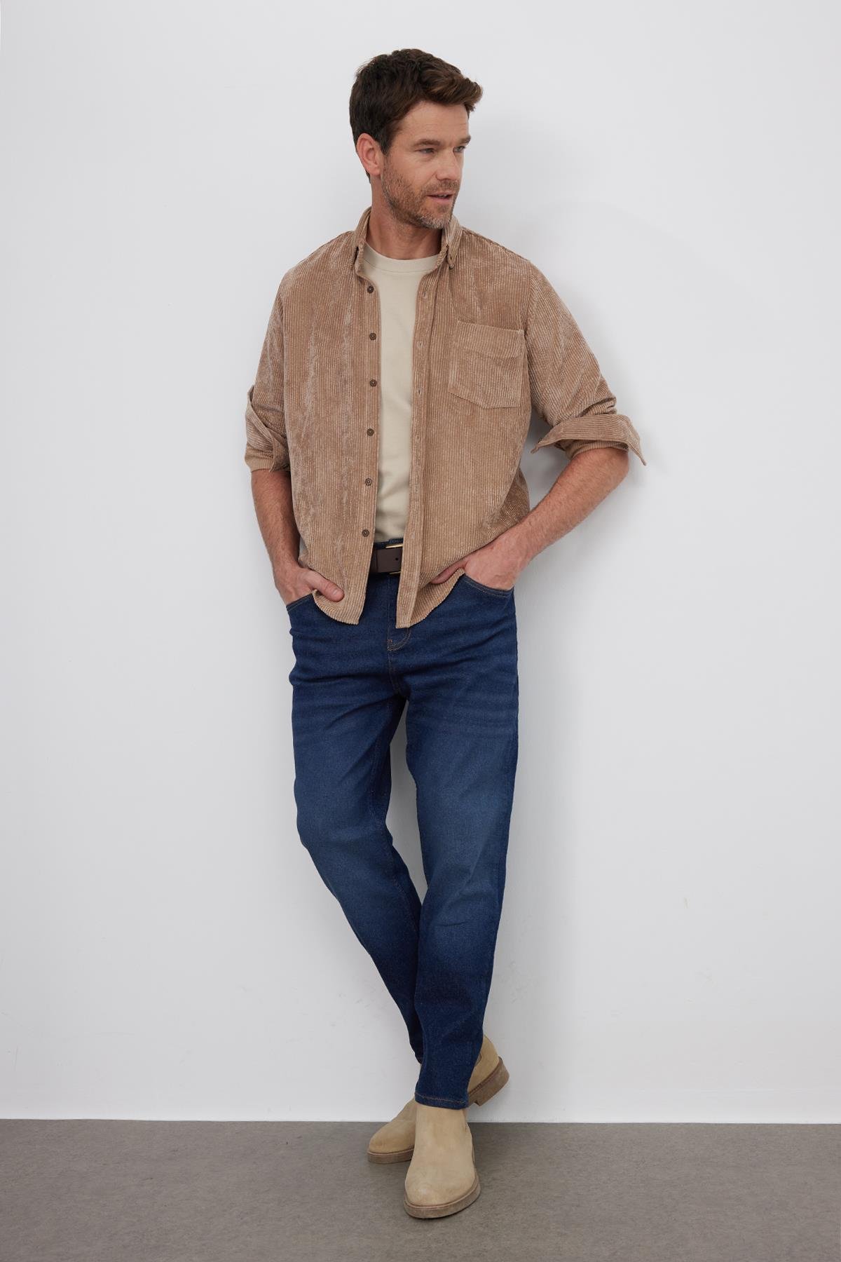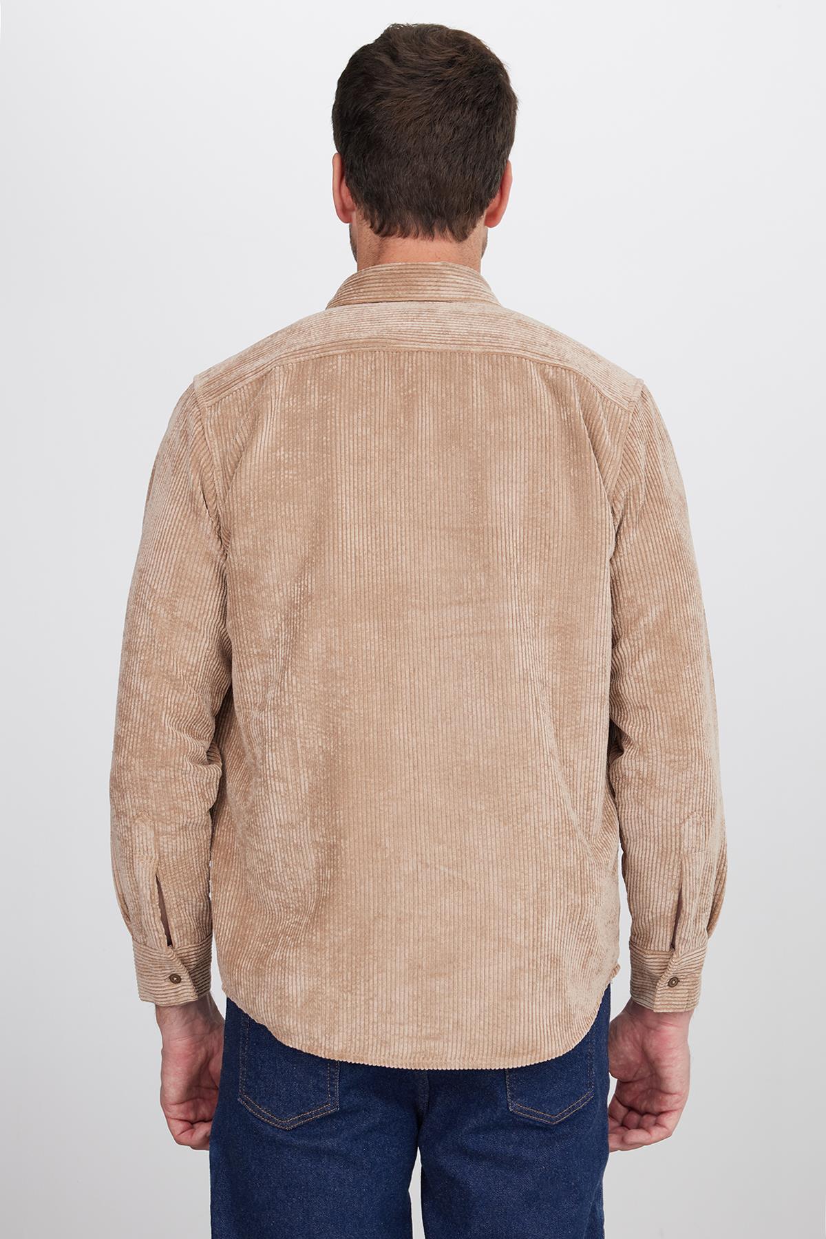 Erkek Regular Fit Rahat Kesim Fitilli Kadife Görünüm Düğmeli Yaka Açık Kahve Ceket Gömlek (RG250016-L39)