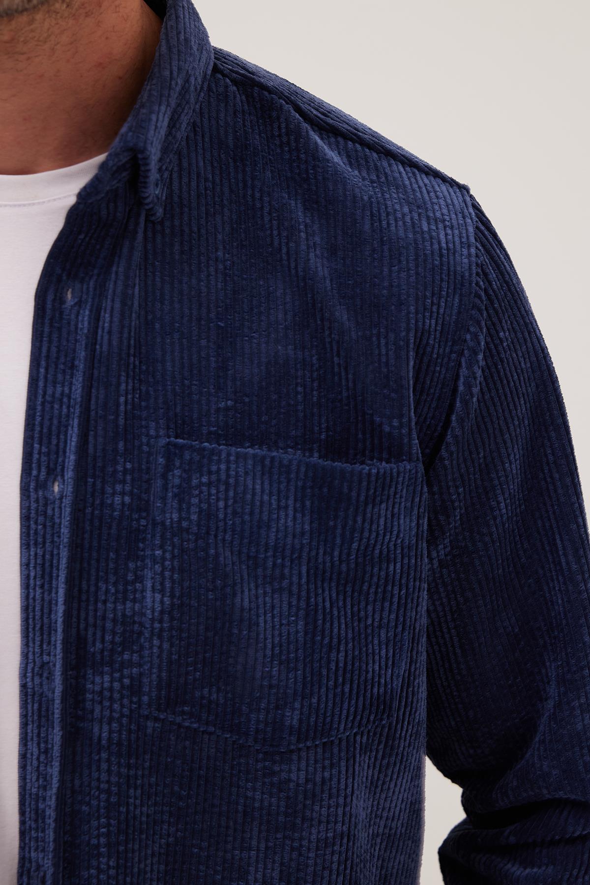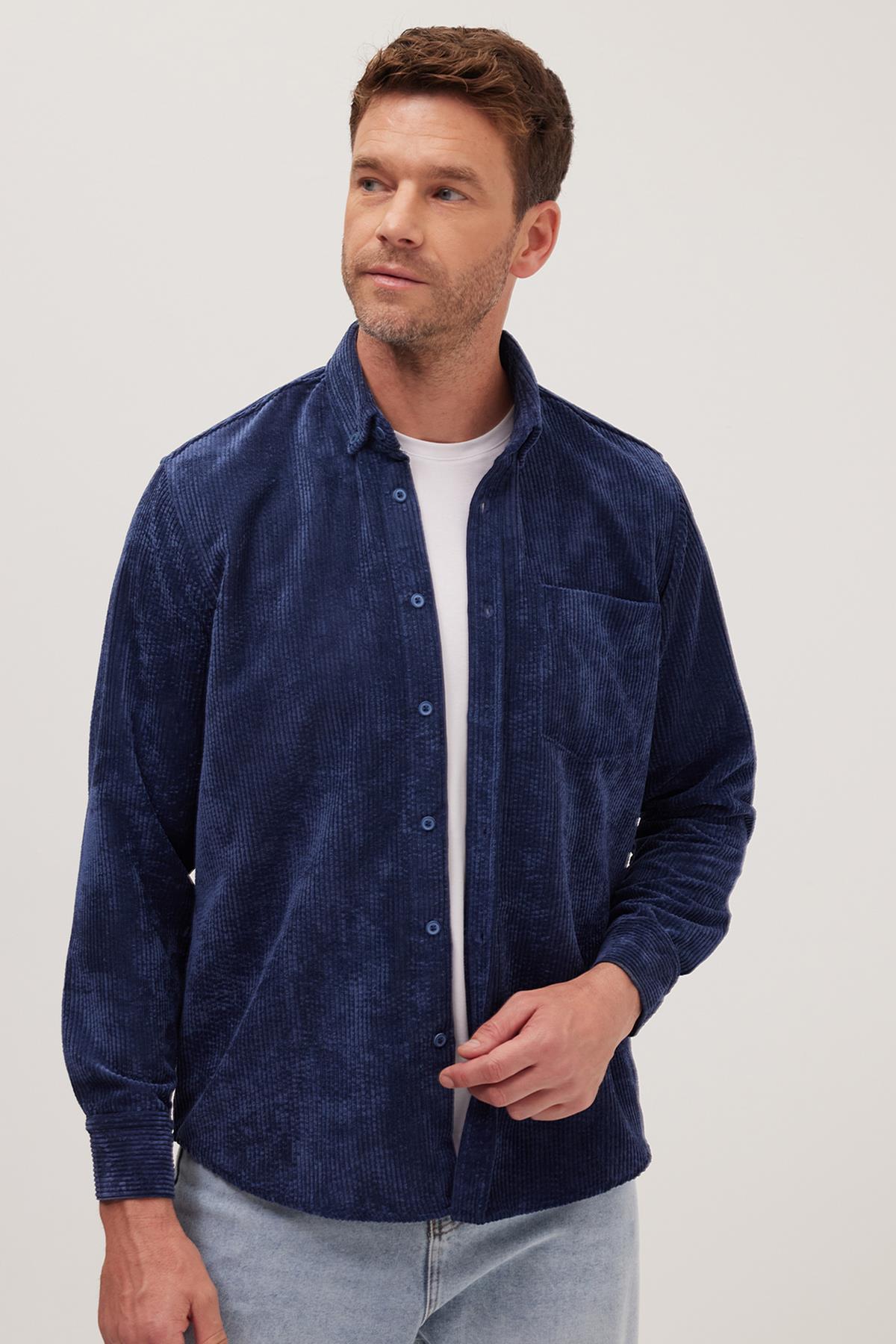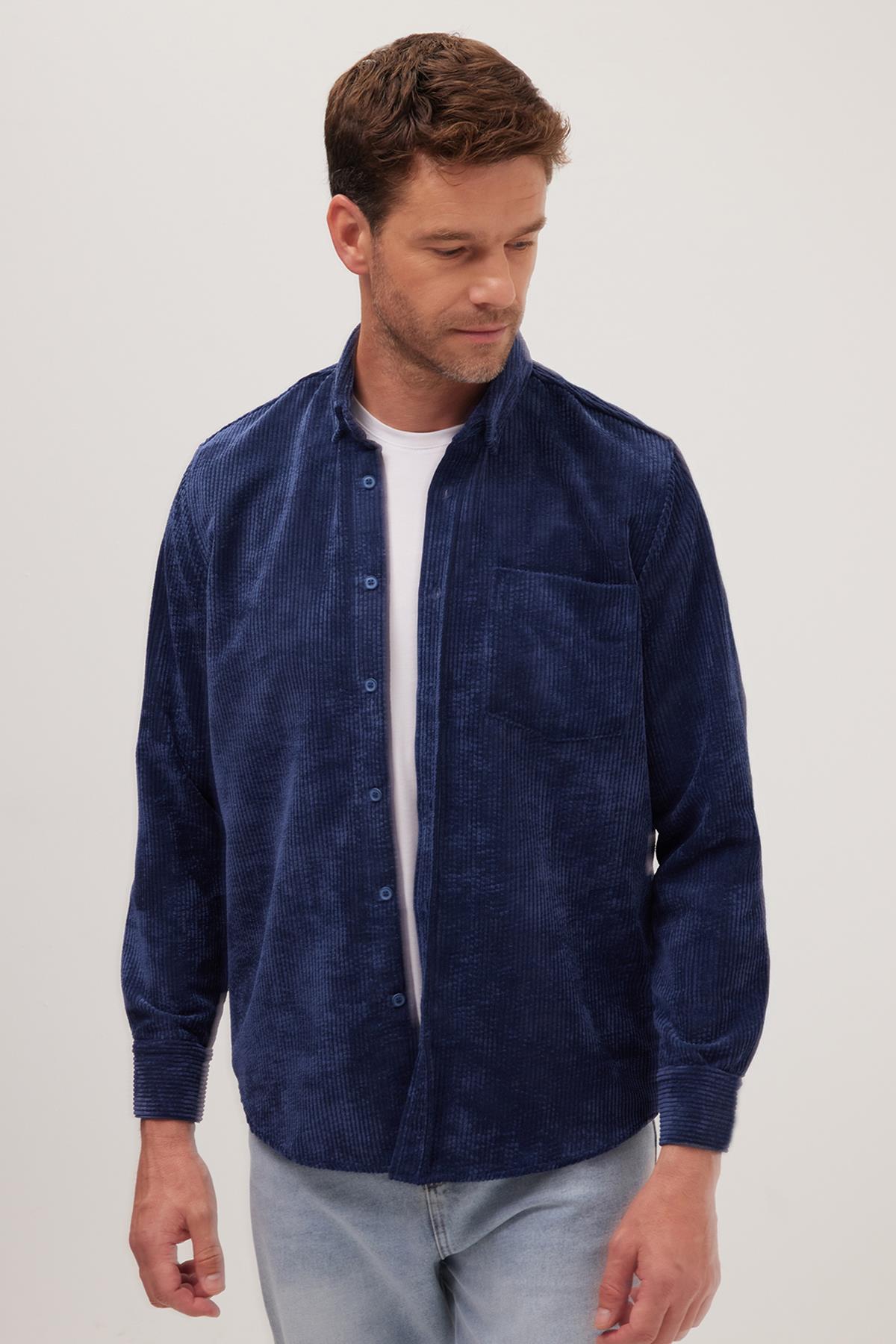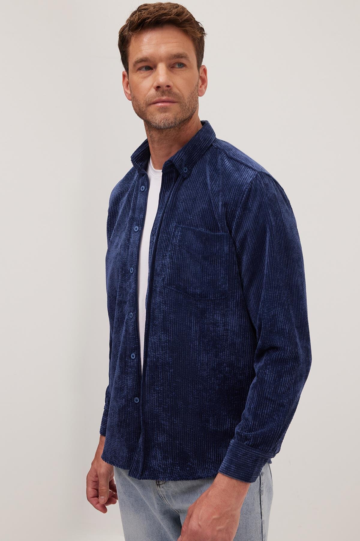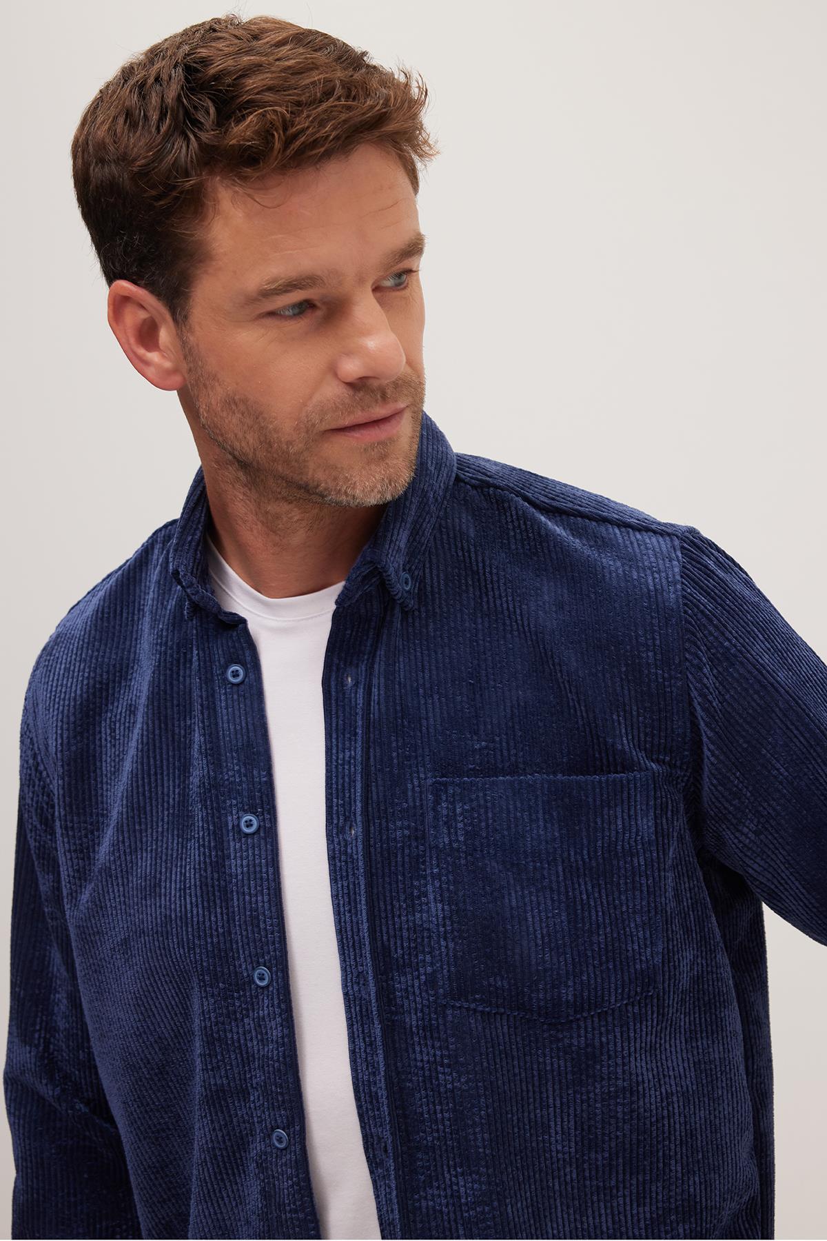 Erkek Regular Fit Rahat Kesim Fitilli Kadife Görünüm Düğmeli Yaka İndigo Ceket Gömlek