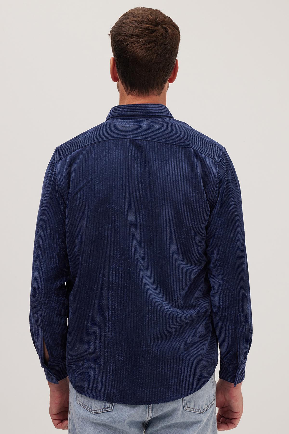 Erkek Regular Fit Rahat Kesim Fitilli Kadife Görünüm Düğmeli Yaka İndigo Ceket Gömlek (RG250016-000)