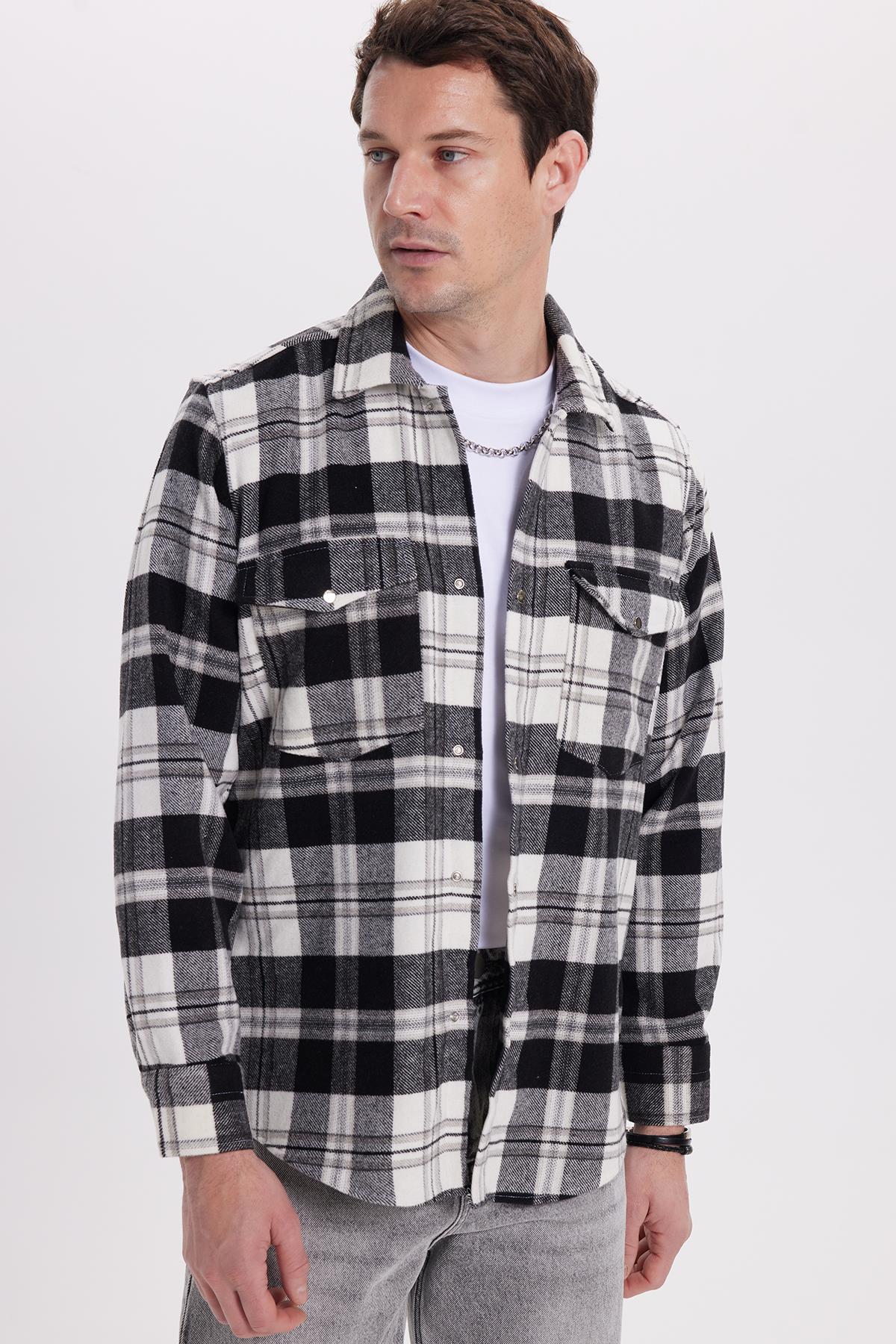 Erkek Regular Fit Rahat Kesim Kışlık Kareli Çift Cepli Çıtçıtlı Gömlek (RG250018-1050)