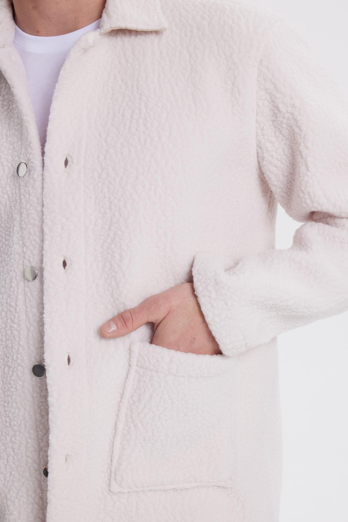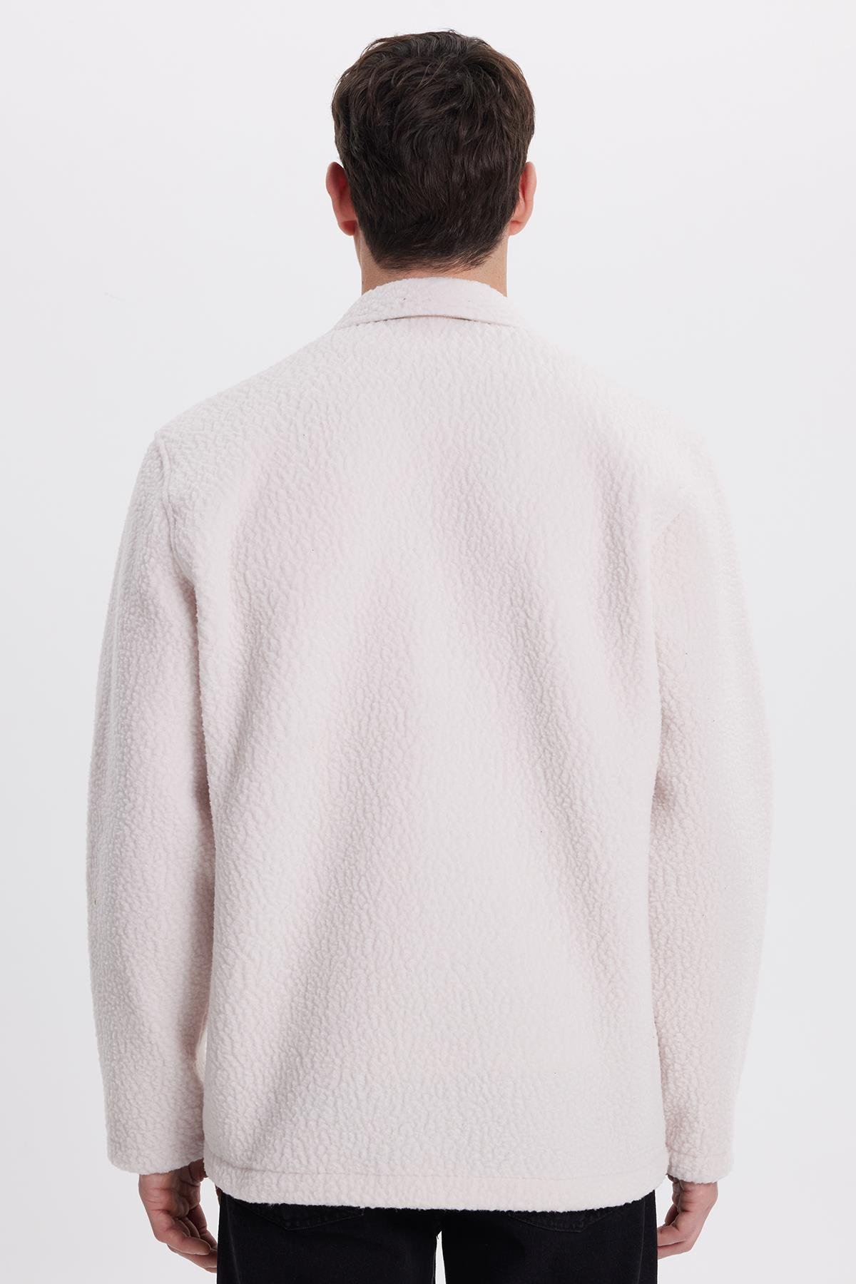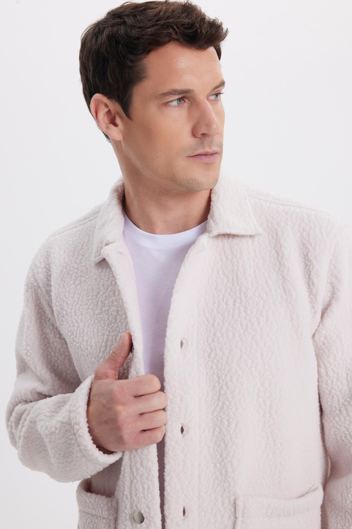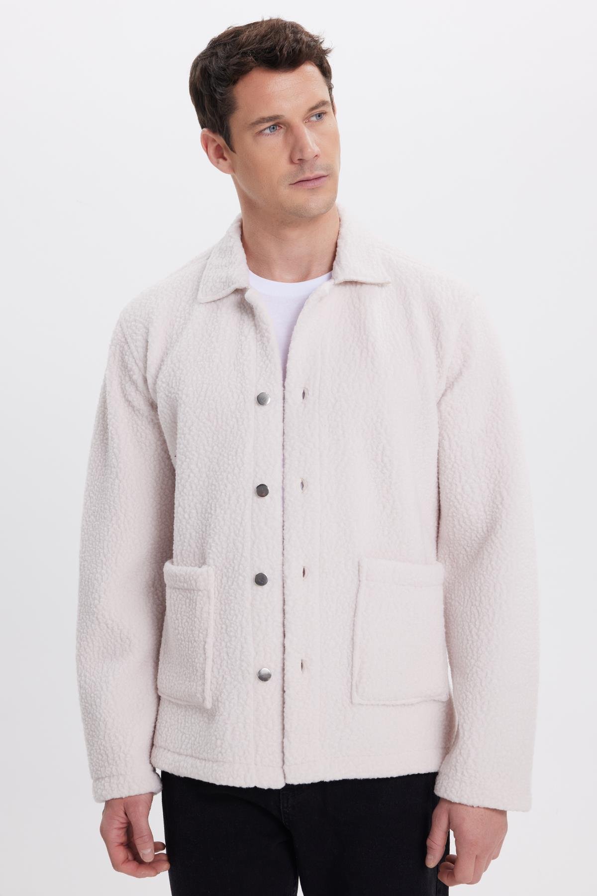 Erkek Regular Fit Rahat Kesim Peluş Çıtçıtlı Torbalı Çift Cepli Ekru Ceket Gömlek