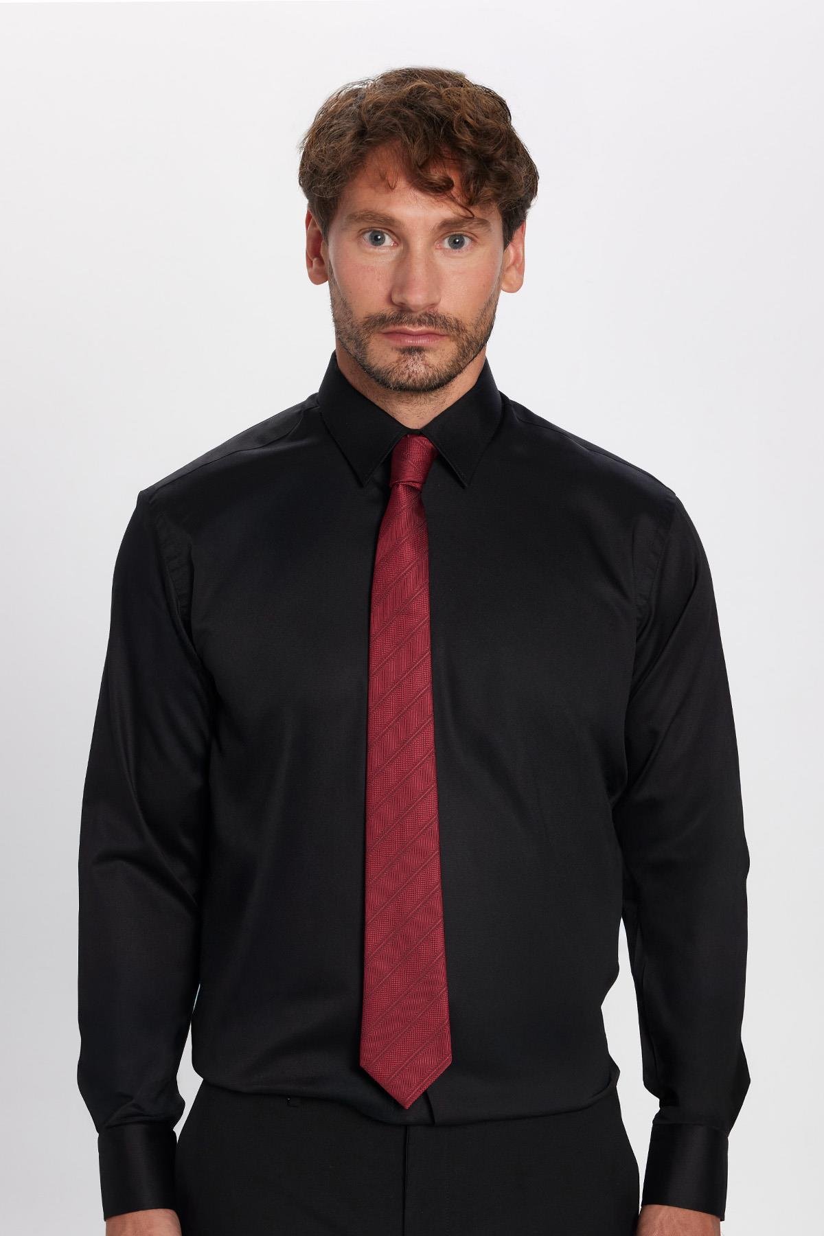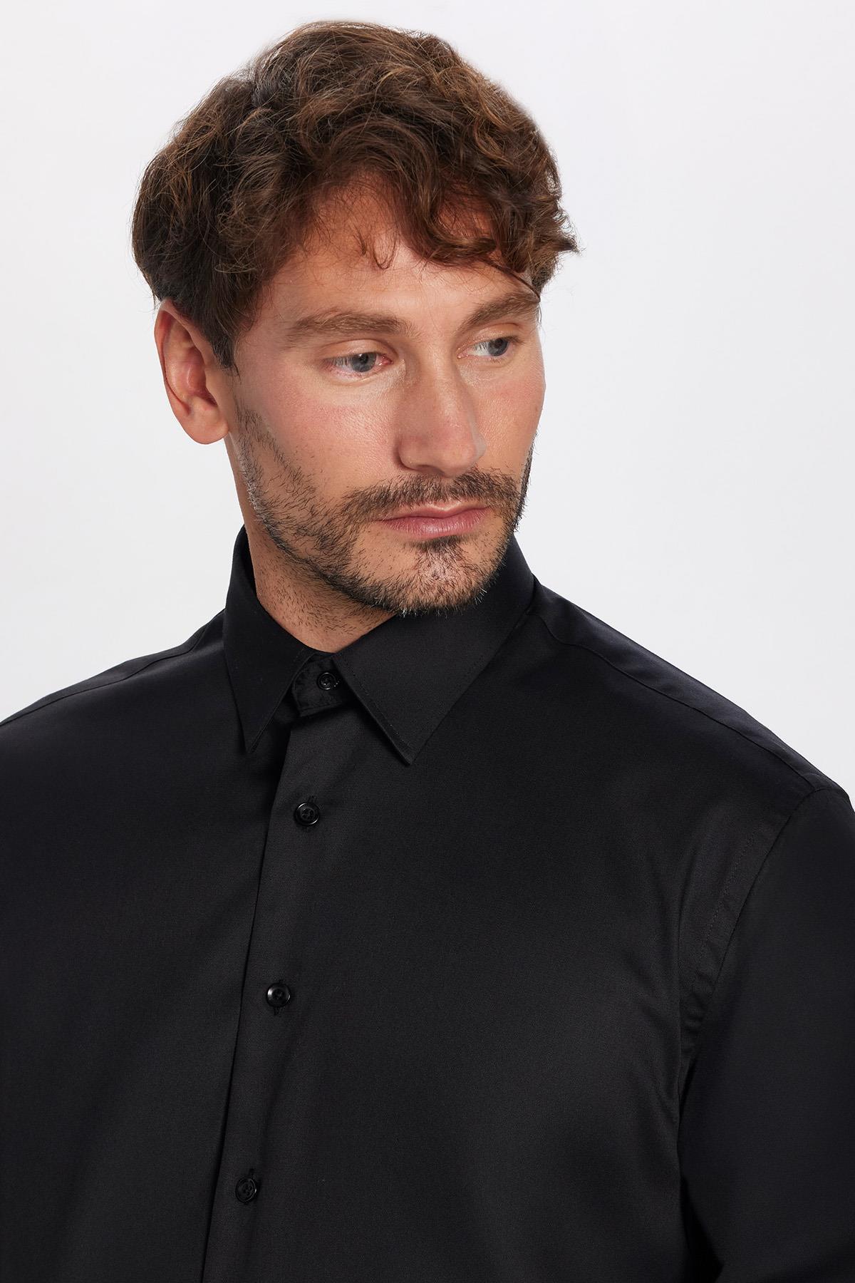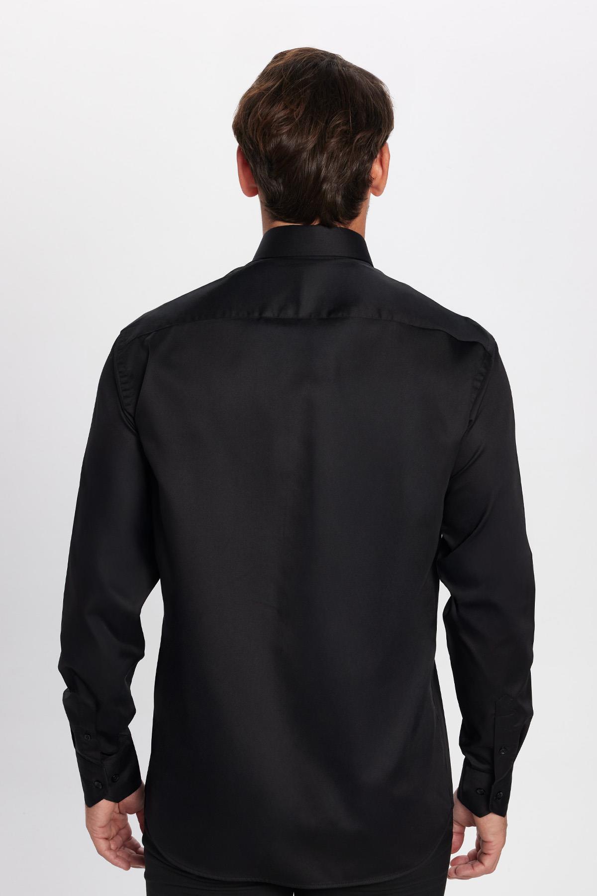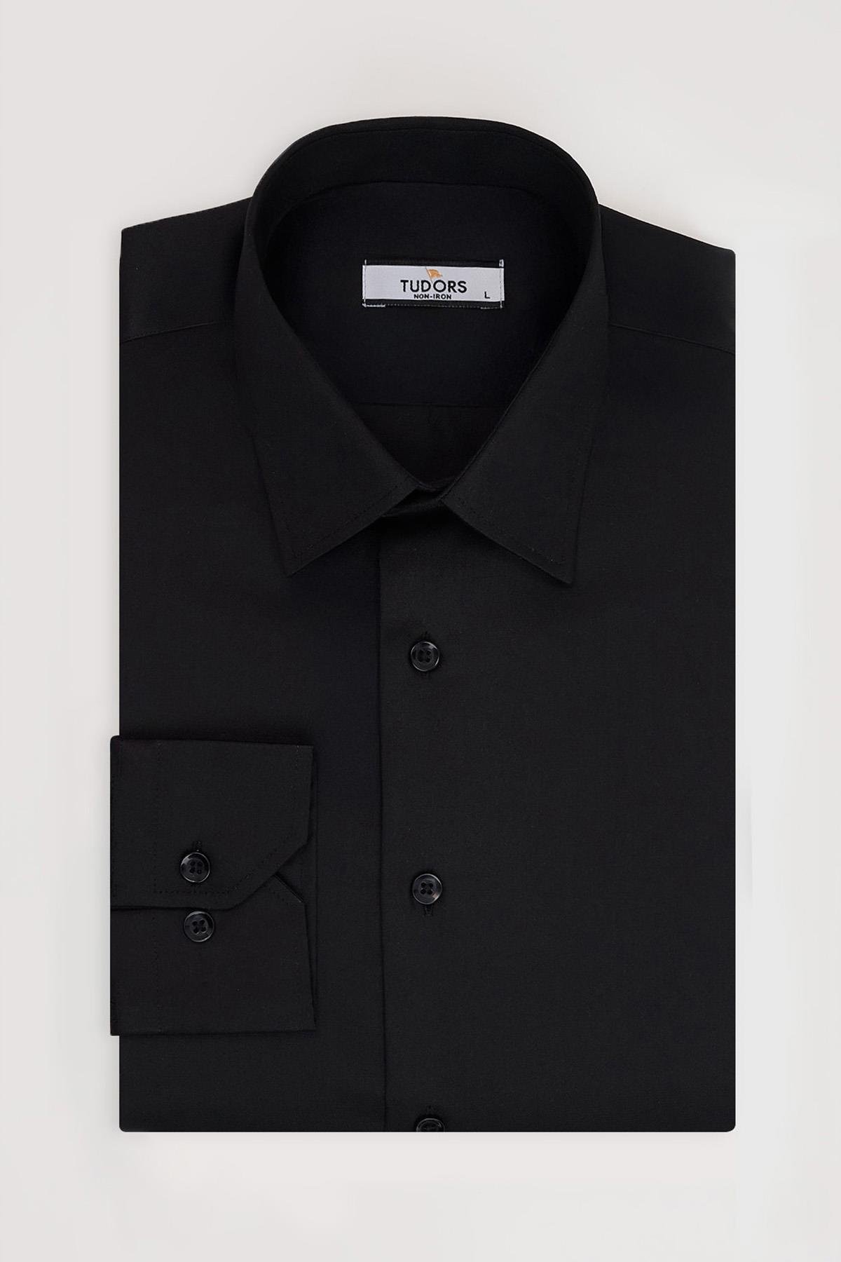 Erkek Regular Fit Siyah Non-Iron Pamuklu Doğa Dostu Ekoteks Belgeli Ütü Gerektirmez Gömlek
