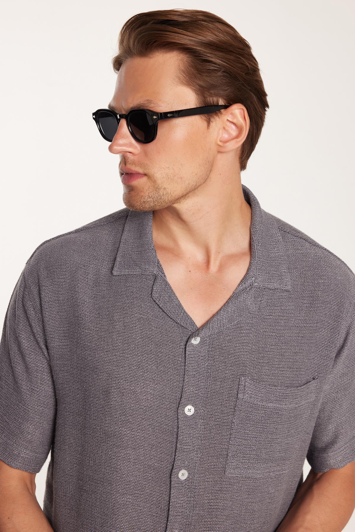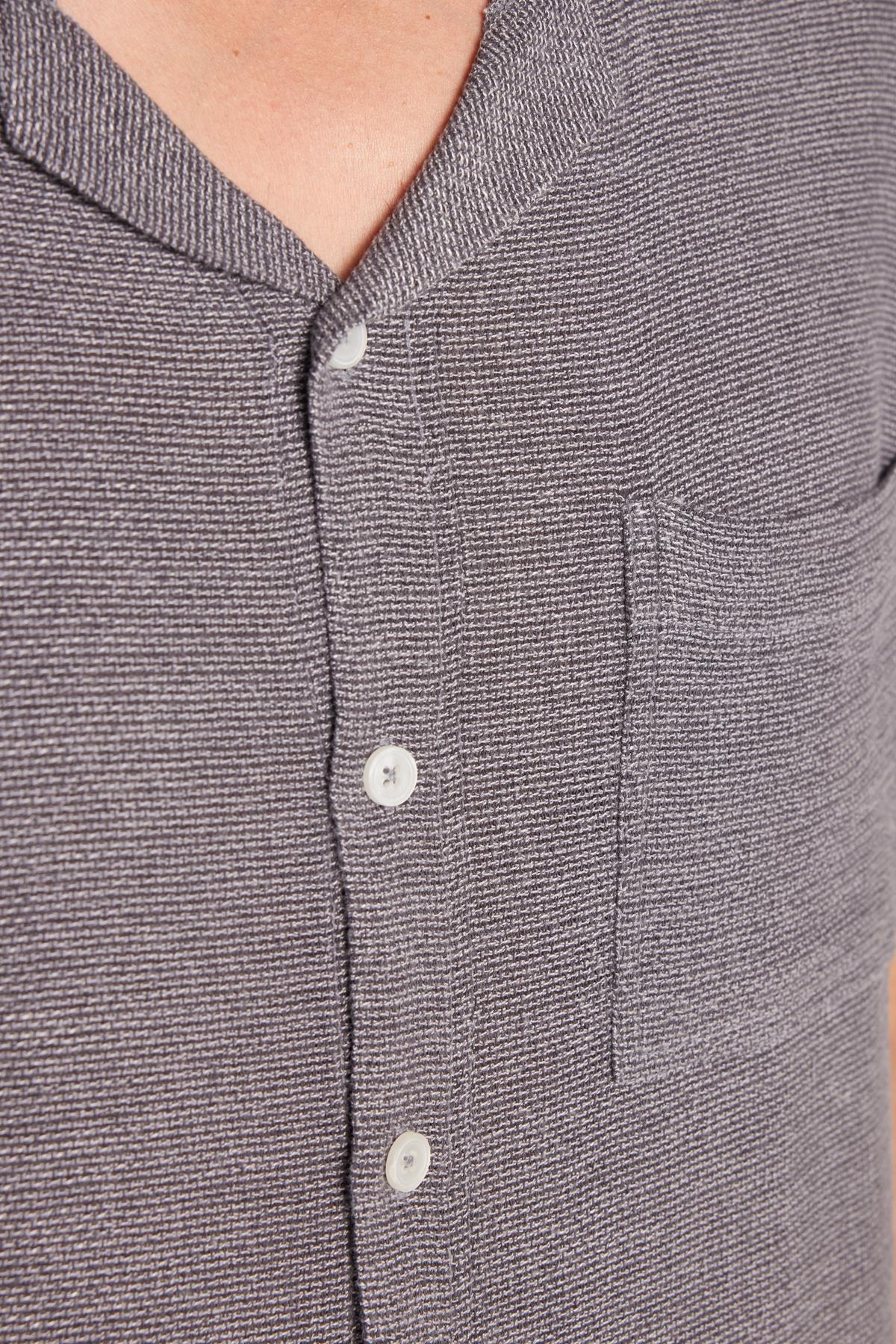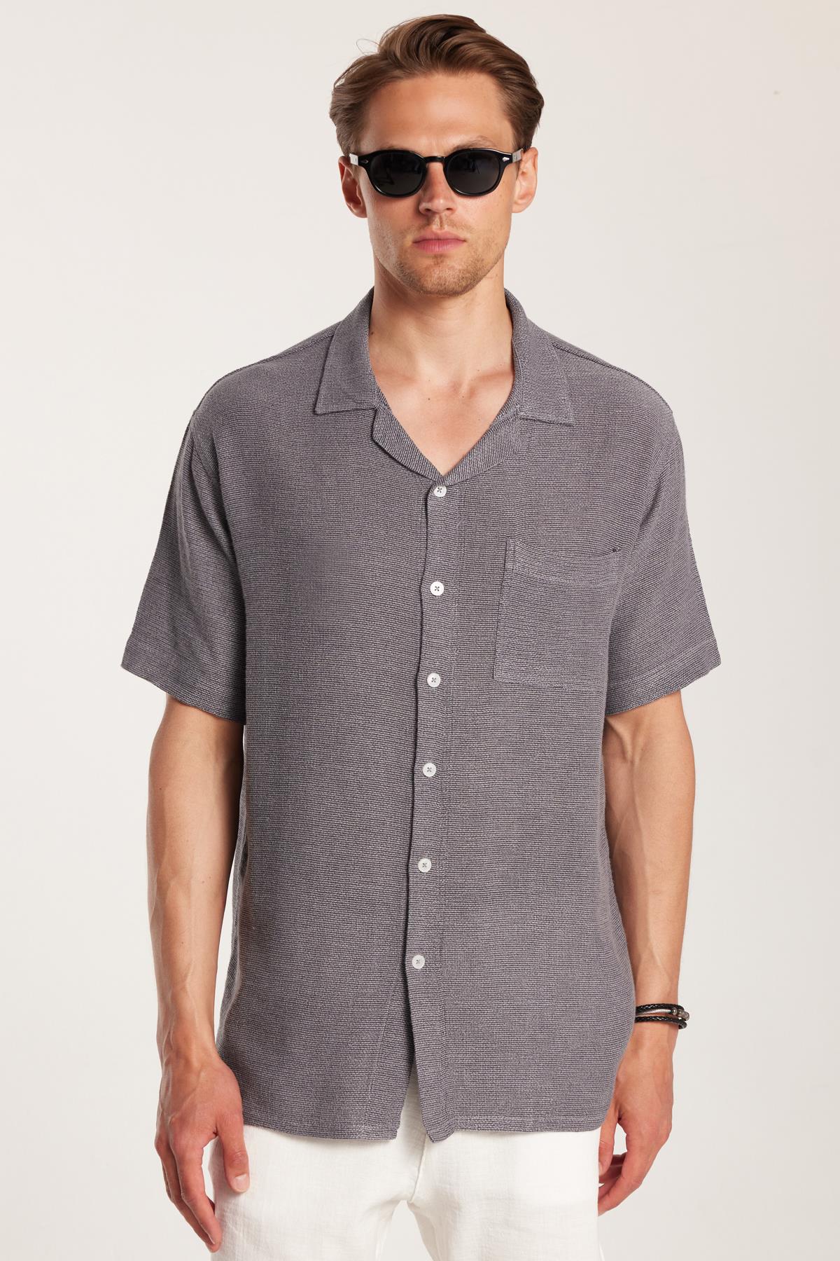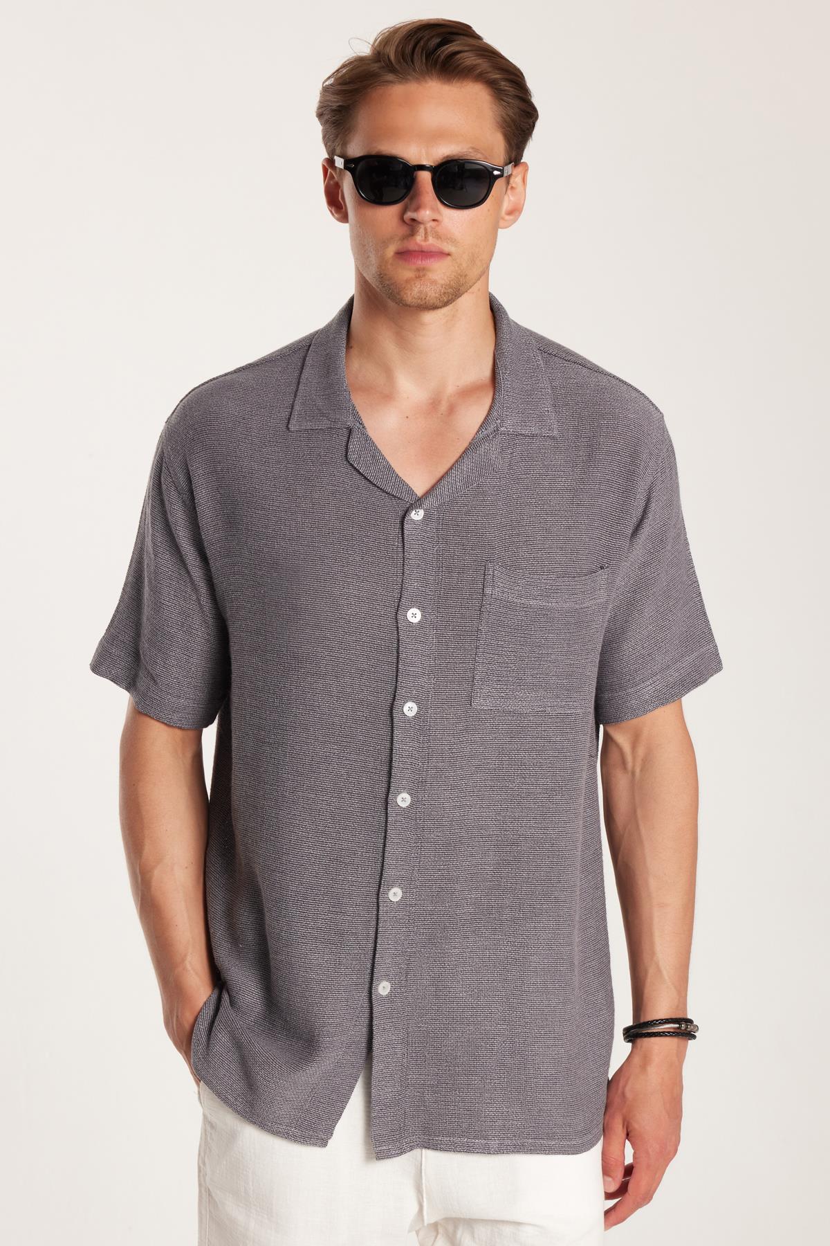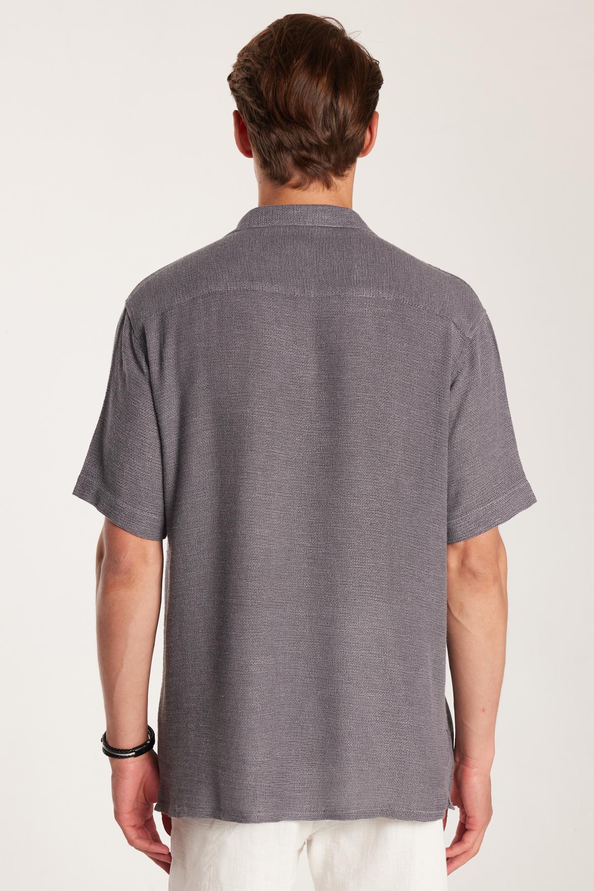 Erkek Relax Fit Apaş Yaka Rustik Kumaş Viskon Pamuk Yandan Açmalı Cepli Rahat Kesim Gri Gömlek