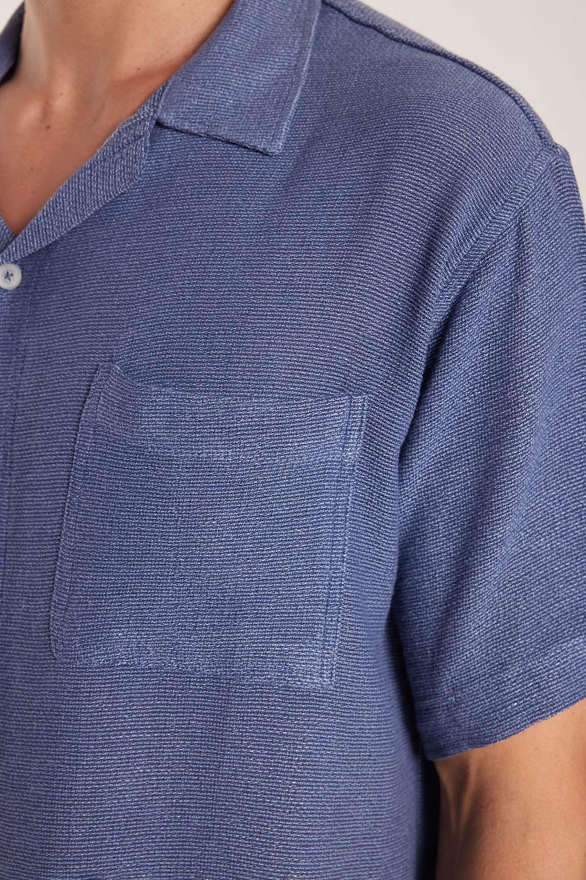 Erkek Relax Fit Apaş Yaka Rustik Kumaş Viskon Pamuk Yandan Açmalı Cepli Rahat Kesim Mavi Gömlek (RF250033-22)