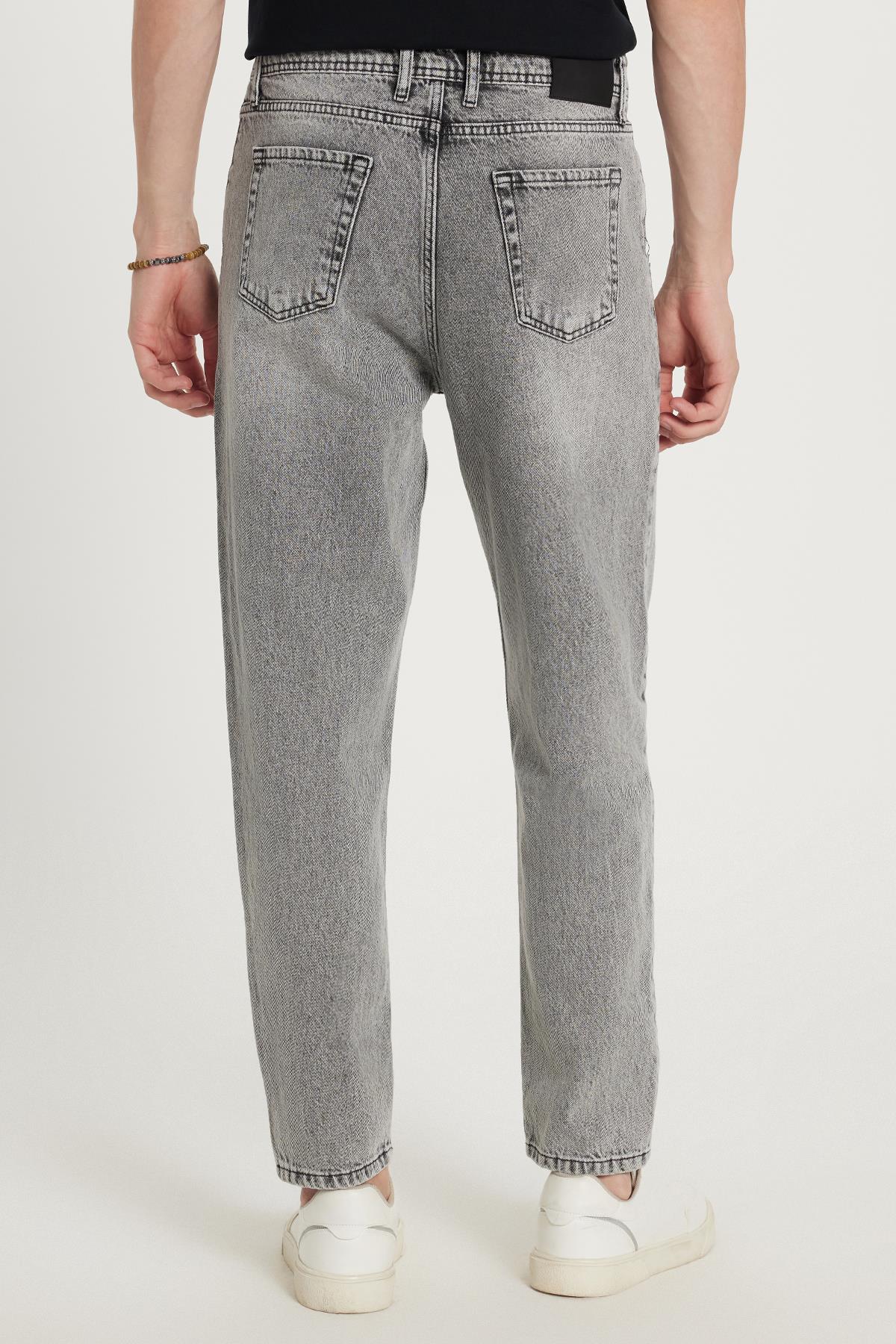 Erkek Relax Fit Geniş Kesim Boru Paça Yıkamalı Taşlamalı Boyfriend Esnek Gri Jean Kot Pantolon (PN250006-1905)