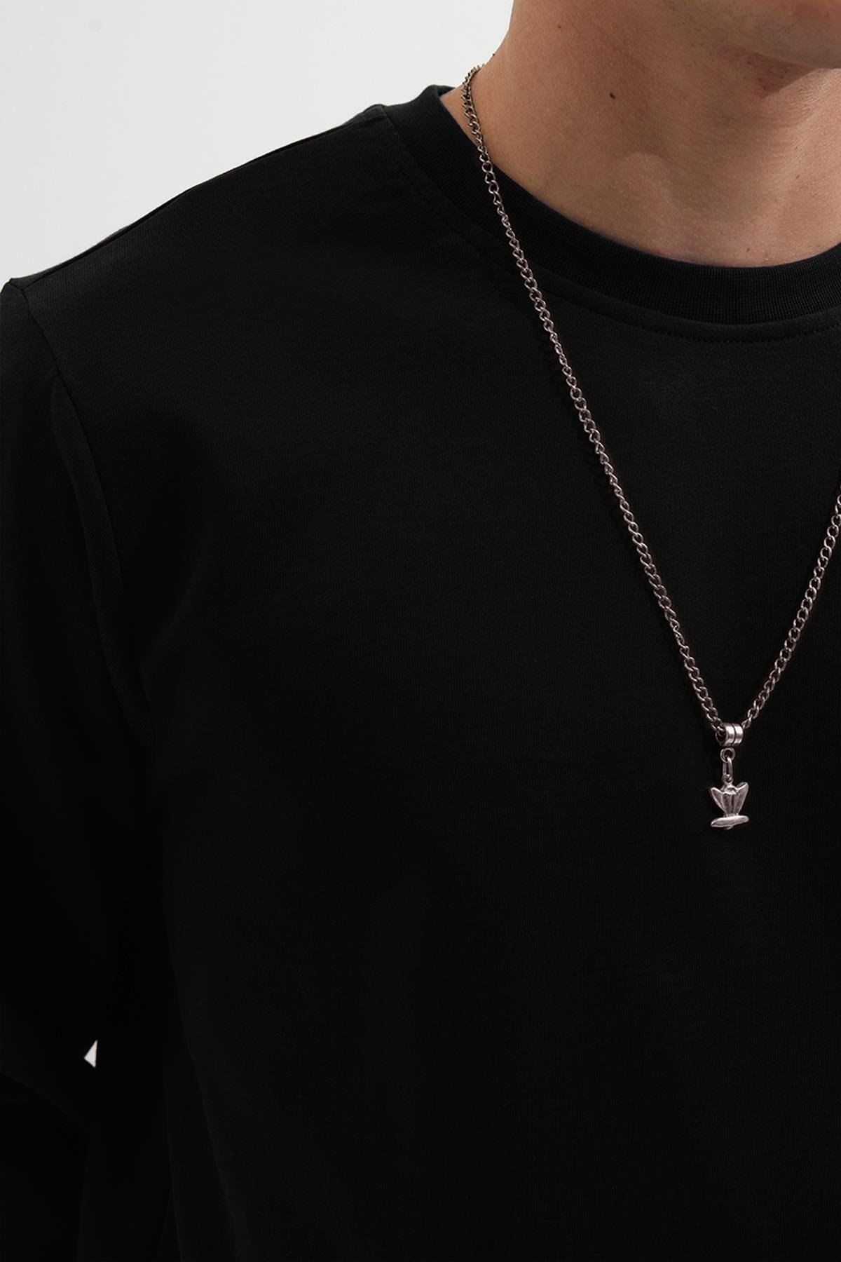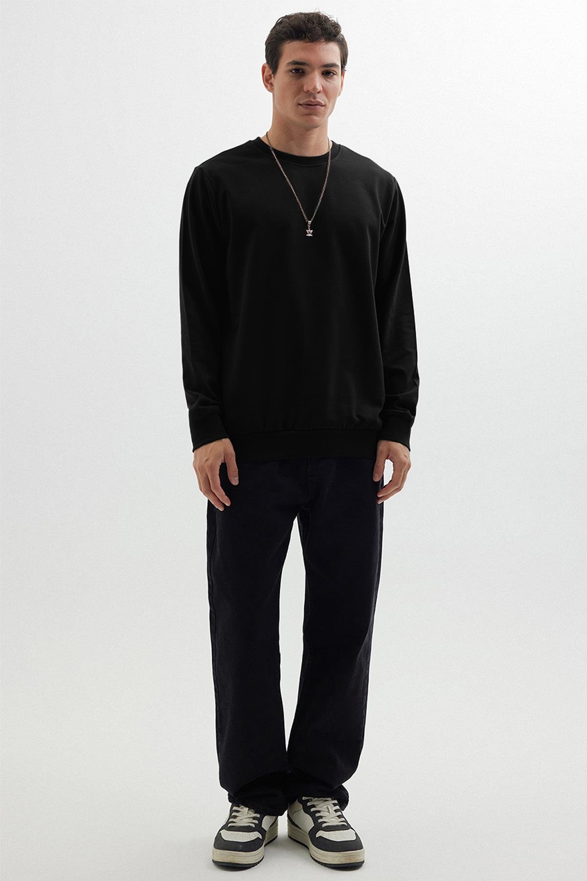 Erkek Relax Fit Rahat Kesim %100 Pamuk 2 İplik Bisiklet Yaka Siyah Sweatshirt (SW250013-02)