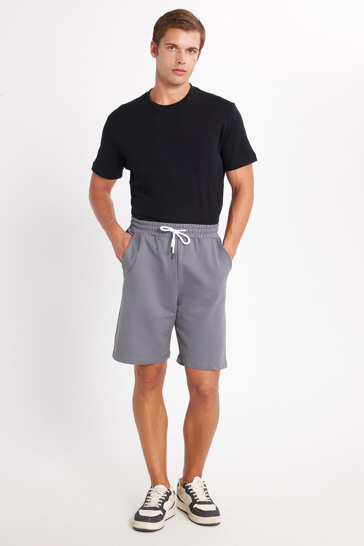 Erkek Relax Fit Rahat Kesim %100 Pamuk Beli Bağcıklı Gri Şort (SRT25006-79)