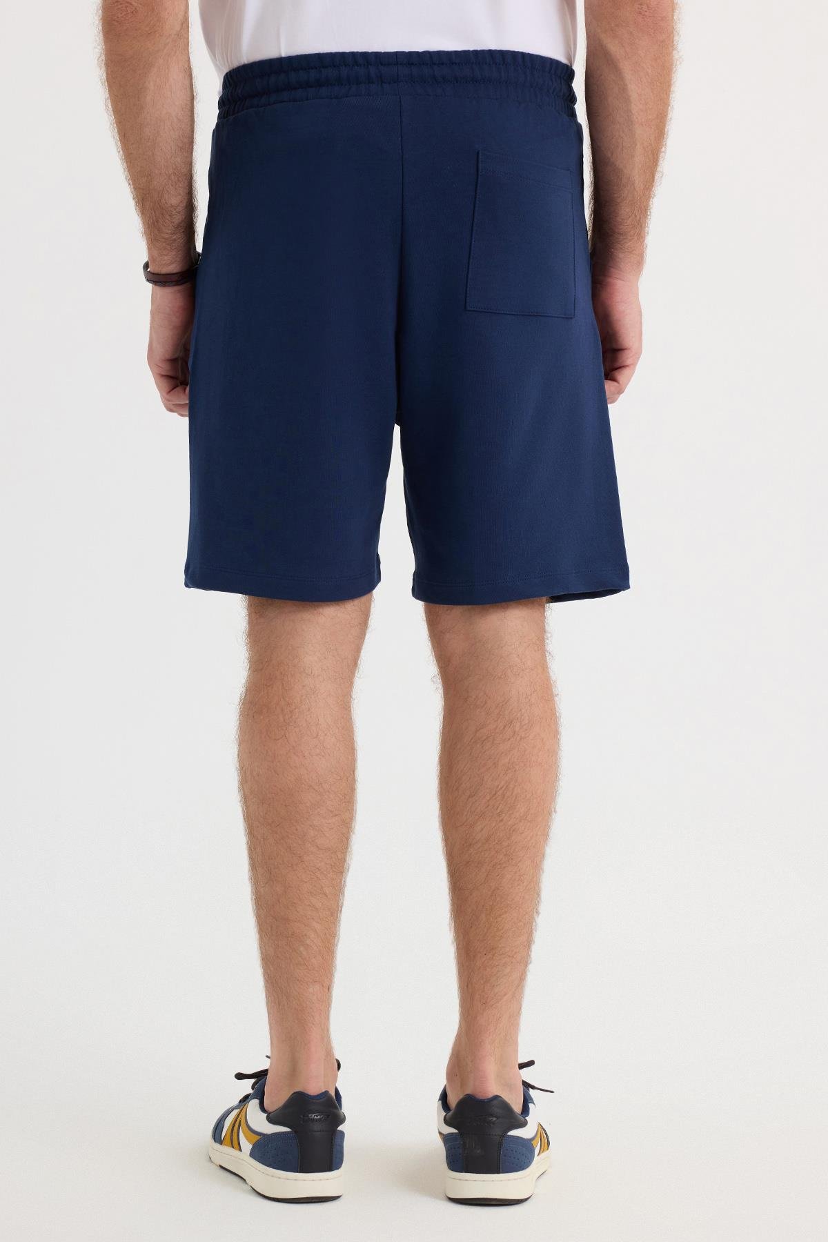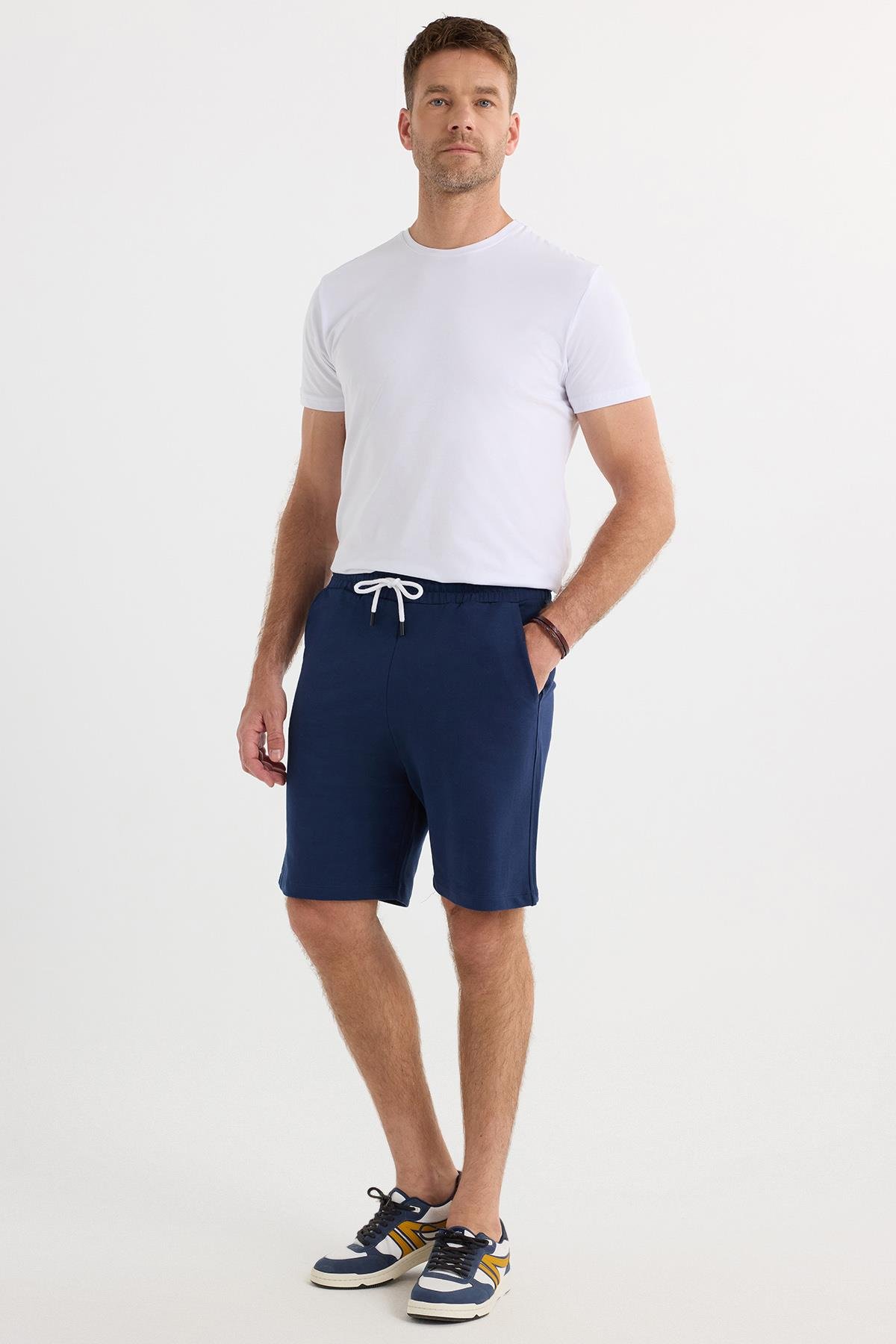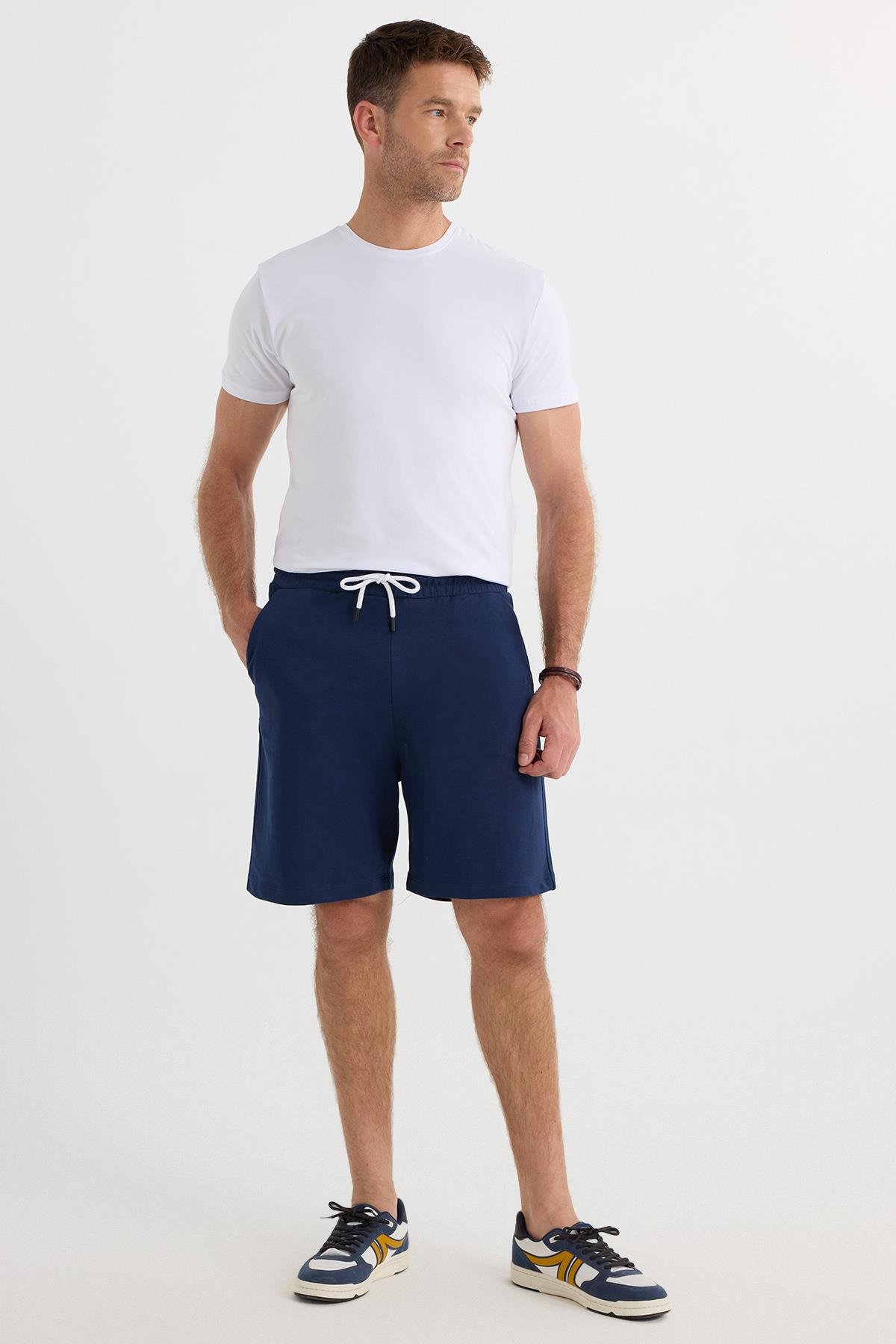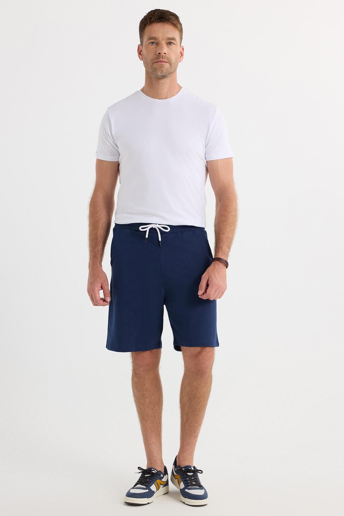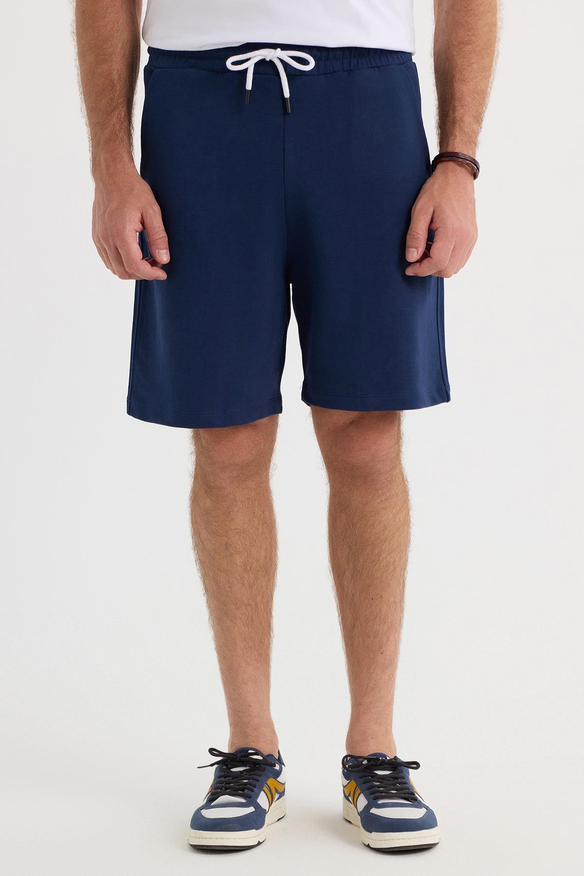 Erkek Relax Fit Rahat Kesim %100 Pamuk Beli Bağcıklı Lacivert Şort