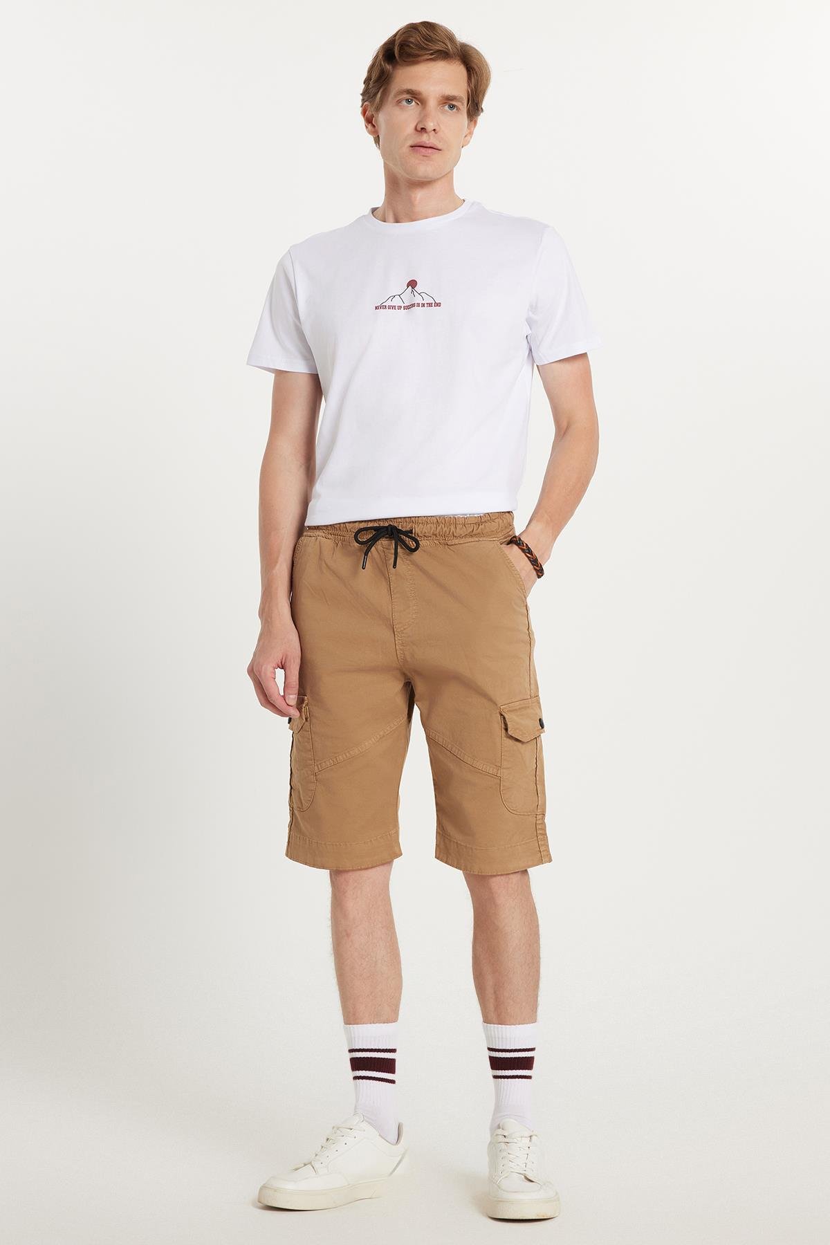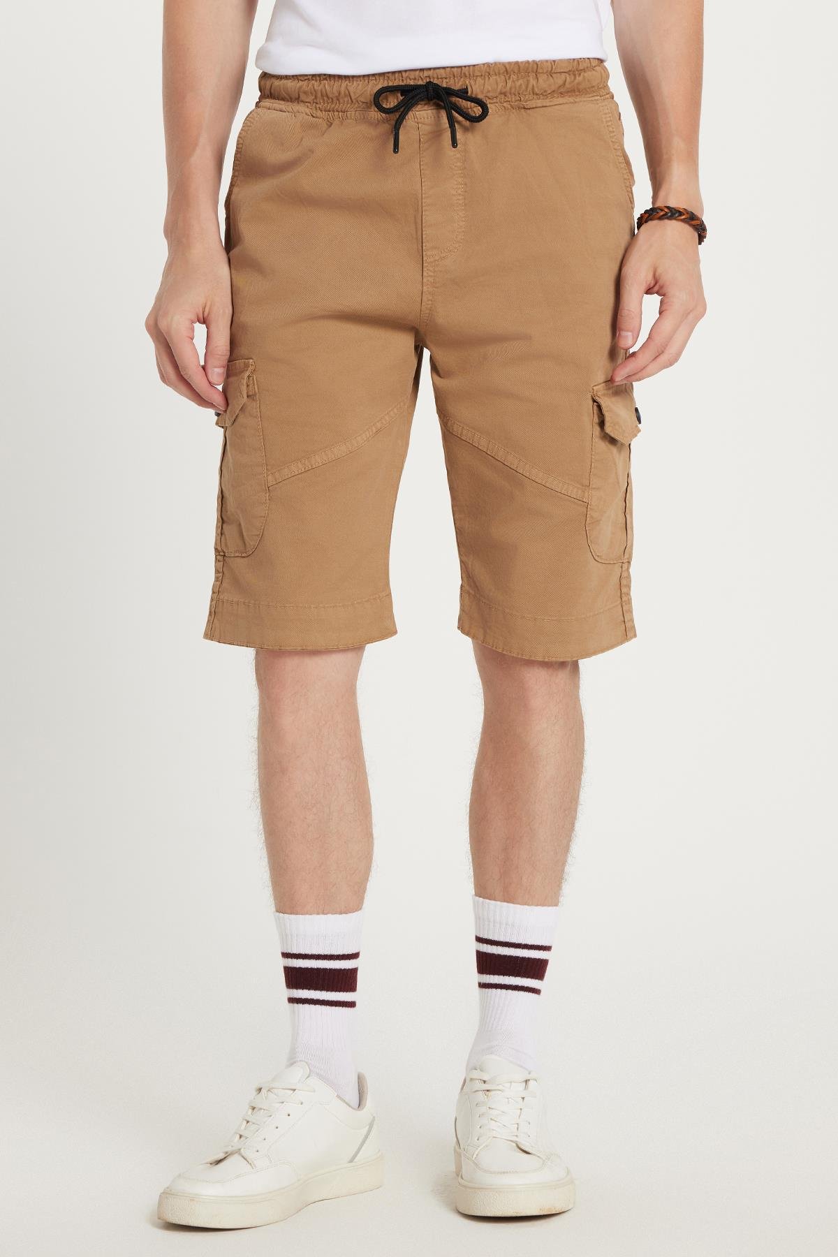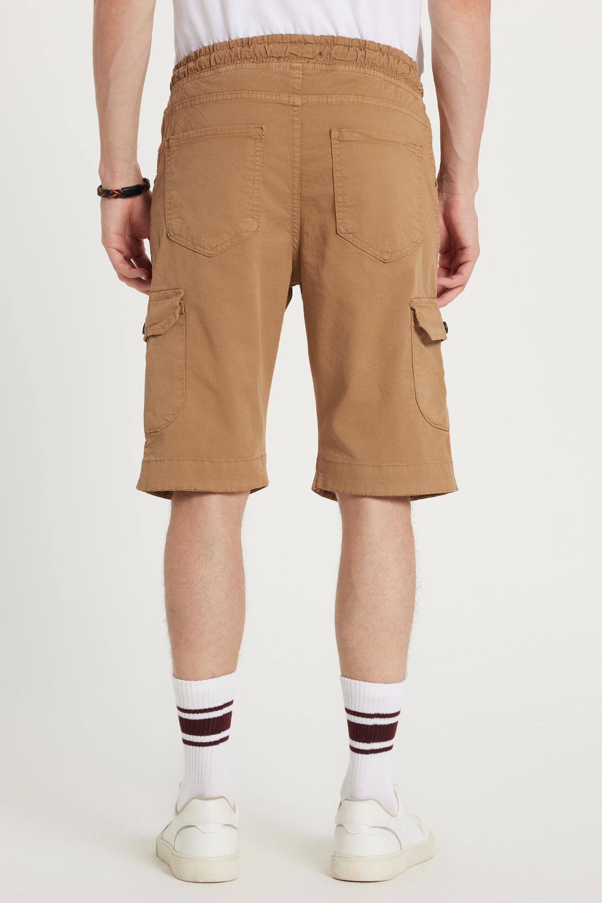 Erkek Relax Fit Rahat Kesim %100 Pamuk Kargo Cep Camel Kapri Şort (SRT25008-CML)