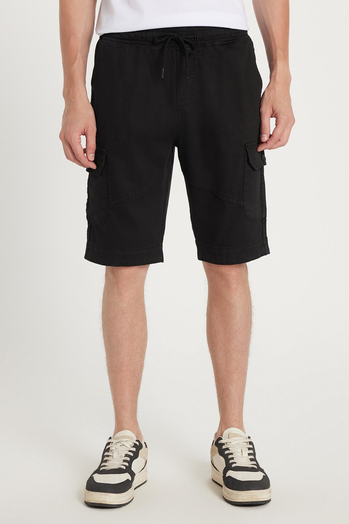 Erkek Relax Fit Rahat Kesim %100 Pamuk Kargo Cep Siyah Kapri Şort