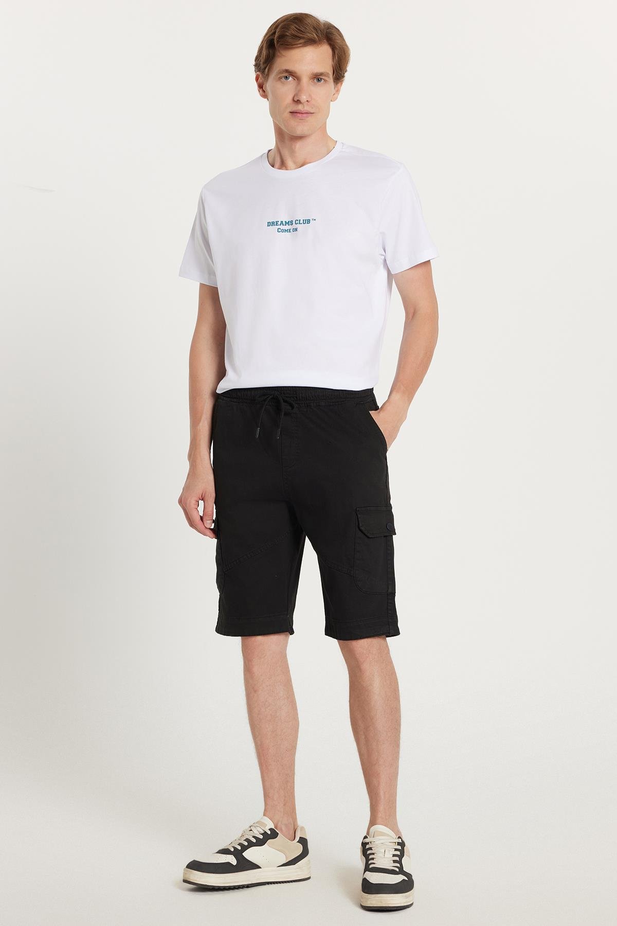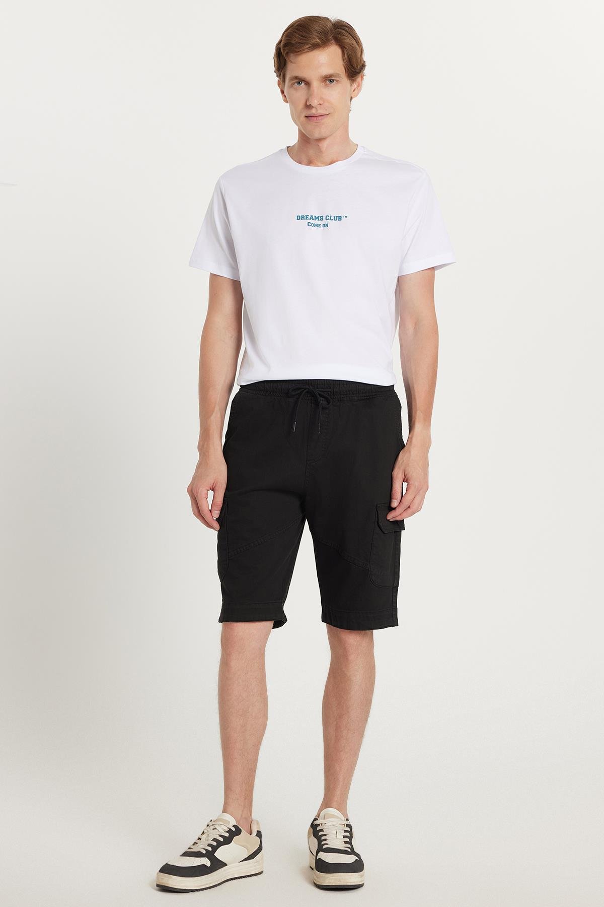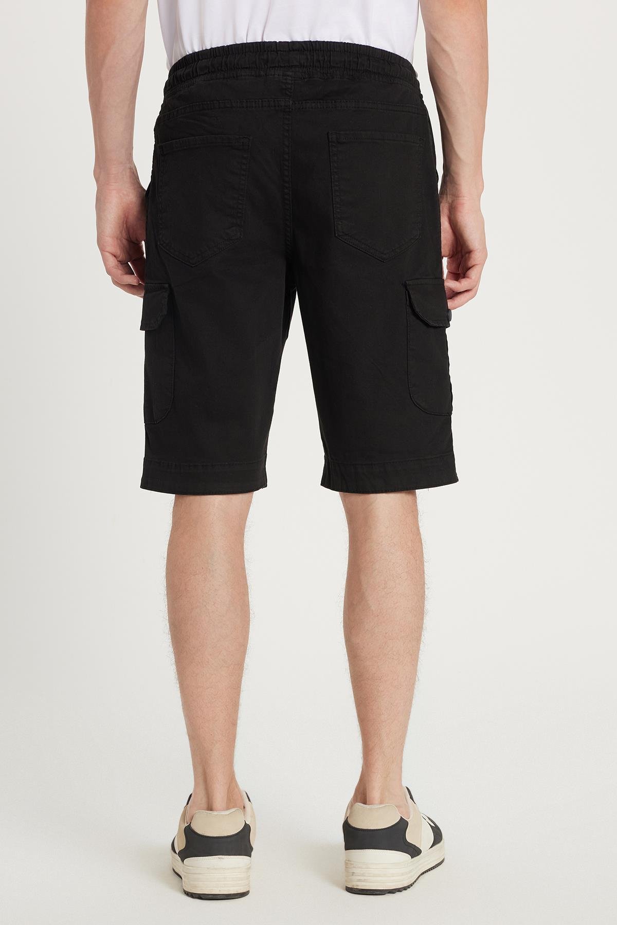 Erkek Relax Fit Rahat Kesim %100 Pamuk Kargo Cep Siyah Kapri Şort (SRT25008-02)