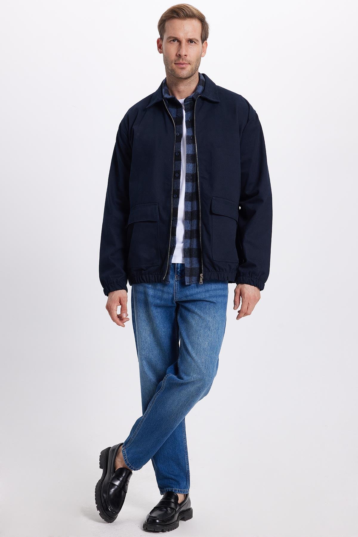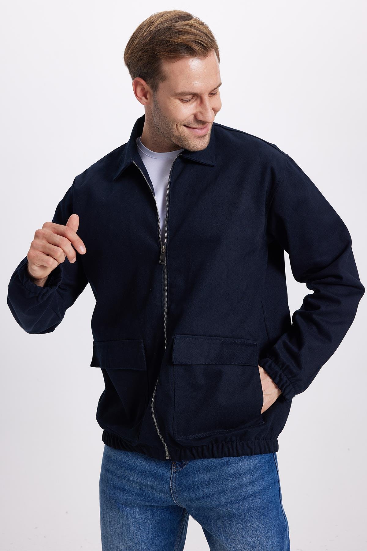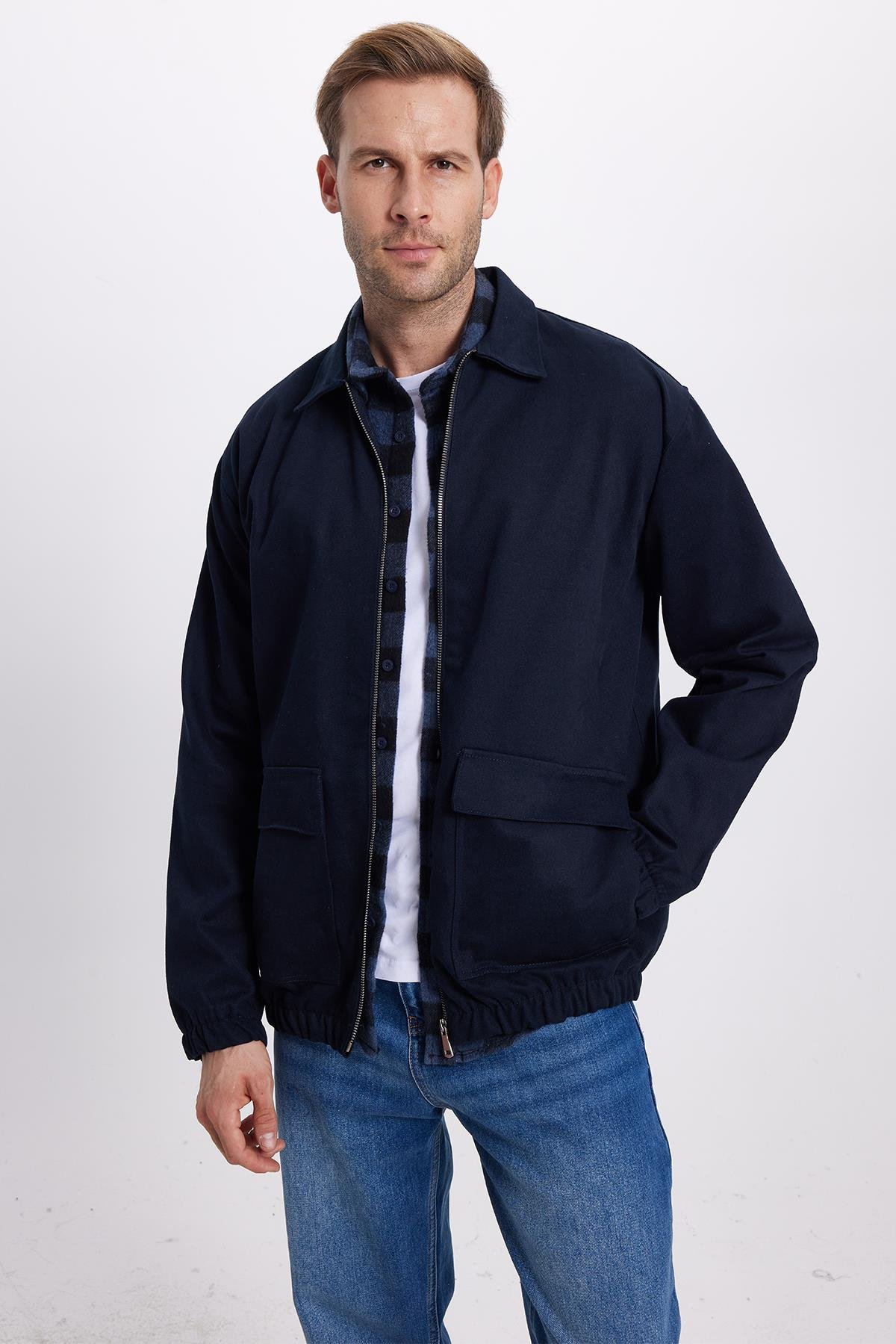 Erkek Relax Fit Rahat Kesim Çift Cep Kapaklı Fermuarlı Beli Lastikli Düz Lacivert Ceket Mont Gömlek (RF250069-47)