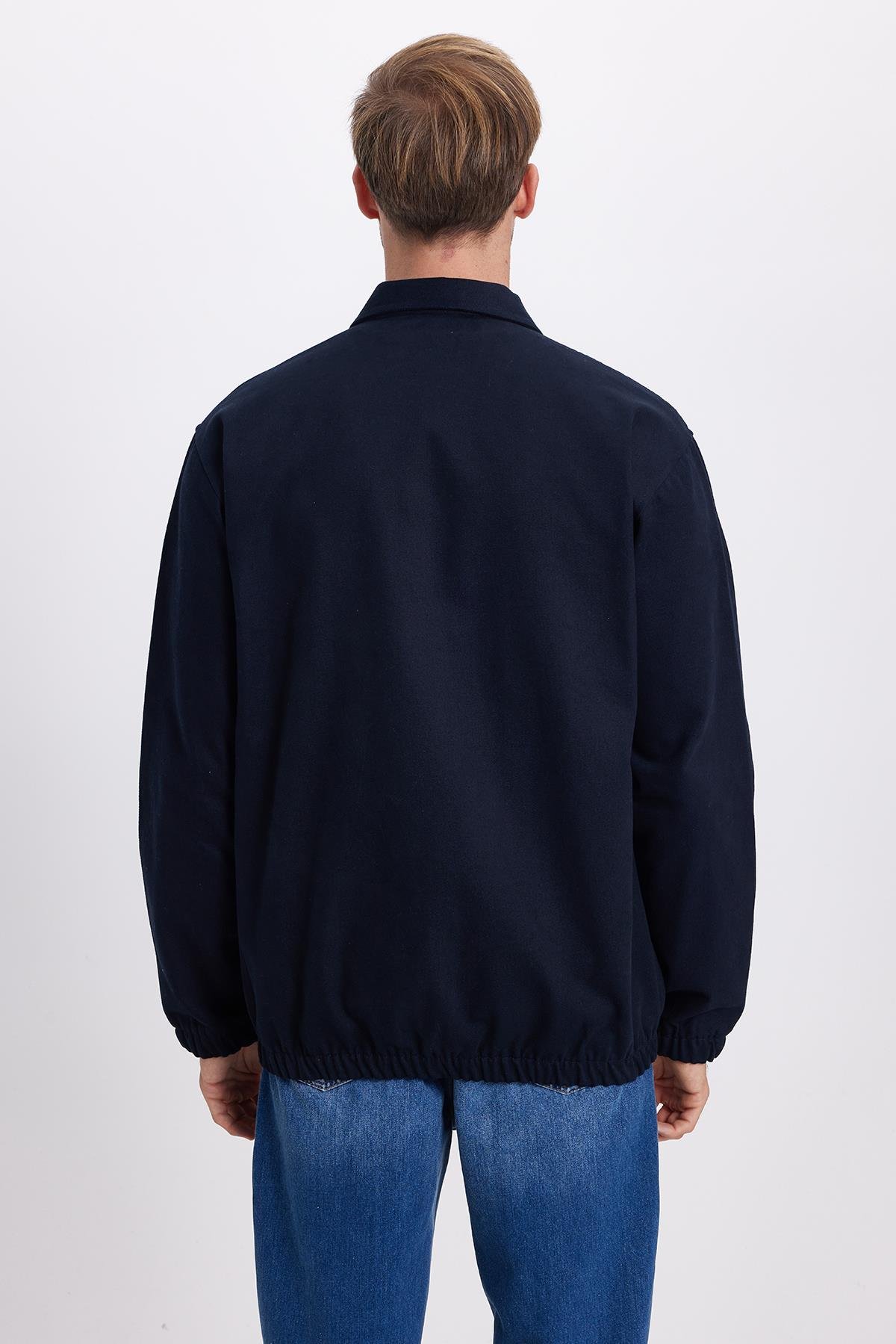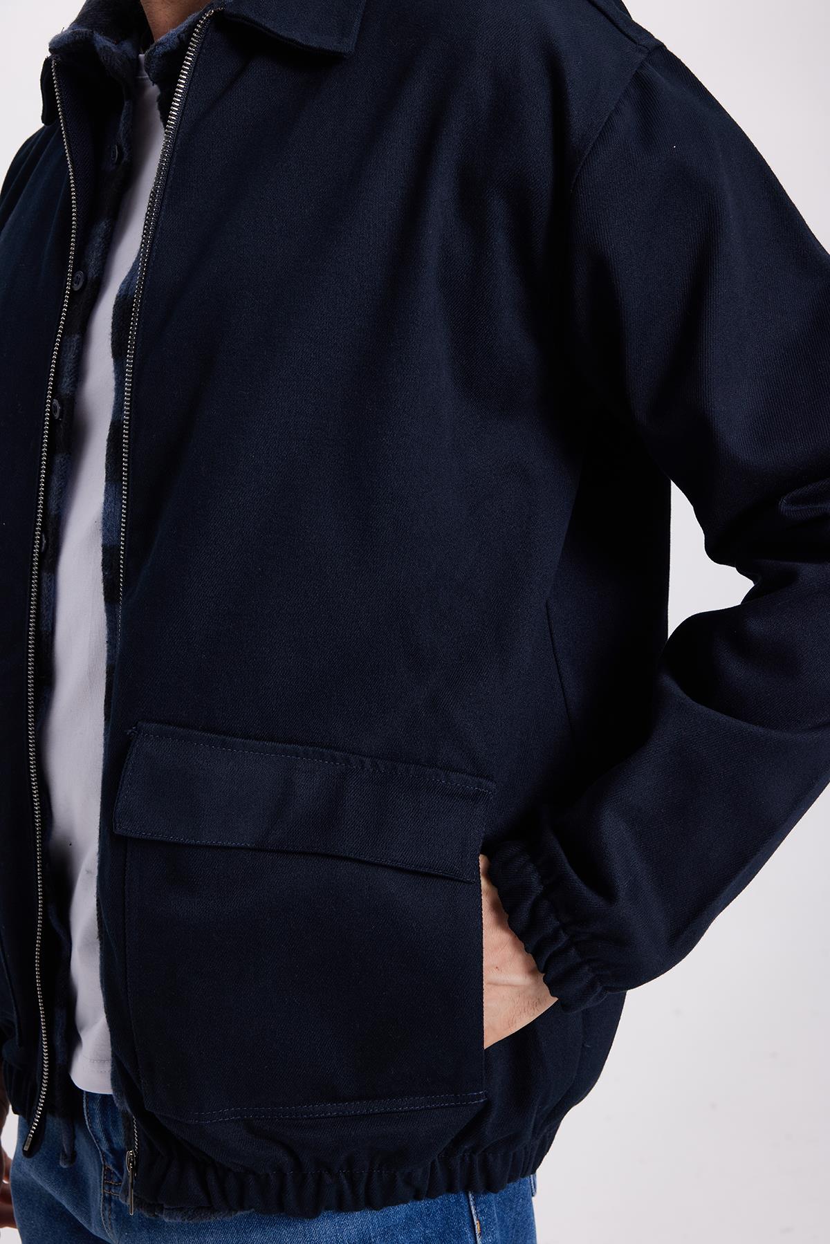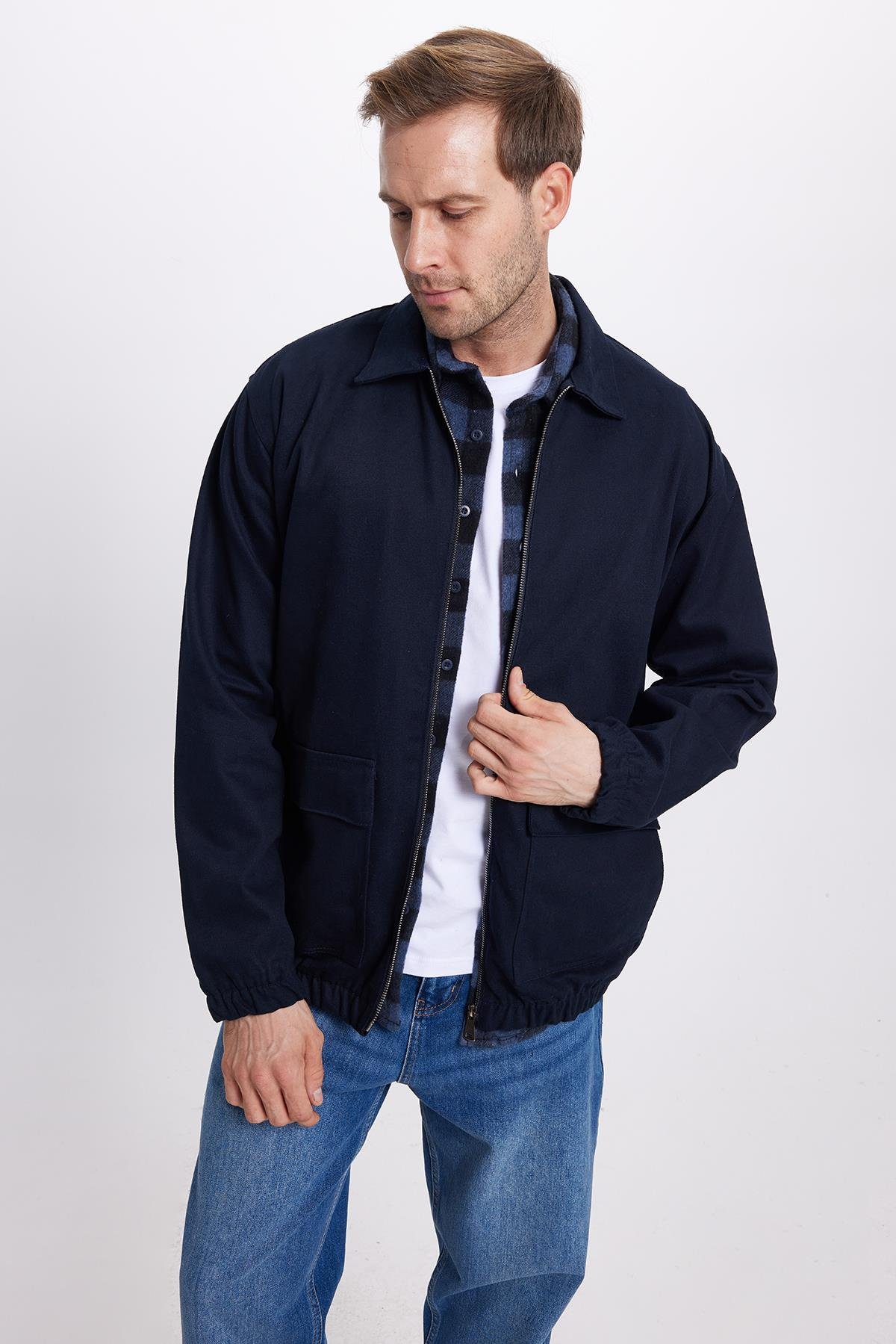 Erkek Relax Fit Rahat Kesim Çift Cep Kapaklı Fermuarlı Beli Lastikli Düz Lacivert Ceket Mont Gömlek (RF250069-47)