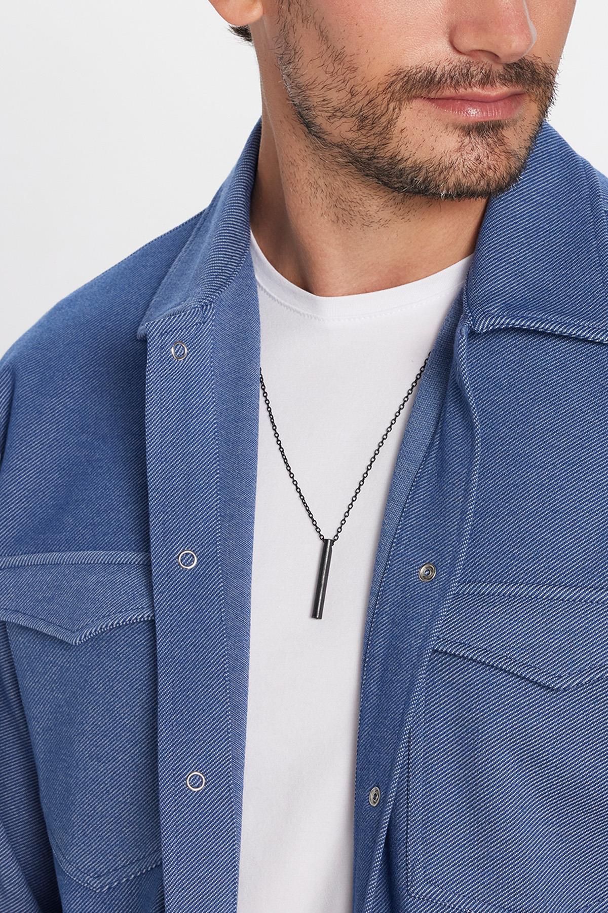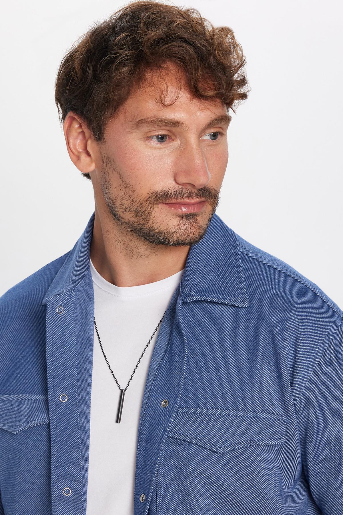 Erkek Relax Fit Rahat Kesim Çift Cepli Örme İndigo Apaş Yaka Gömlek (RF250030-000)