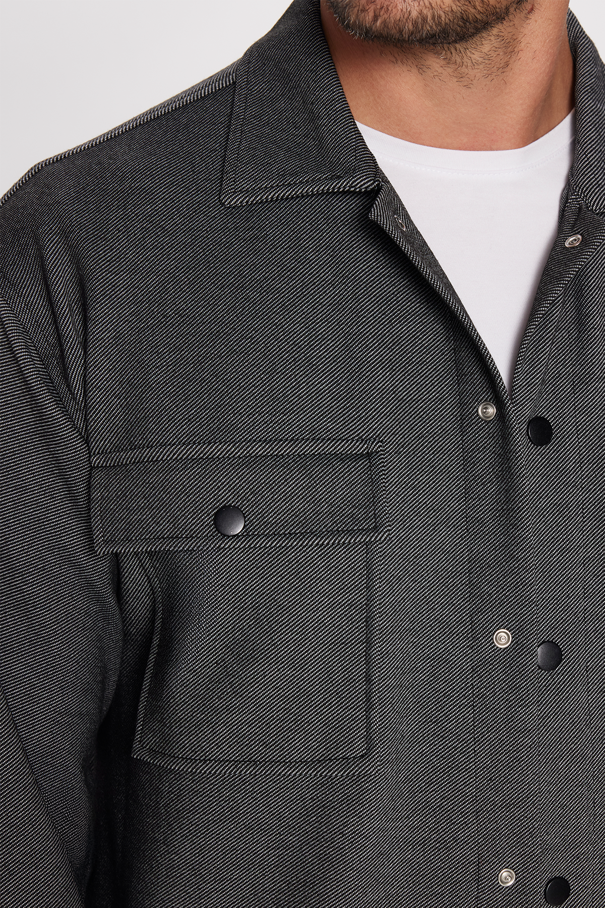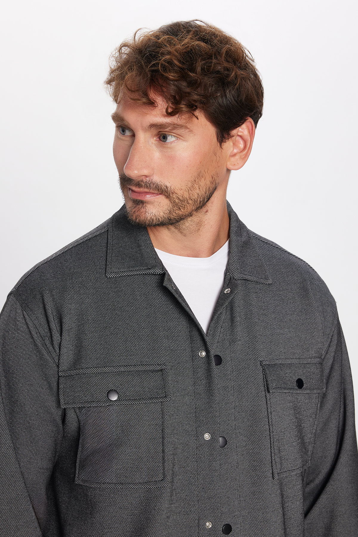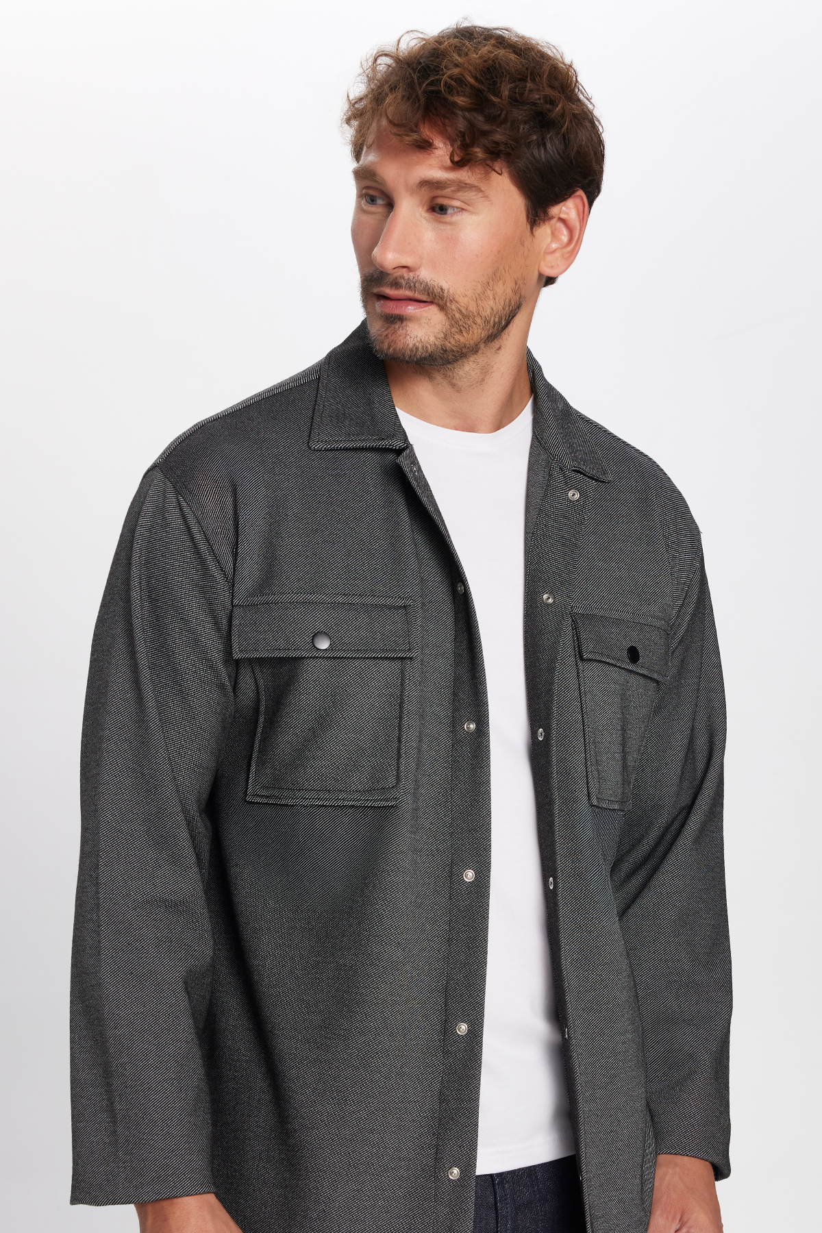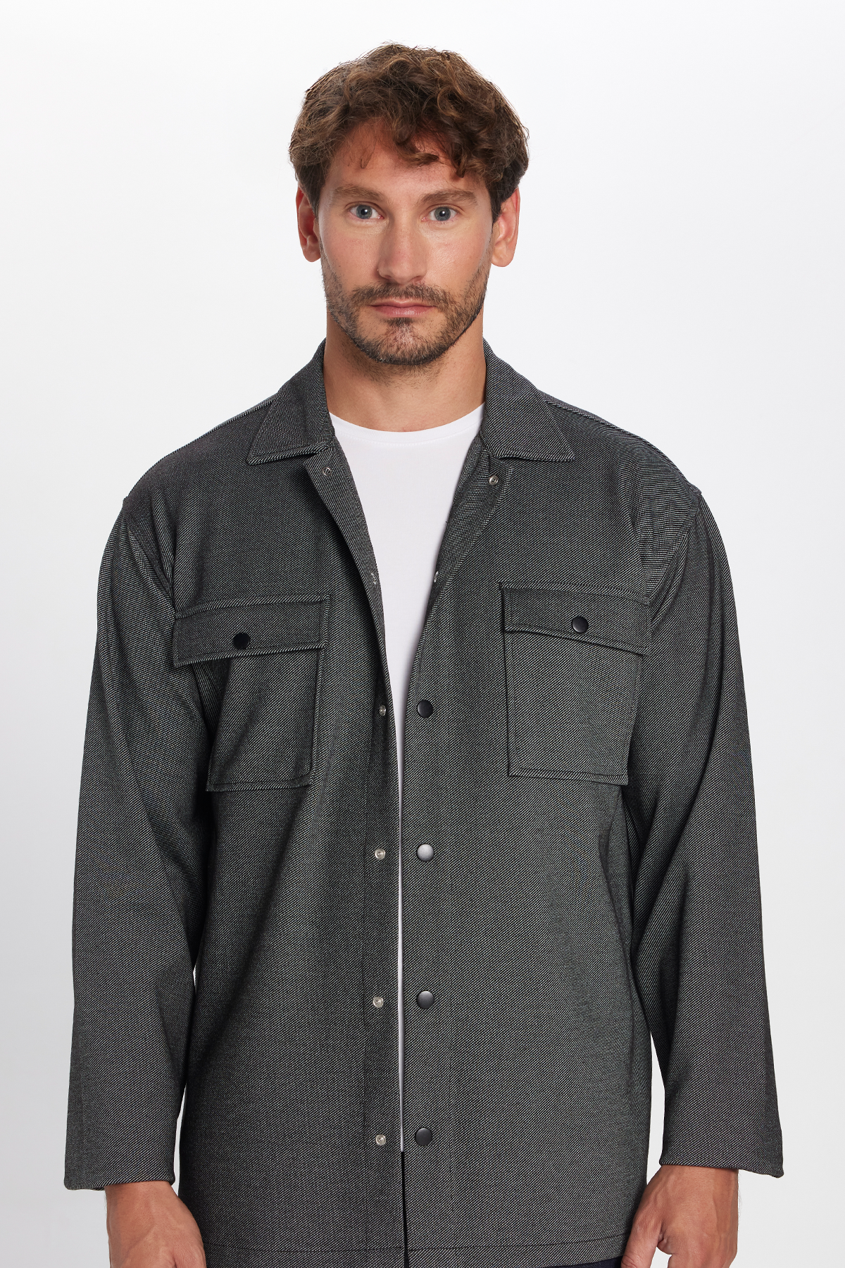 Erkek Relax Fit Rahat Kesim Çift Cepli Örme Siyah Apaş Yaka Gömlek (RF250029-02)