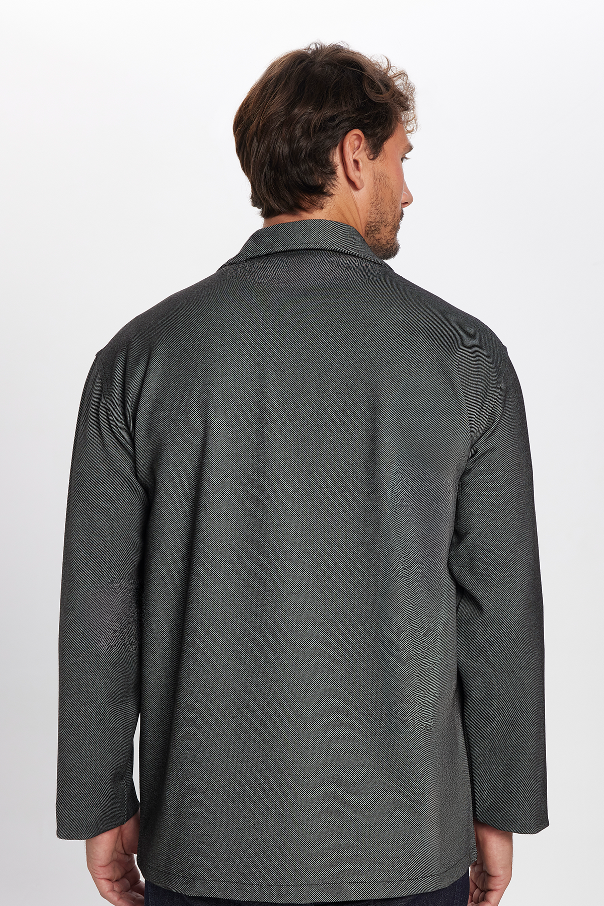 Erkek Relax Fit Rahat Kesim Çift Cepli Örme Siyah Apaş Yaka Gömlek