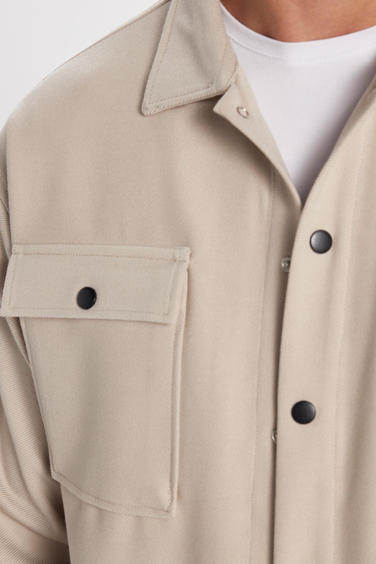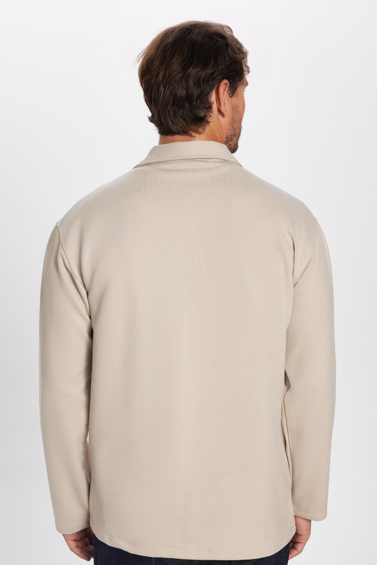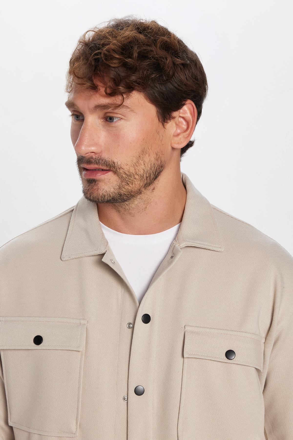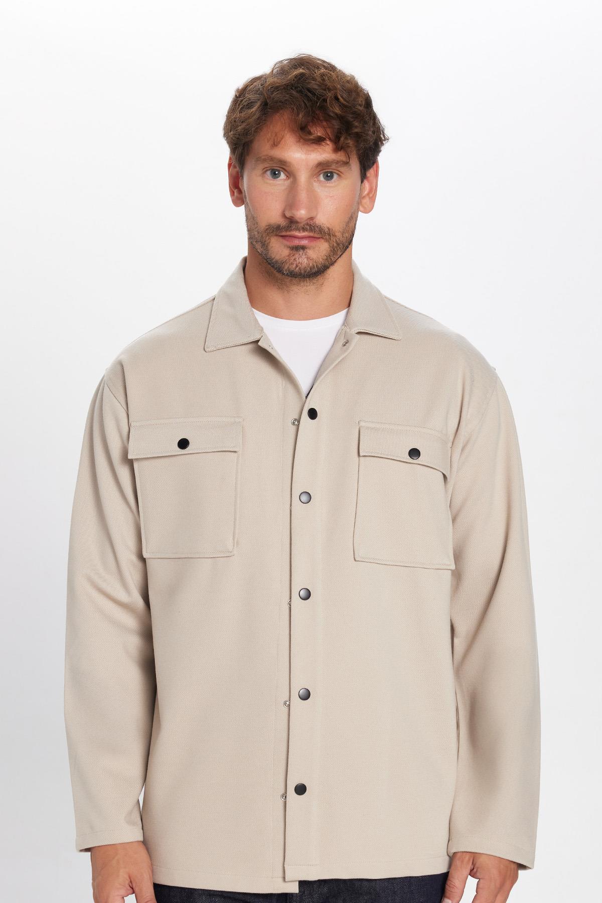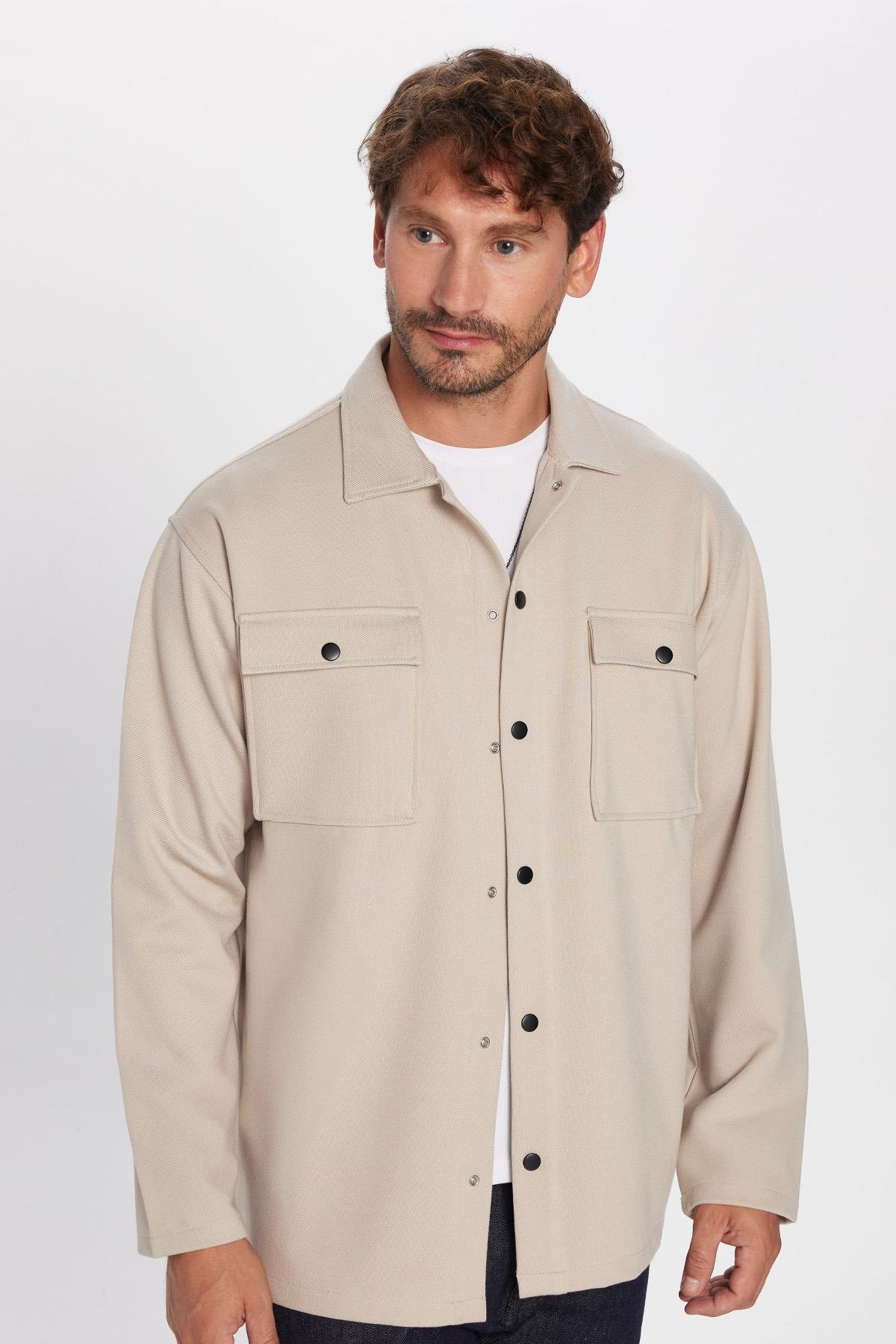 Erkek Relax Fit Rahat Kesim Çift Cepli Örme Taş Apaş Yaka Gömlek (RF250029-STN)