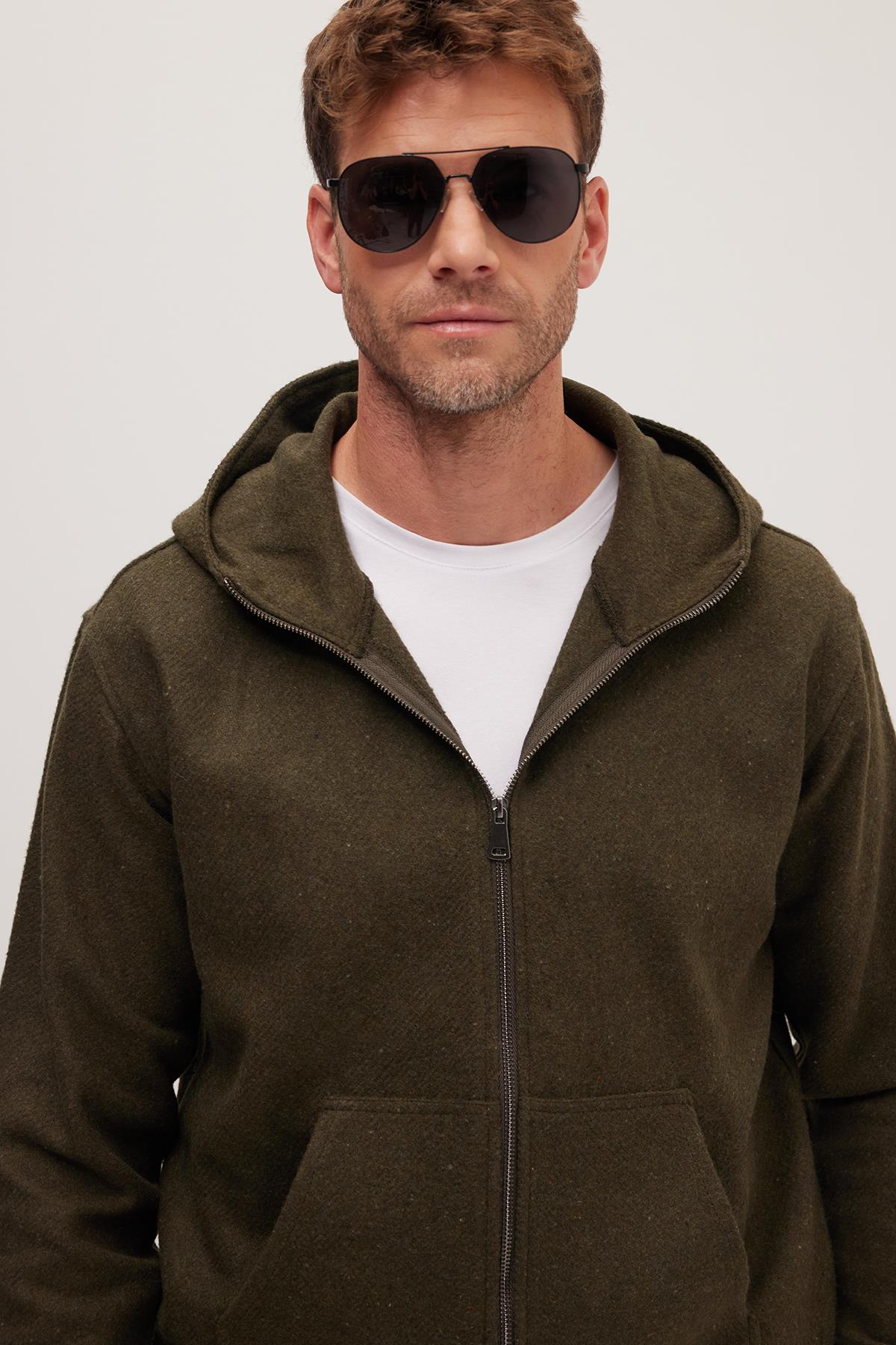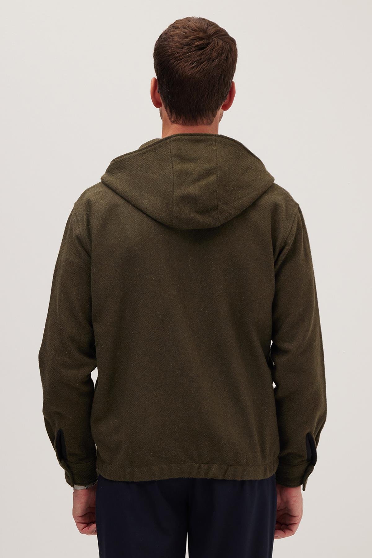 Erkek Relax Fit Rahat Kesim Fermuarlı Çift Cep Kapüşonlu Haki Ceket Gömlek