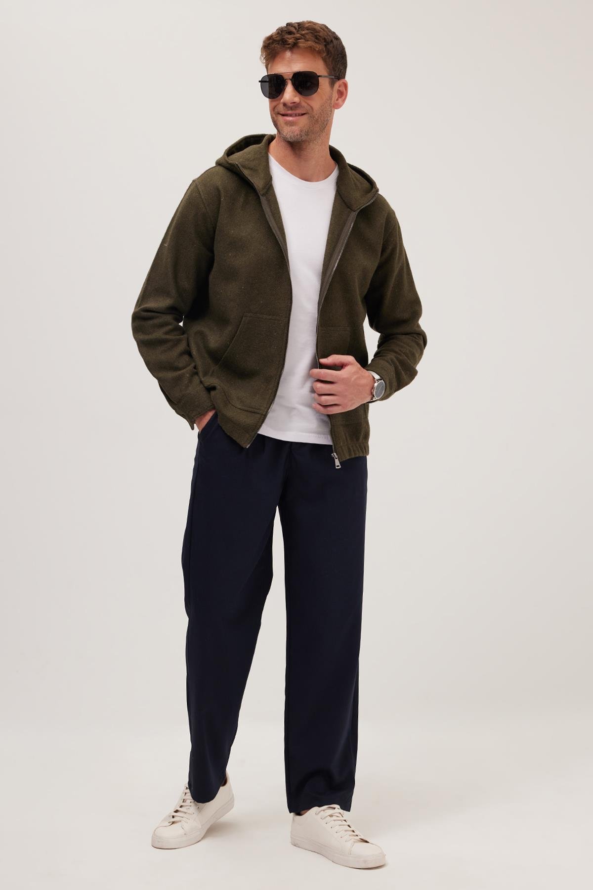 Erkek Relax Fit Rahat Kesim Fermuarlı Çift Cep Kapüşonlu Haki Ceket Gömlek (RF250068-48)