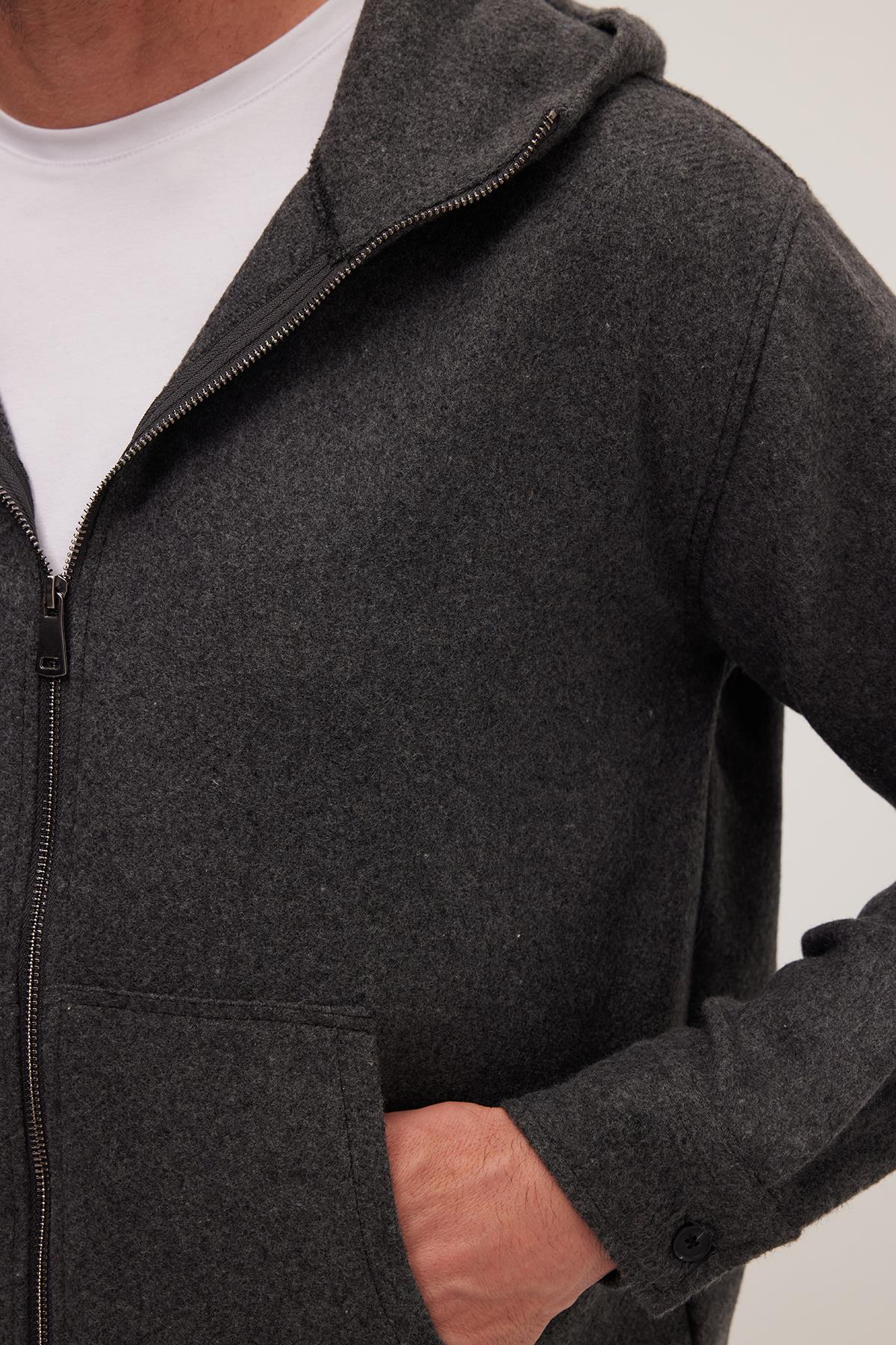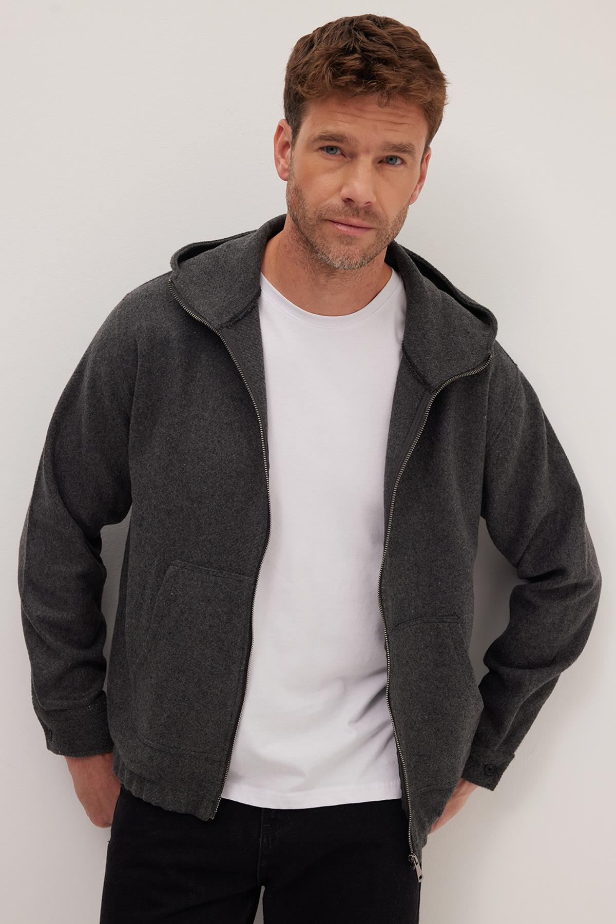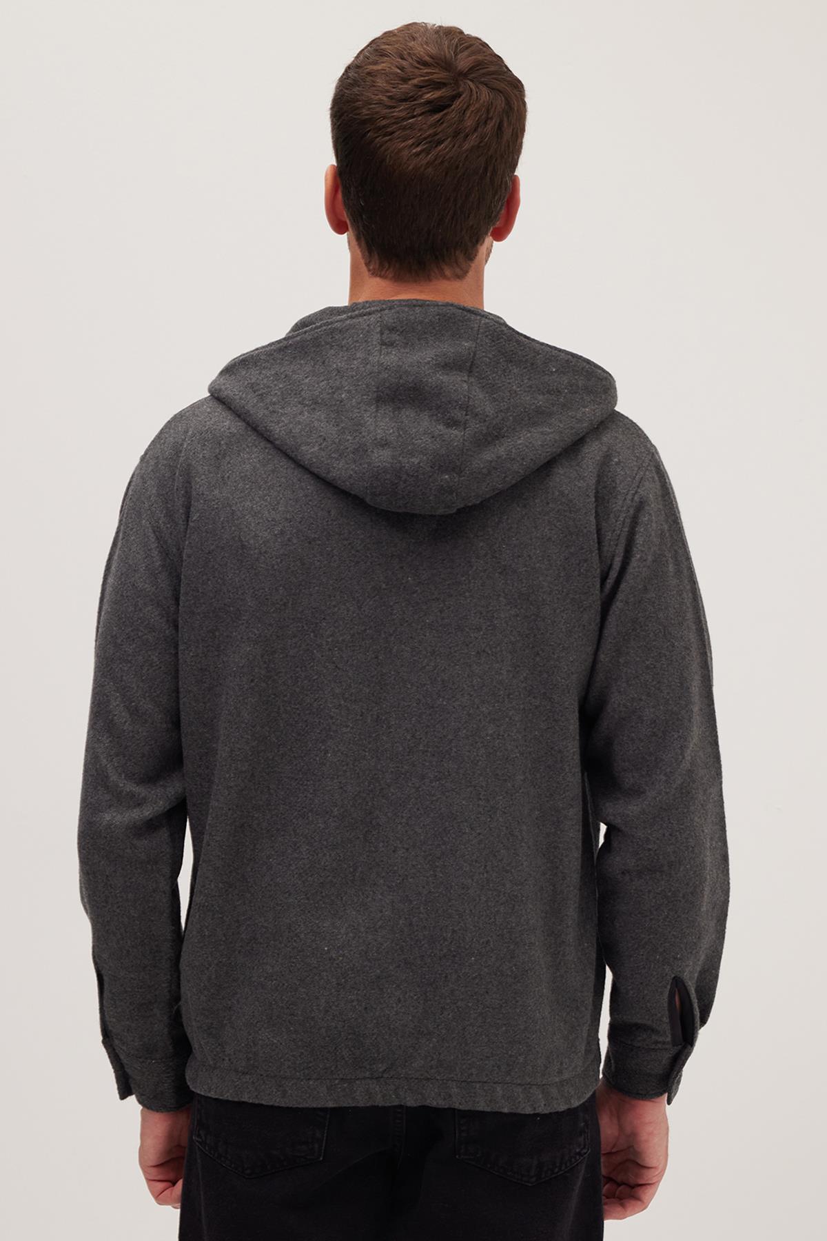 Erkek Relax Fit Rahat Kesim Fermuarlı Çift Cep Kapüşonlu Koyu Gri Ceket Gömlek