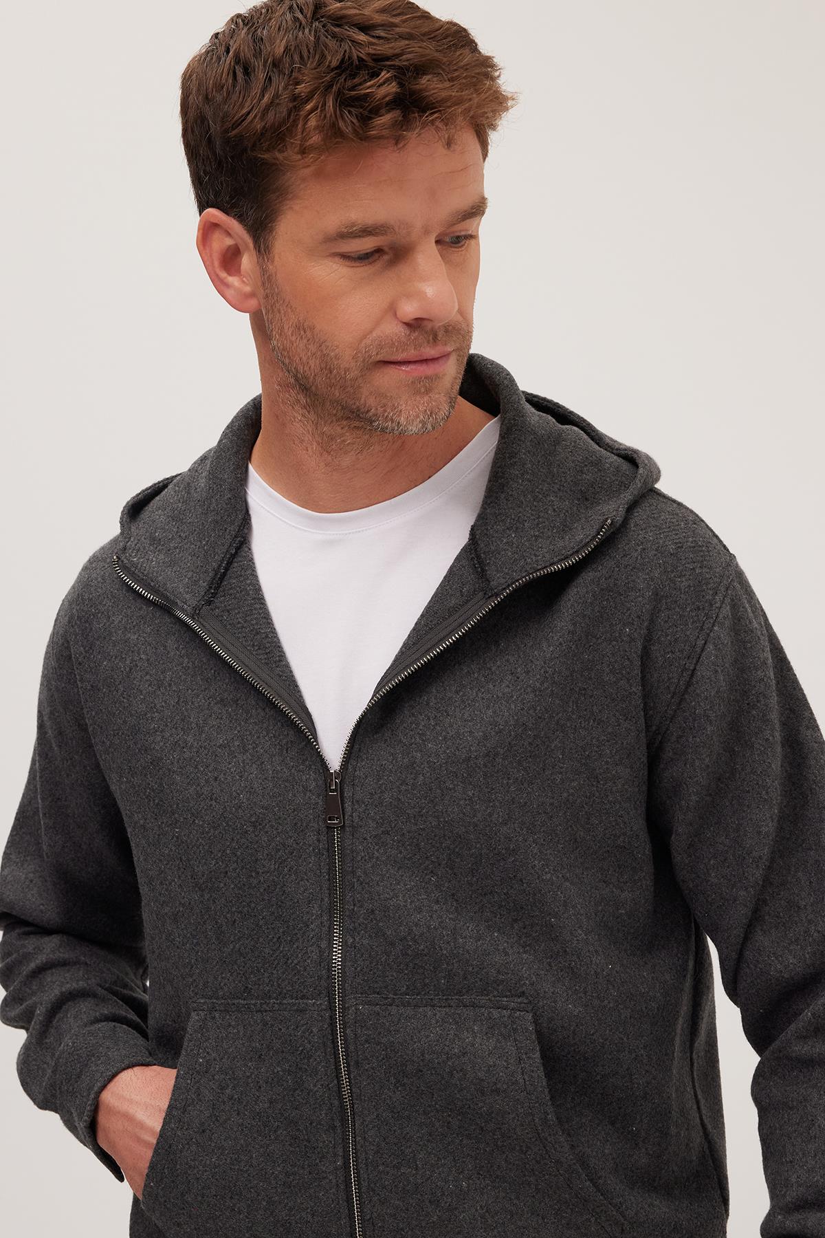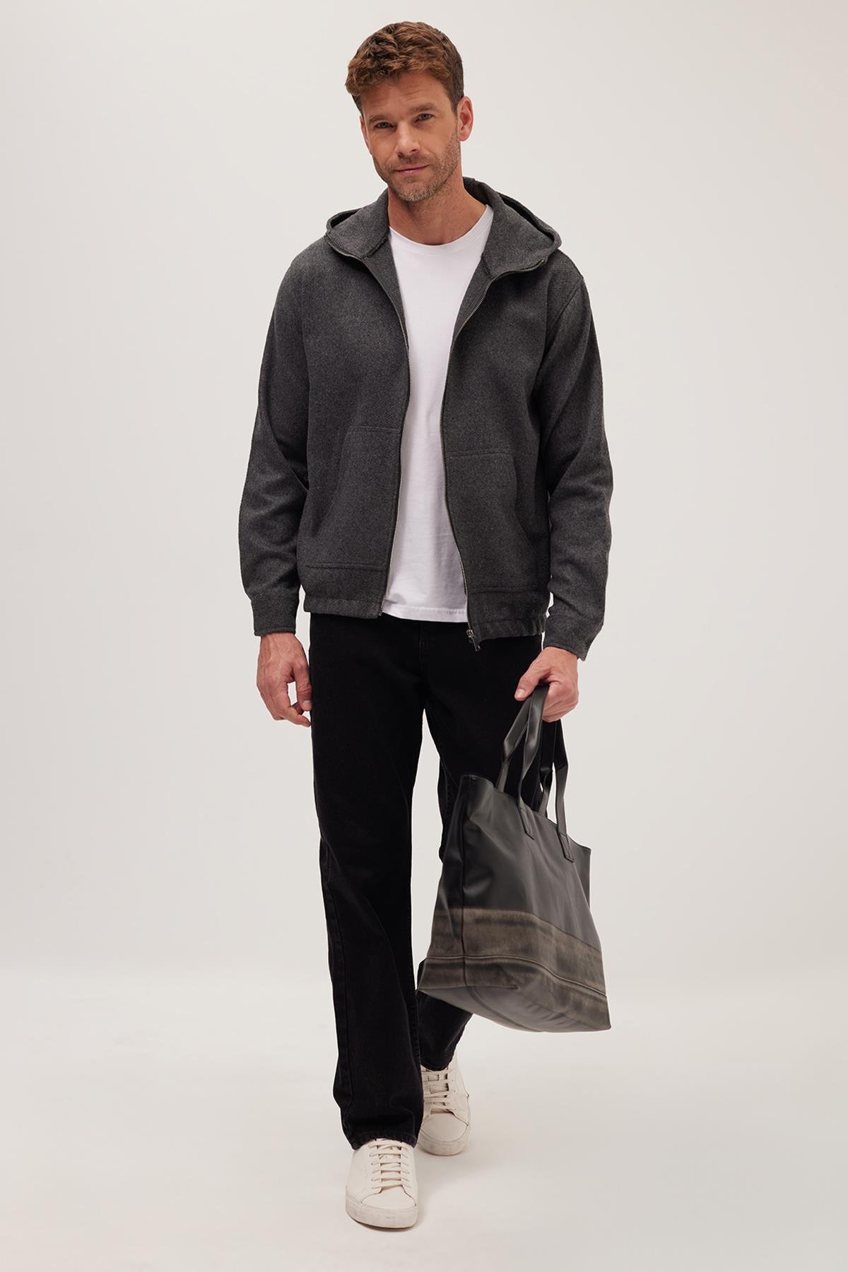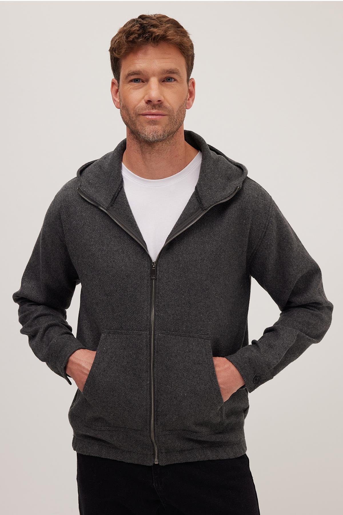 Erkek Relax Fit Rahat Kesim Fermuarlı Çift Cep Kapüşonlu Koyu Gri Ceket Gömlek