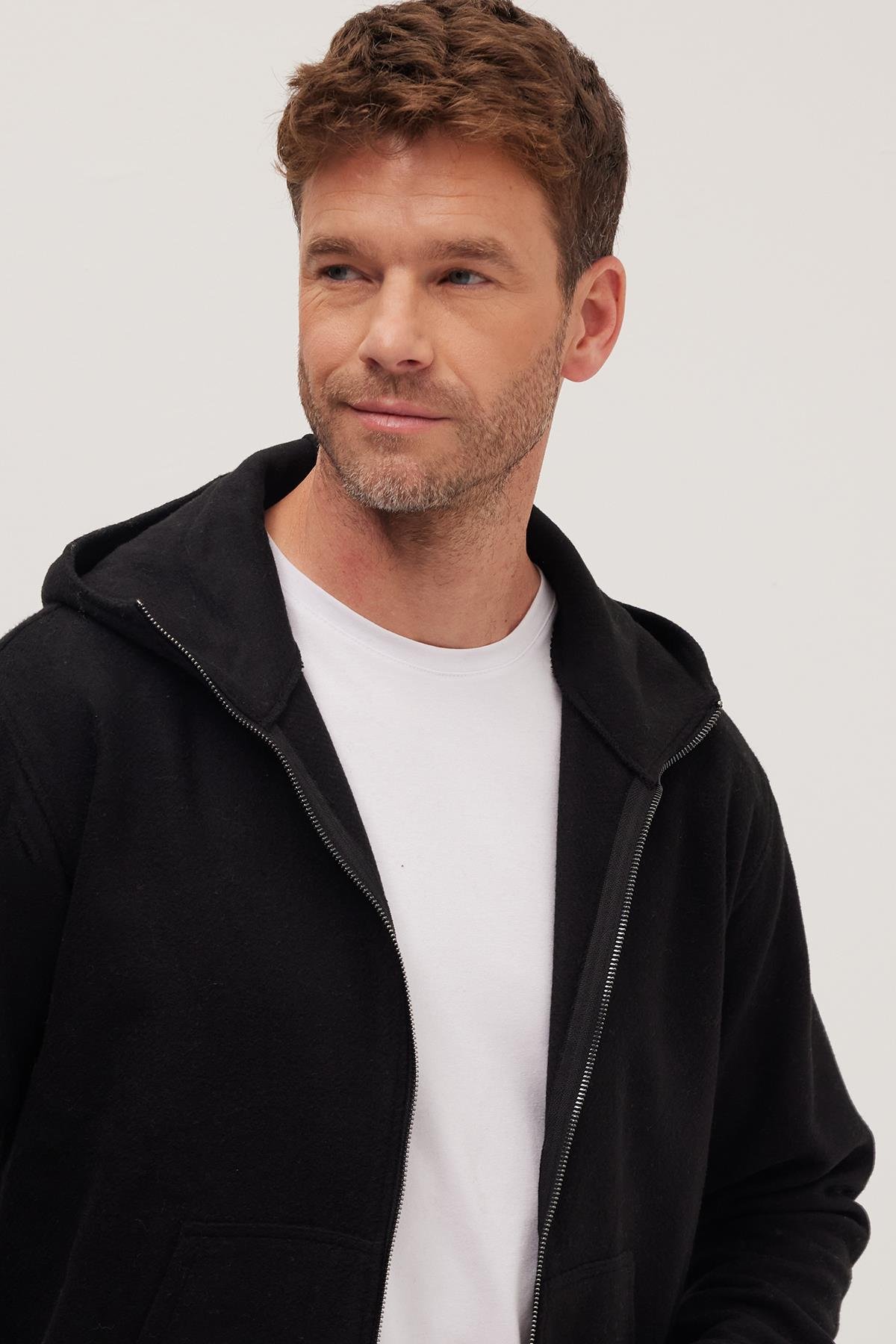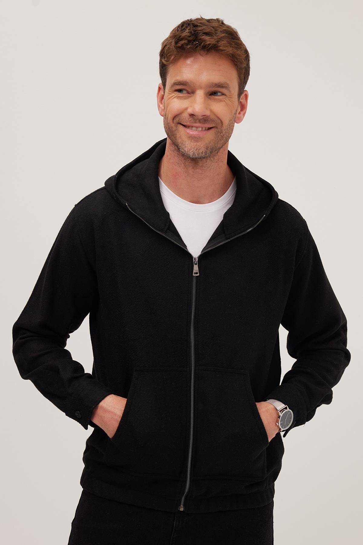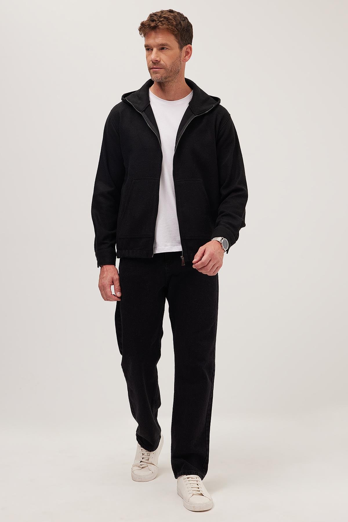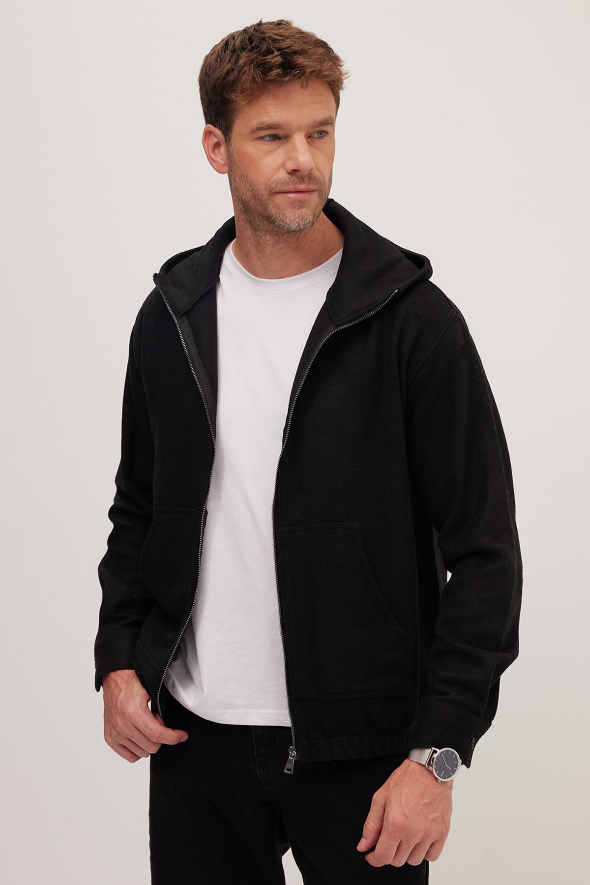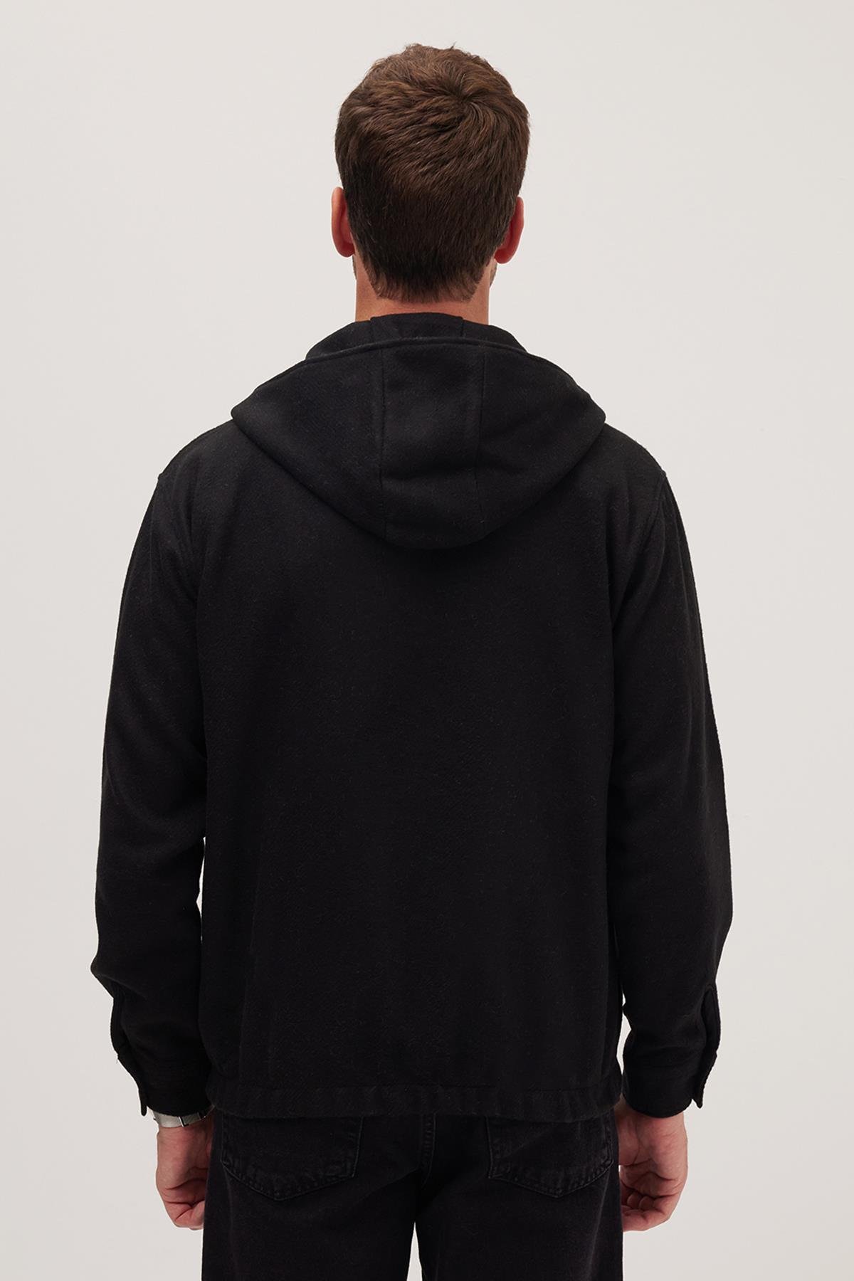 Erkek Relax Fit Rahat Kesim Fermuarlı Çift Cep Kapüşonlu Siyah Ceket Gömlek