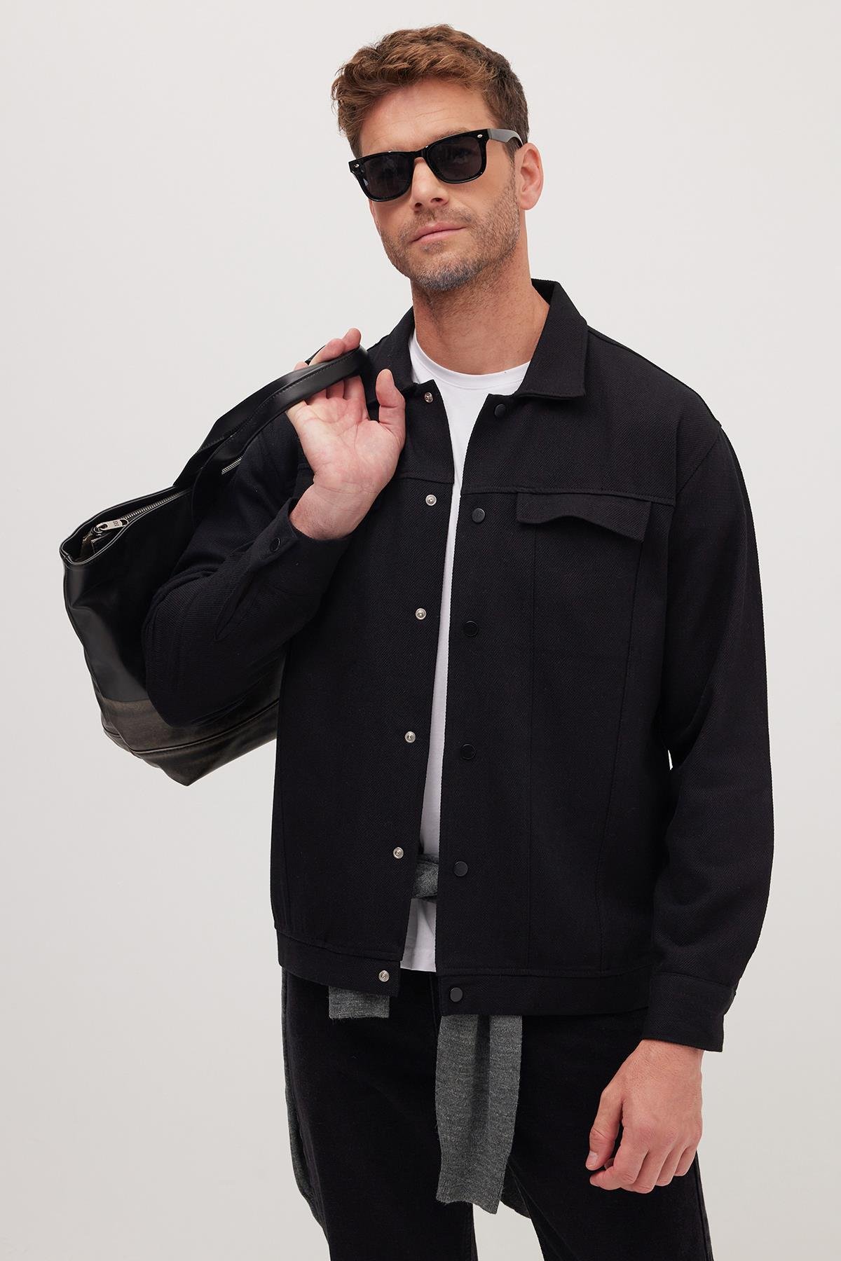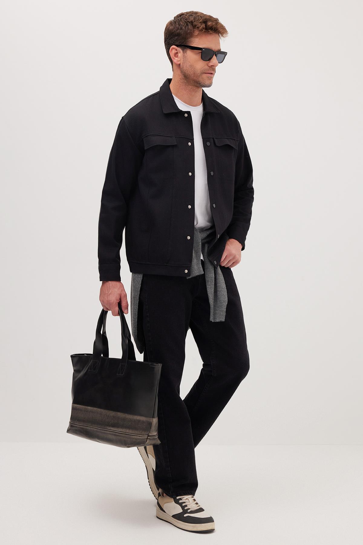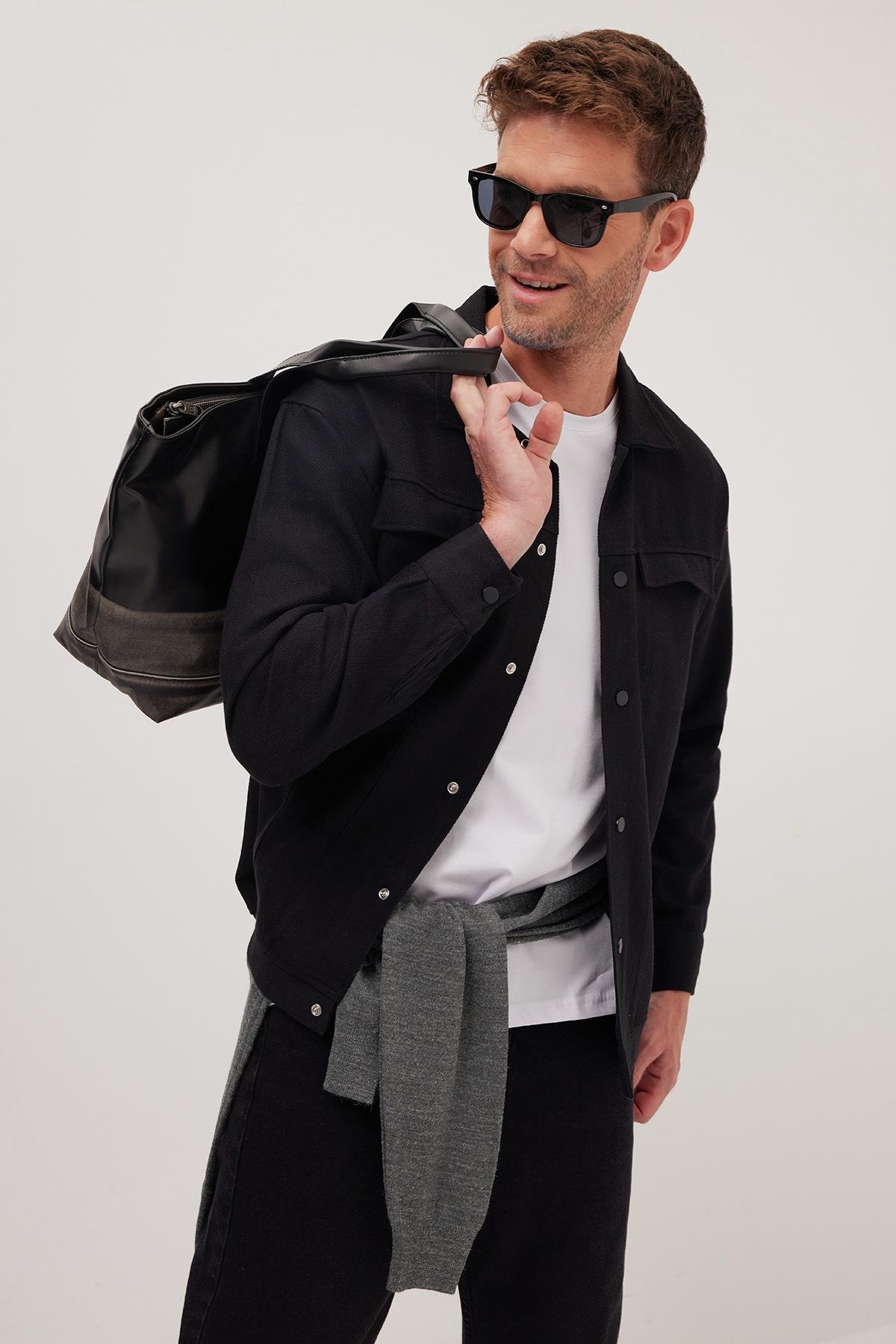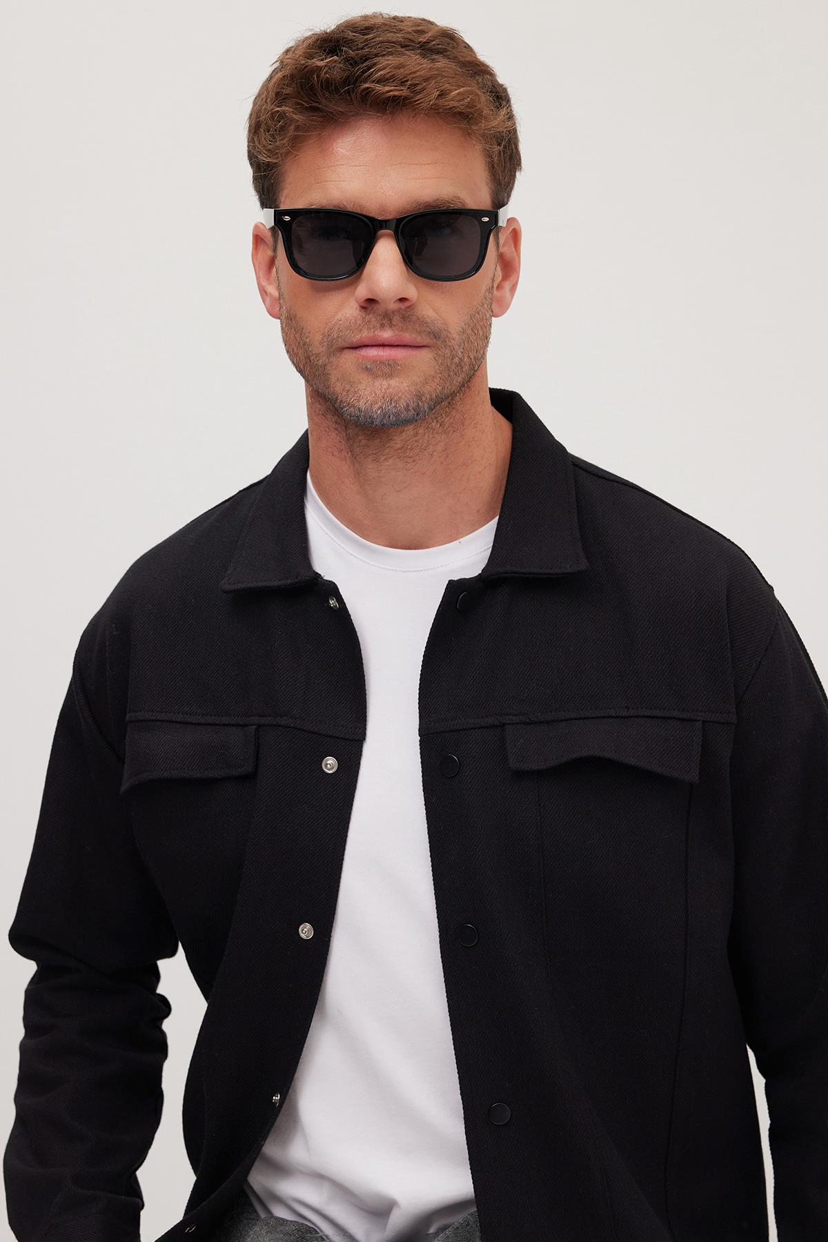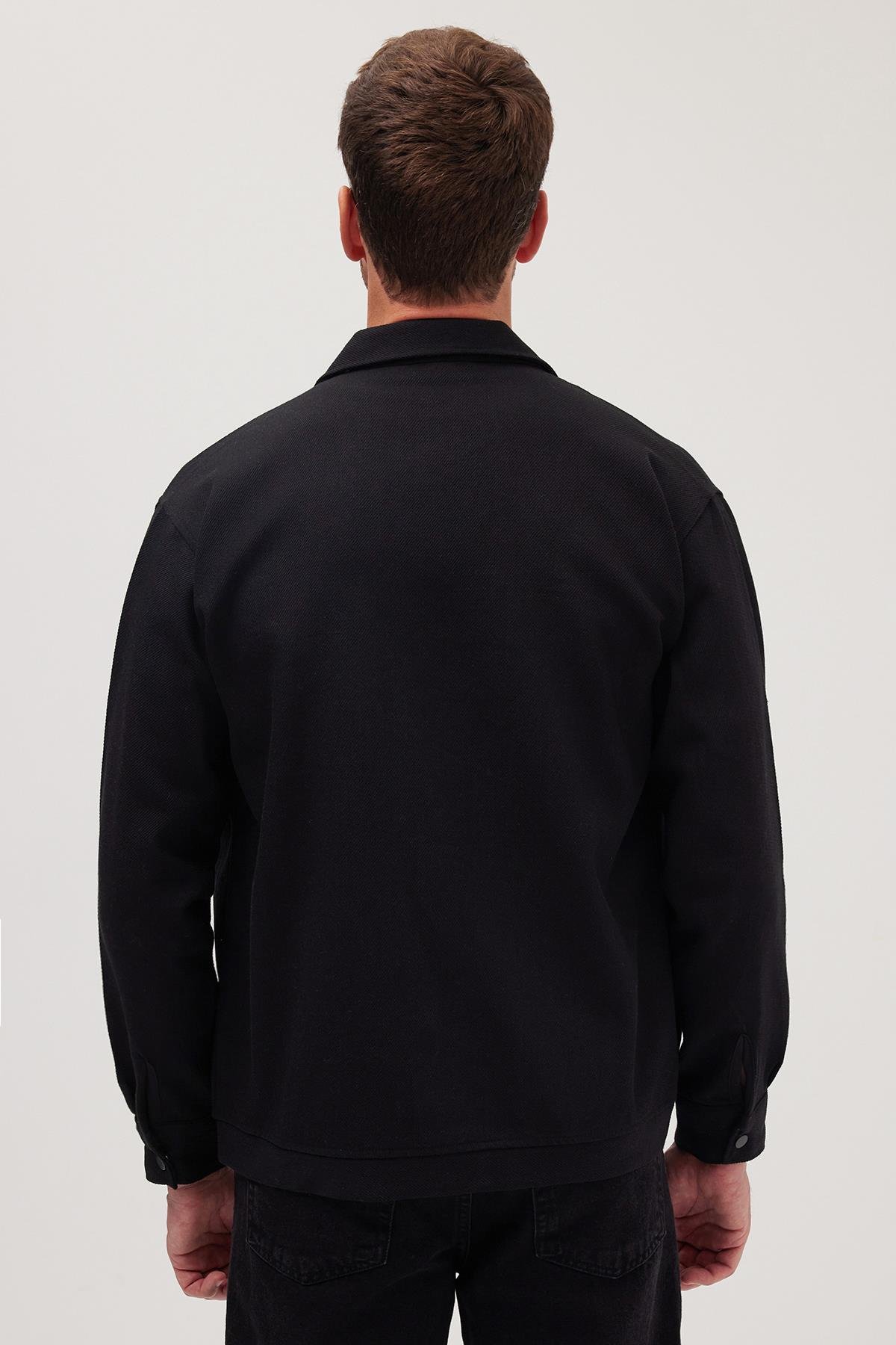Erkek Relax Fit Rahat Kesim Oduncu Apaş Yaka Çift Cep Kapaklı Düz Siyah Kışlık Gömlek (RF250021-6103)
