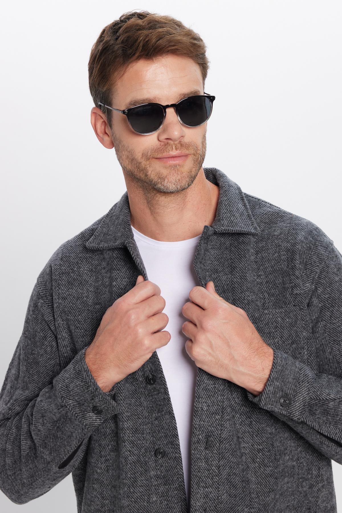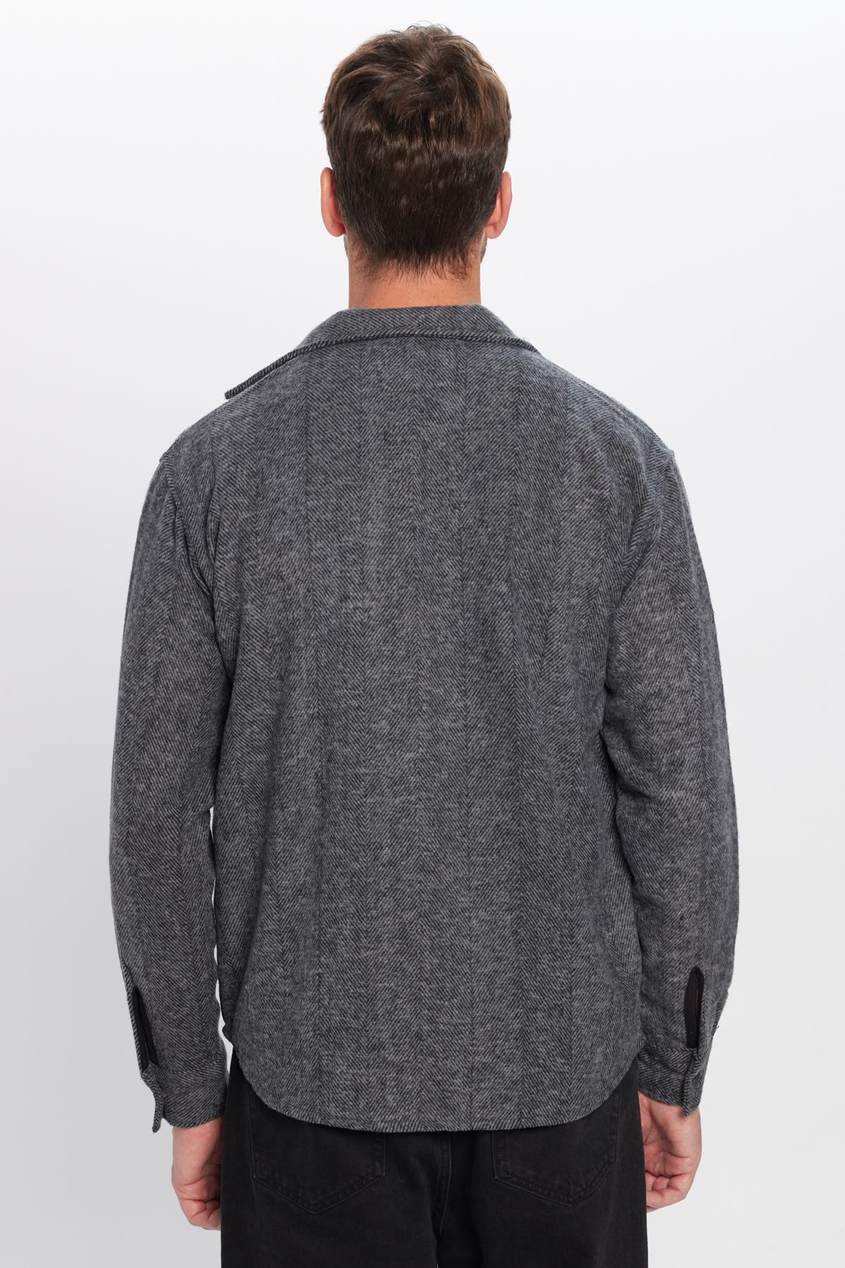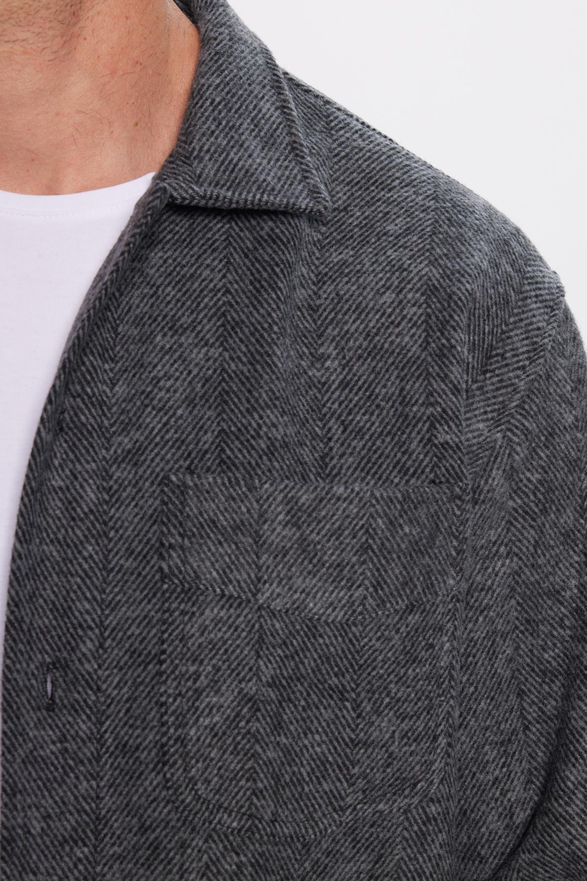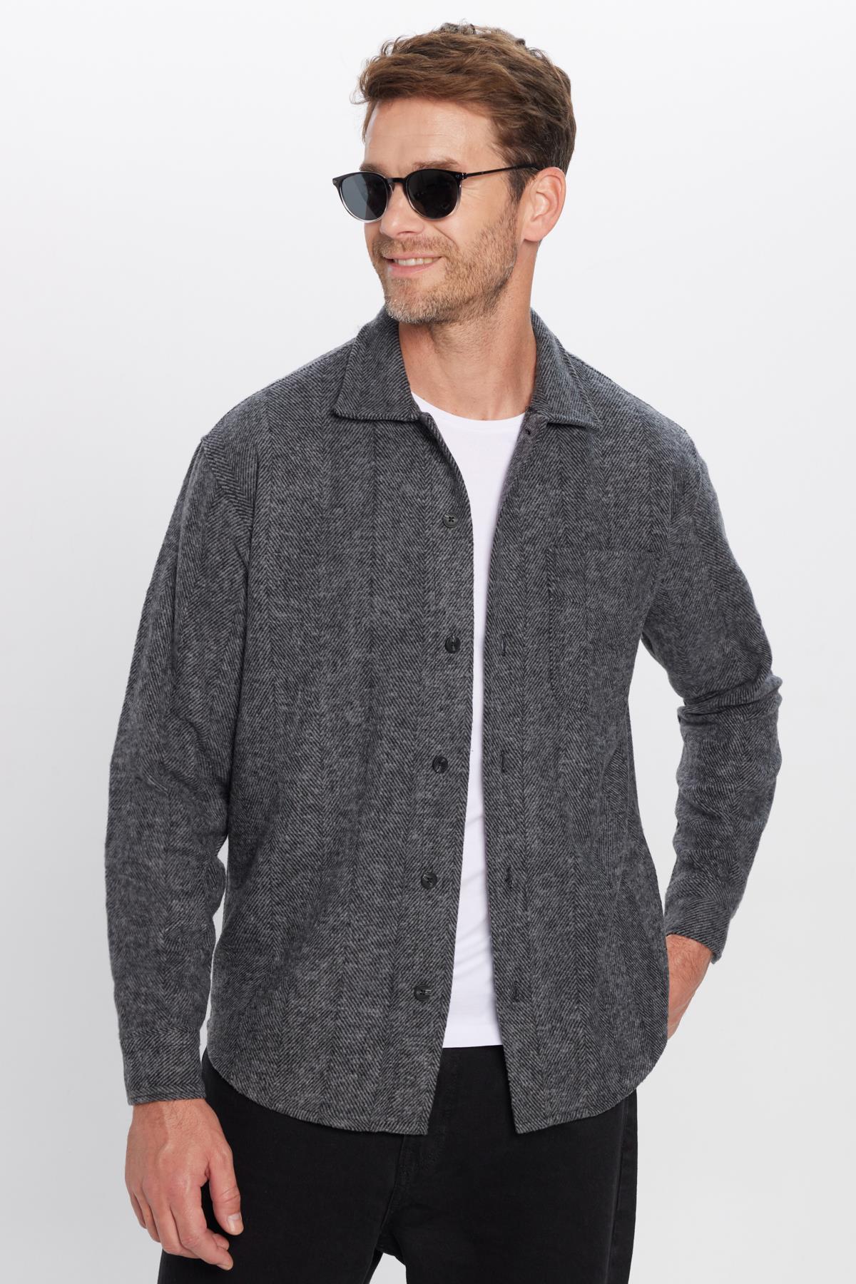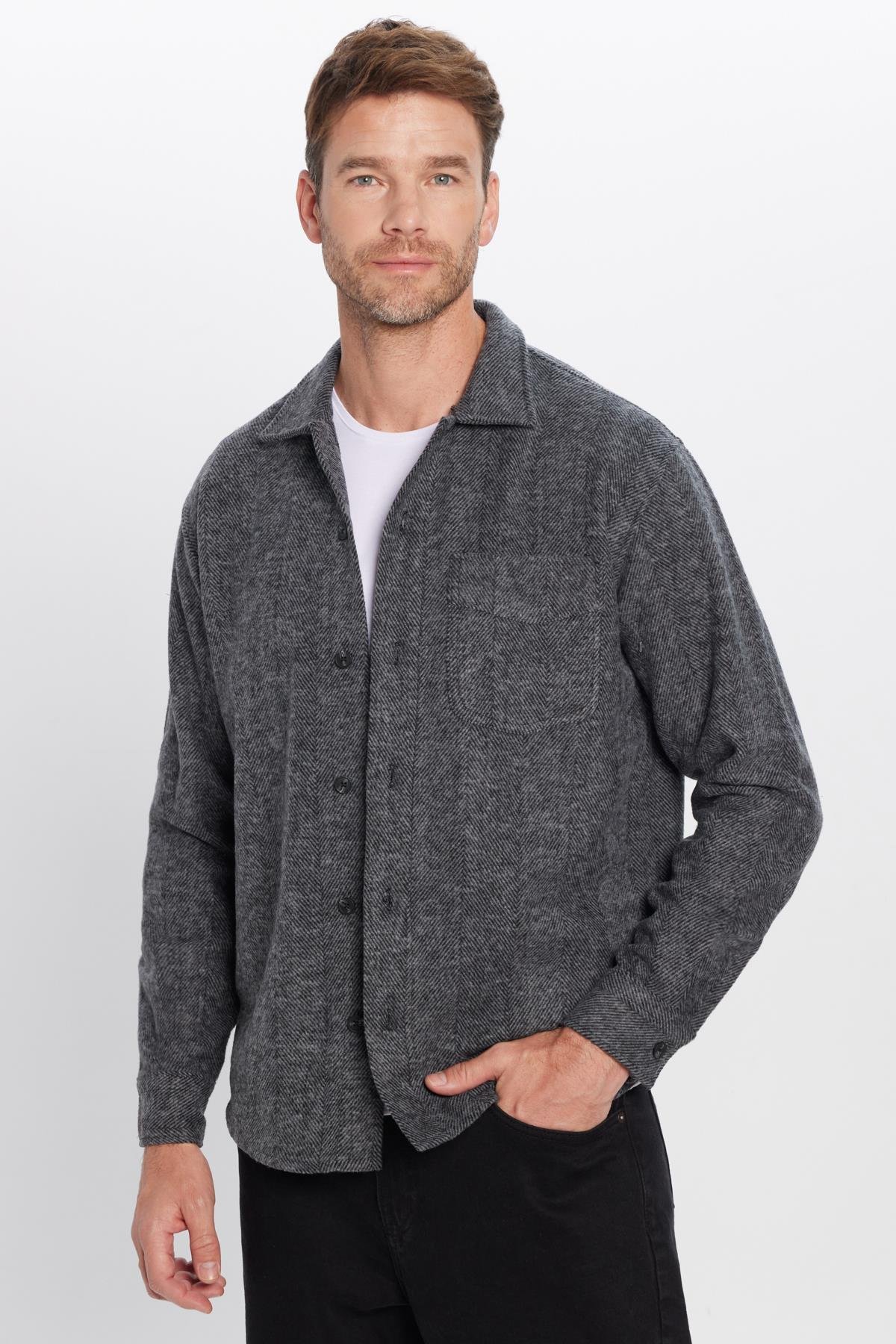 Erkek Relax Fit Rahat Kesim Oduncu Apaş Yaka Tek Cep Kapaklı Armürlü Antrasit Renk Kışlık Gömlek (RF250001-5556)
