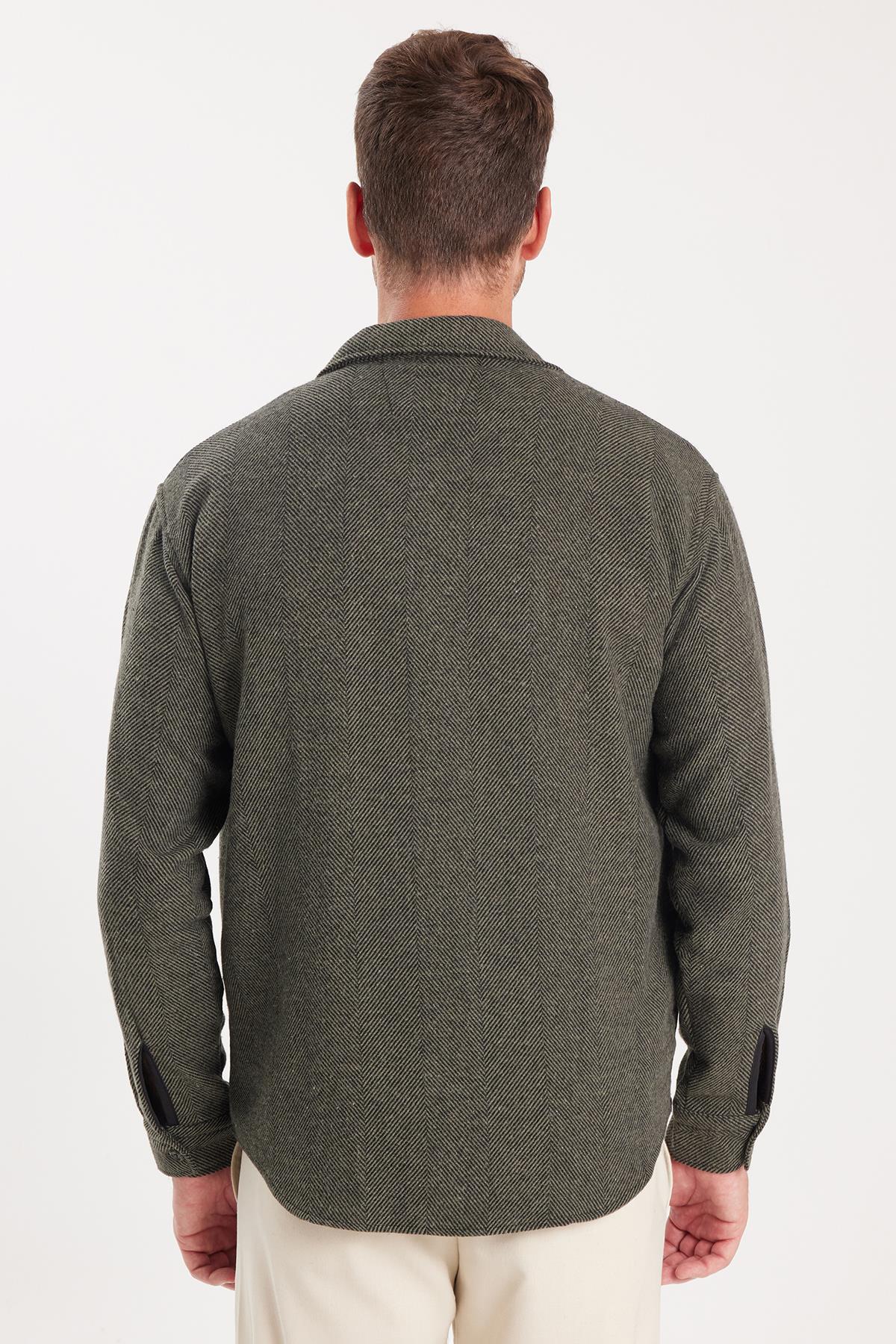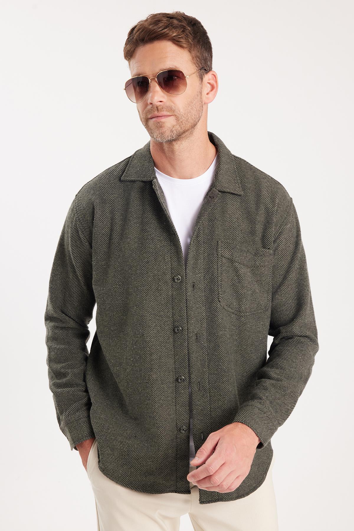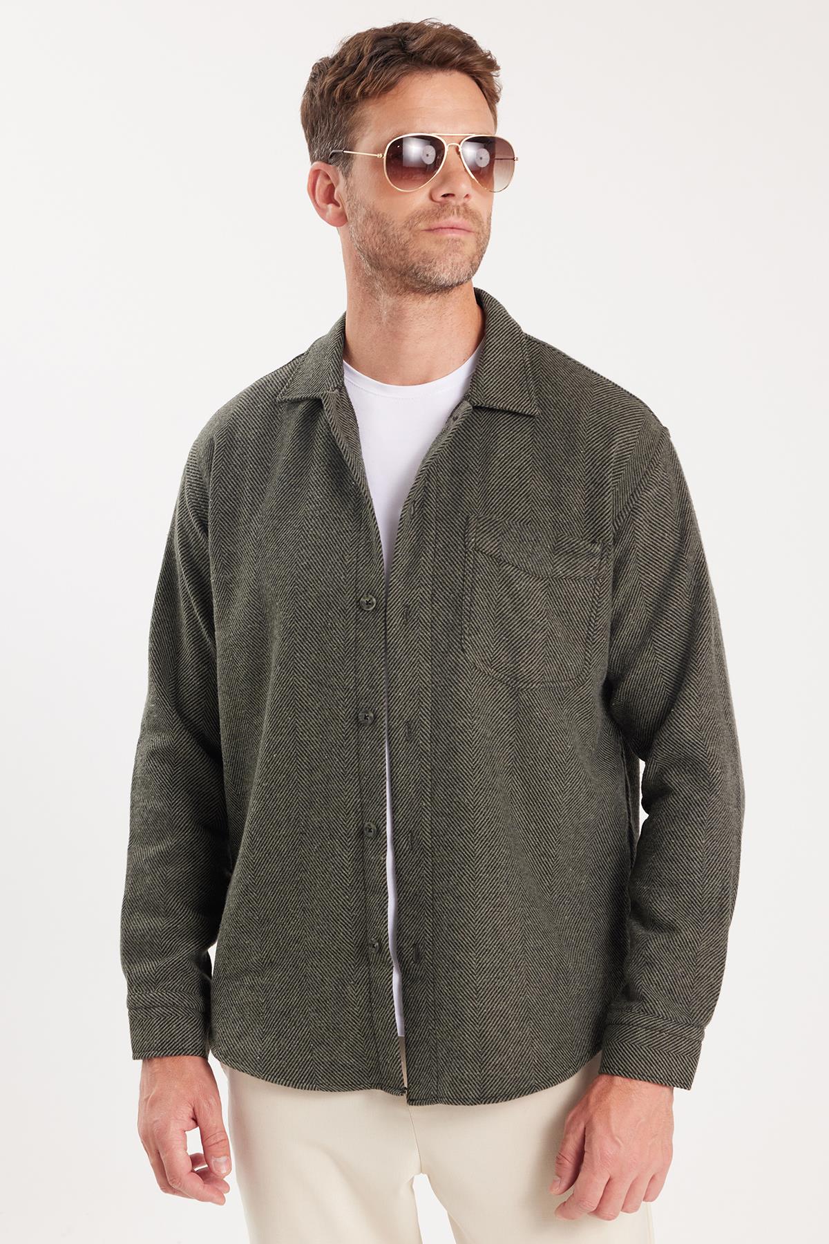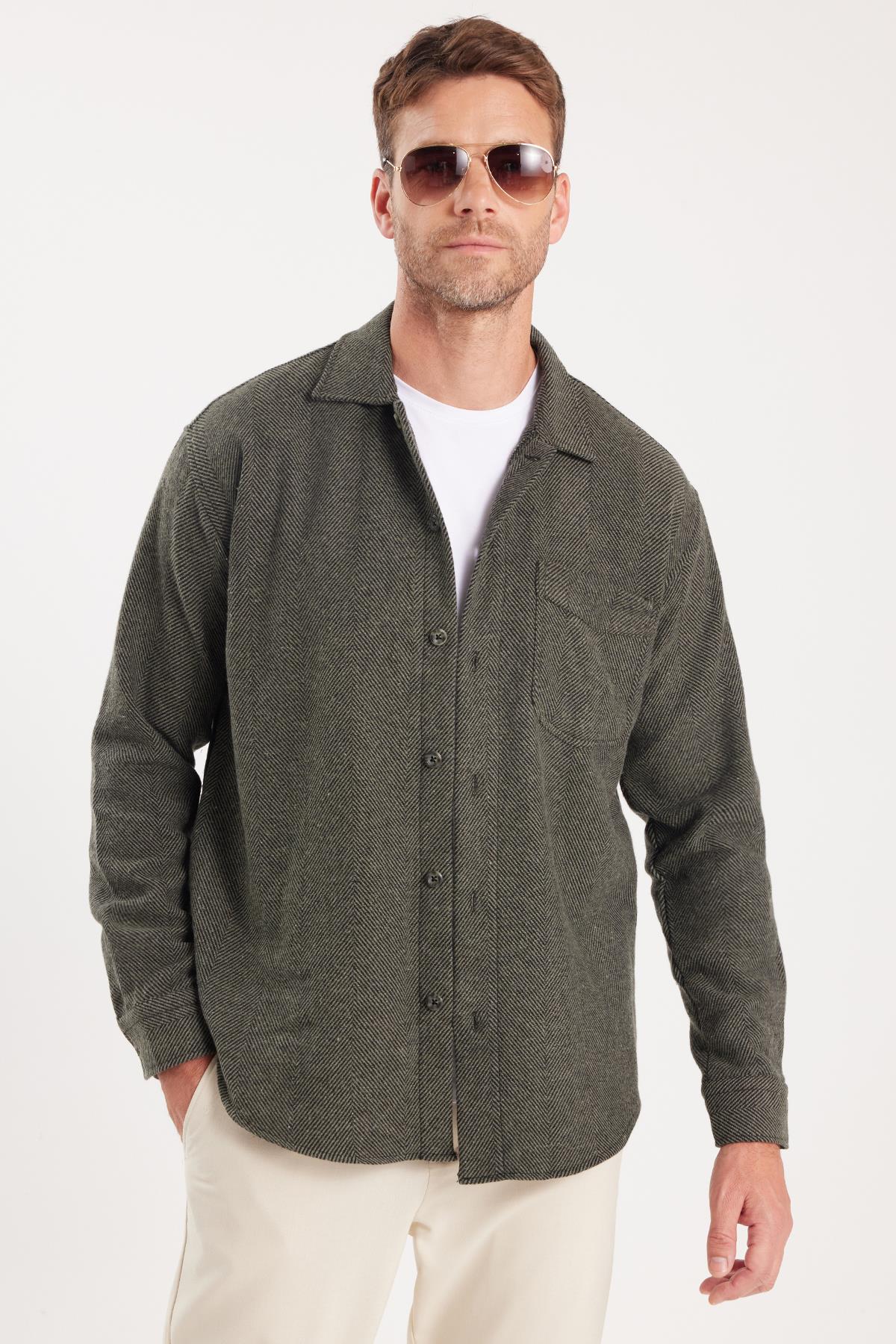 Erkek Relax Fit Rahat Kesim Oduncu Tek Cepli Kapaklı Armürlü Haki Apaş Yaka Kışlık Gömlek (RF250001-5562)