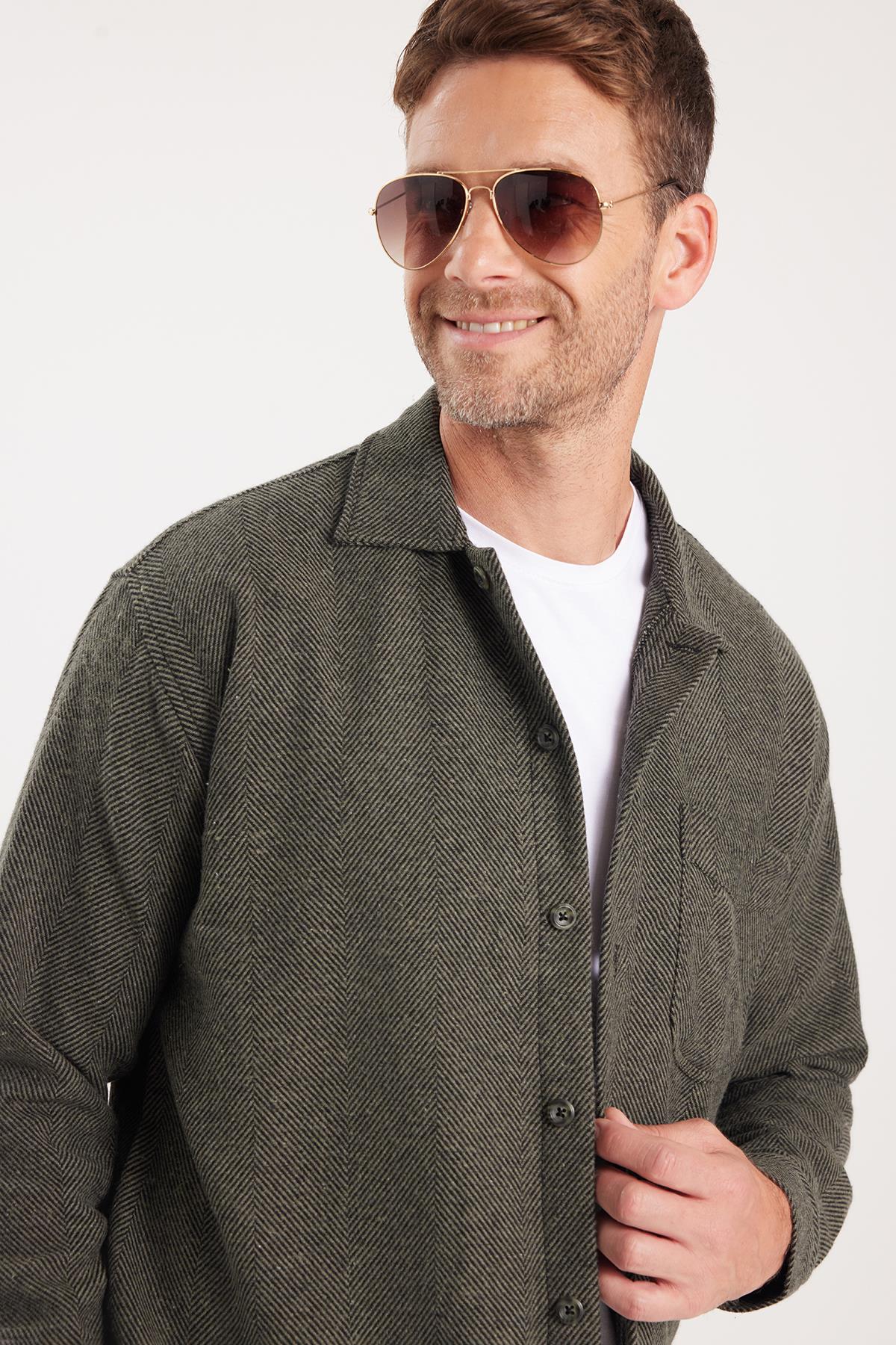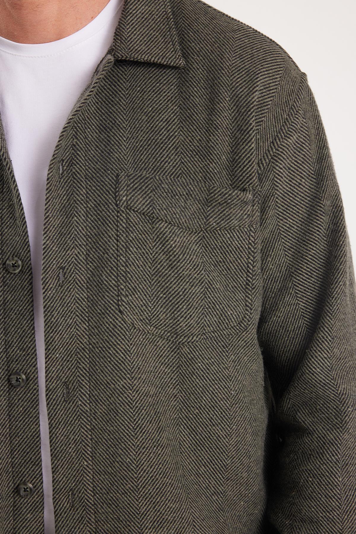 Erkek Relax Fit Rahat Kesim Oduncu Tek Cepli Kapaklı Armürlü Haki Apaş Yaka Kışlık Gömlek