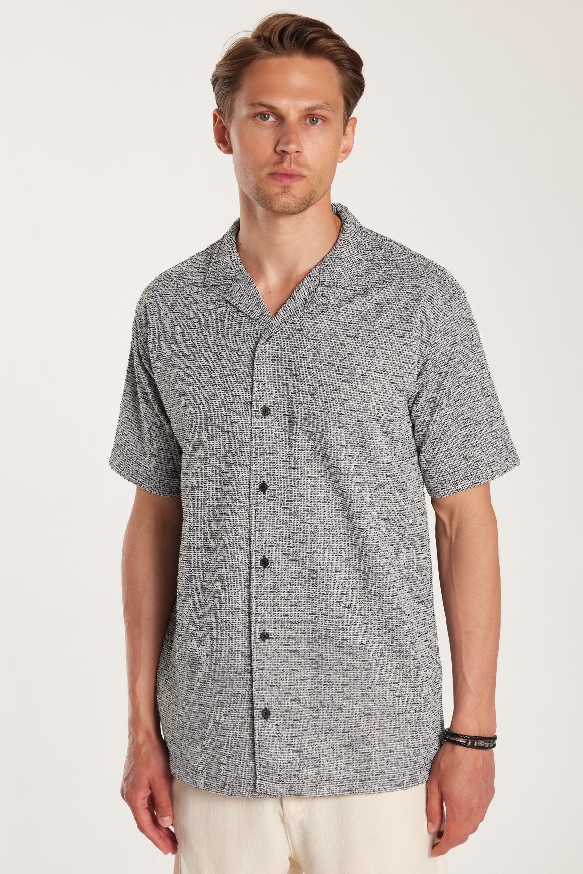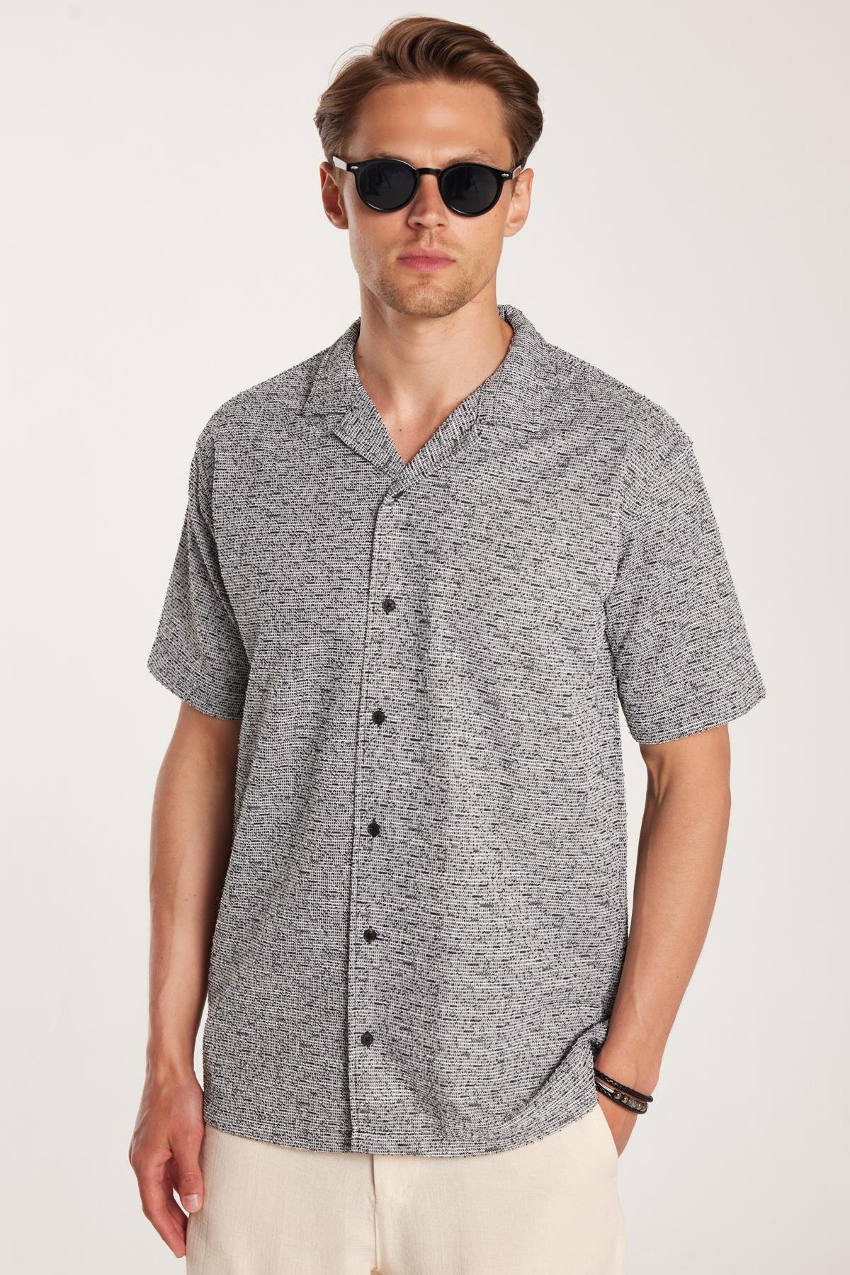 Erkek Relax Fit Rahat Kesim Örme Kırçıllı Dökümlü Kısa Kollu Apaş Yaka Gömlek (RF250048-11)
